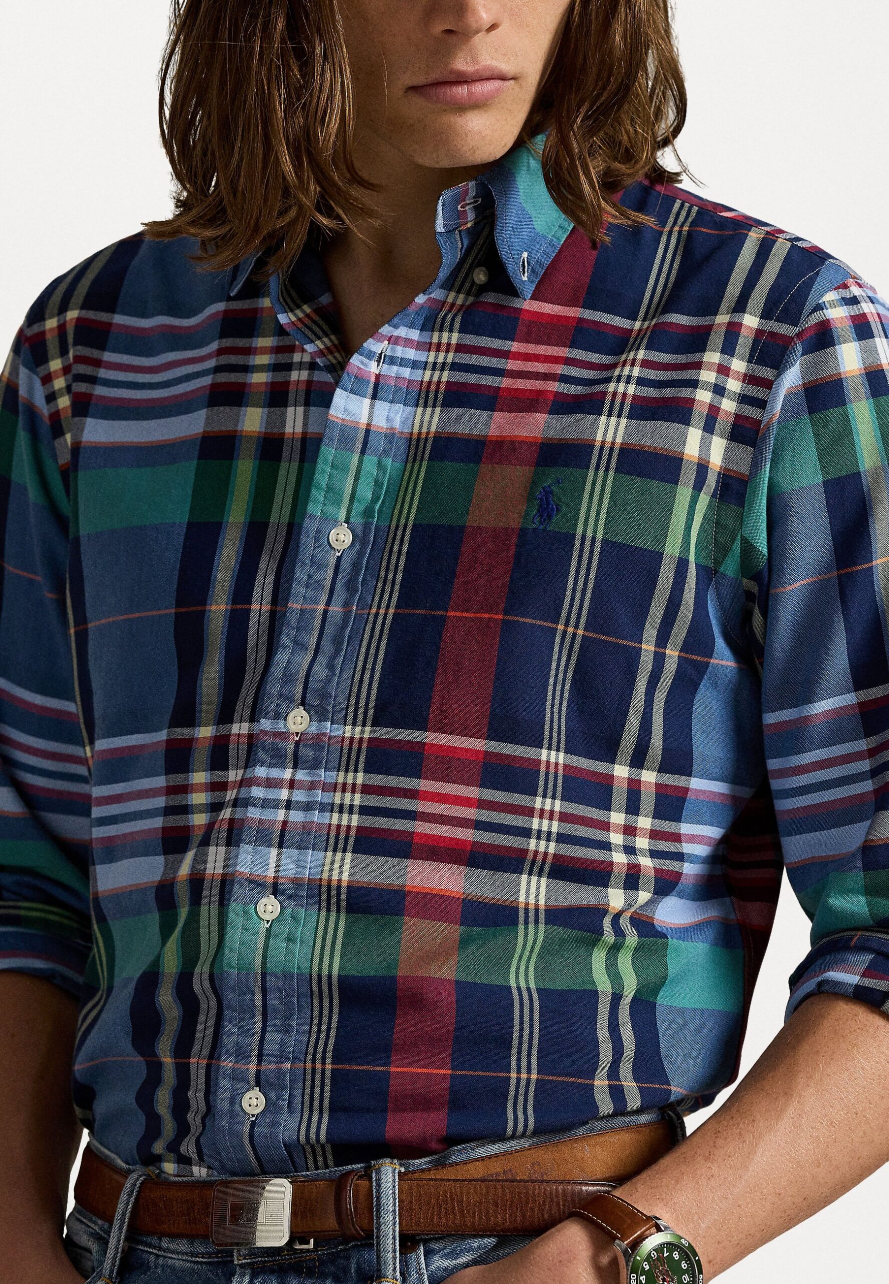 CUSTOM FIT PLAID OXFORD SHIRT – Shirt – blue/red