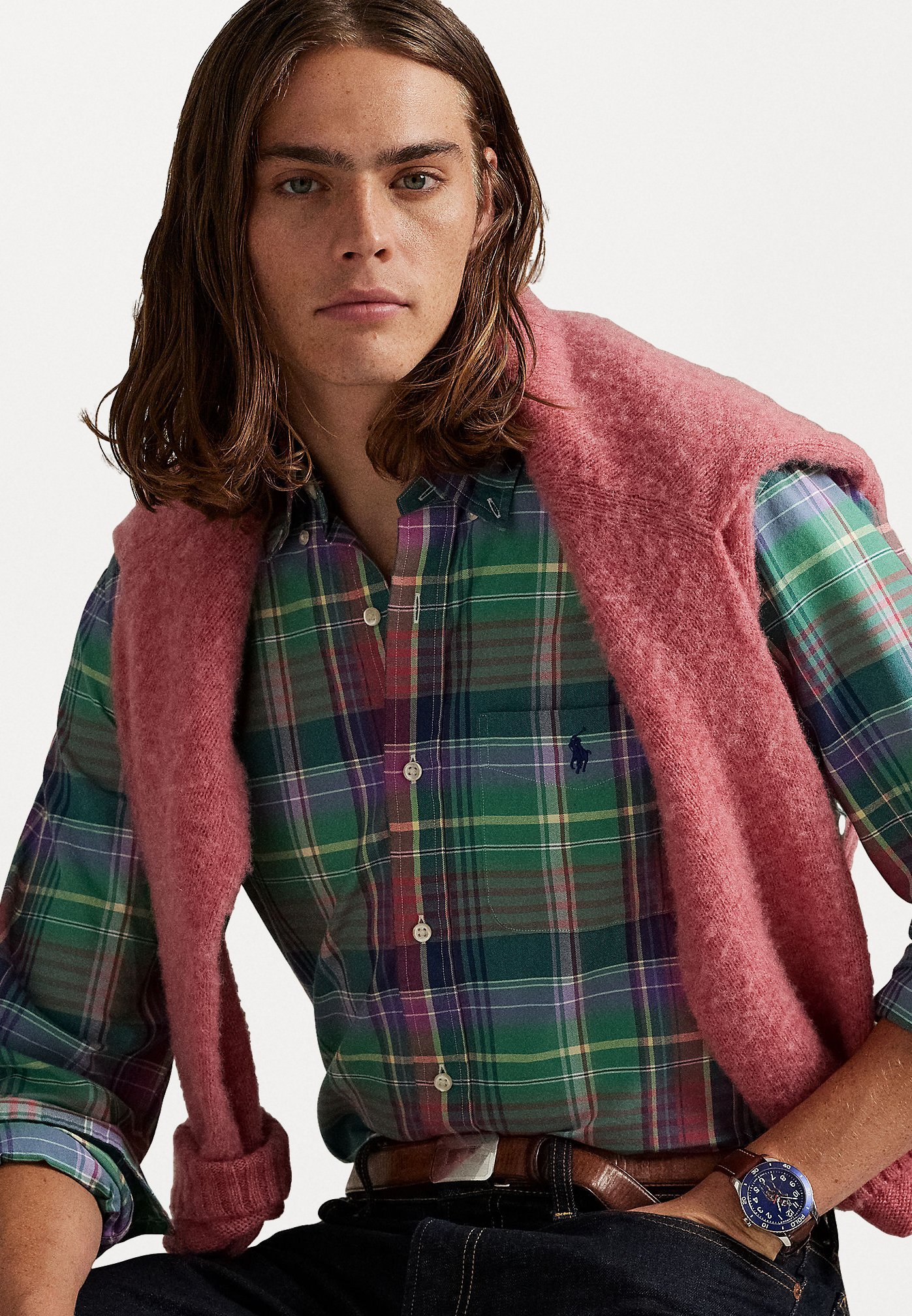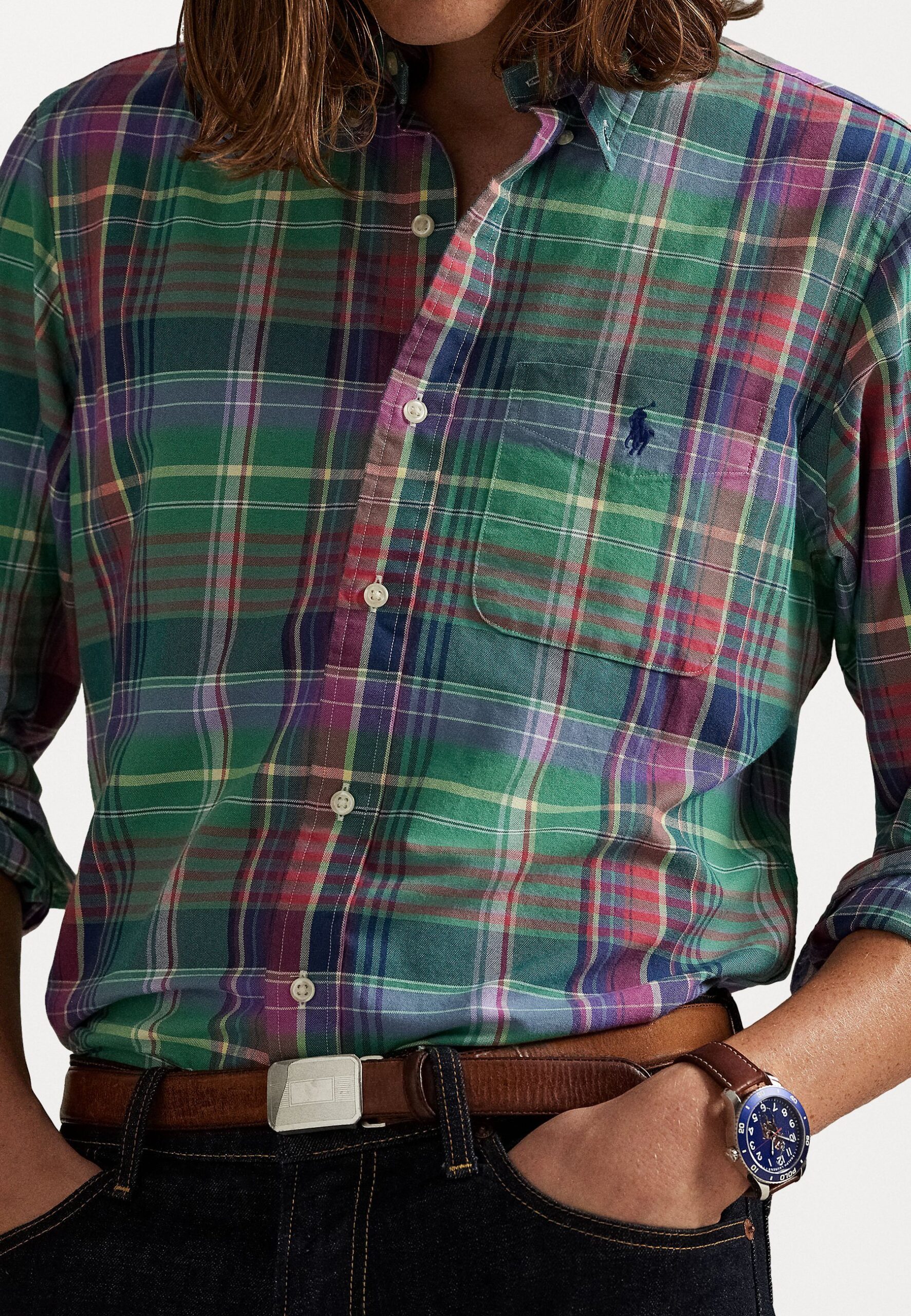 CUSTOM FIT PLAID OXFORD SHIRT – Shirt – green/red