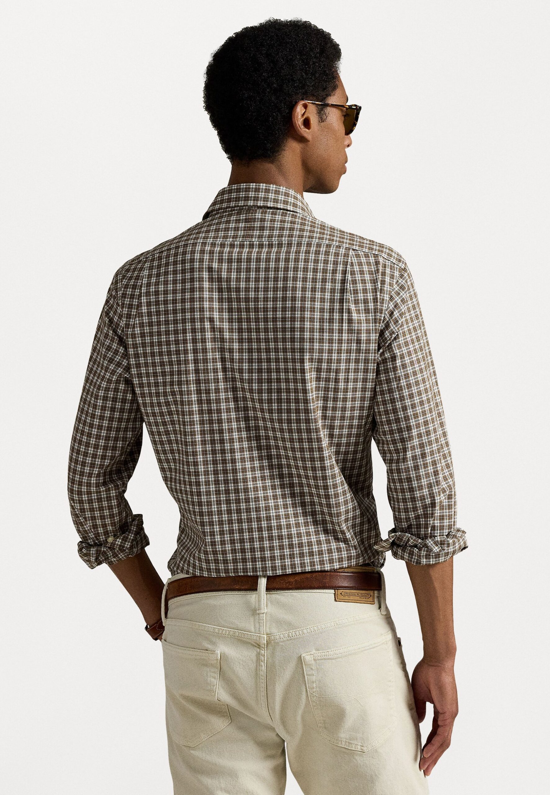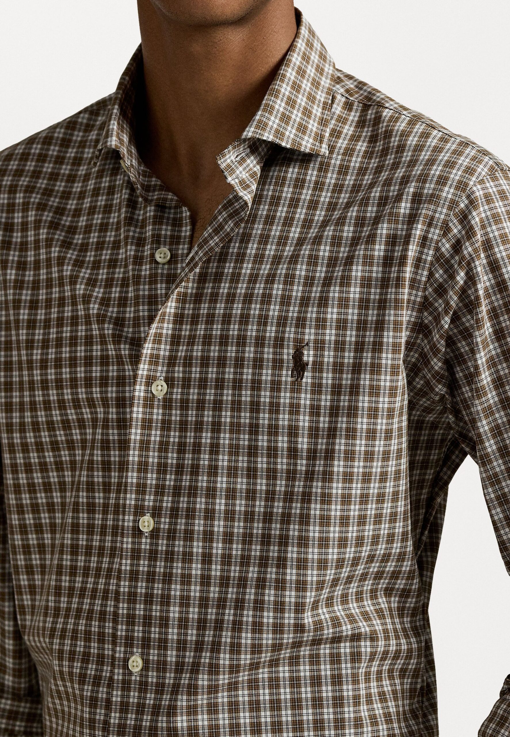 CUSTOM FIT PLAID STRETCH POPLIN SHIRT – Shirt – brown multi