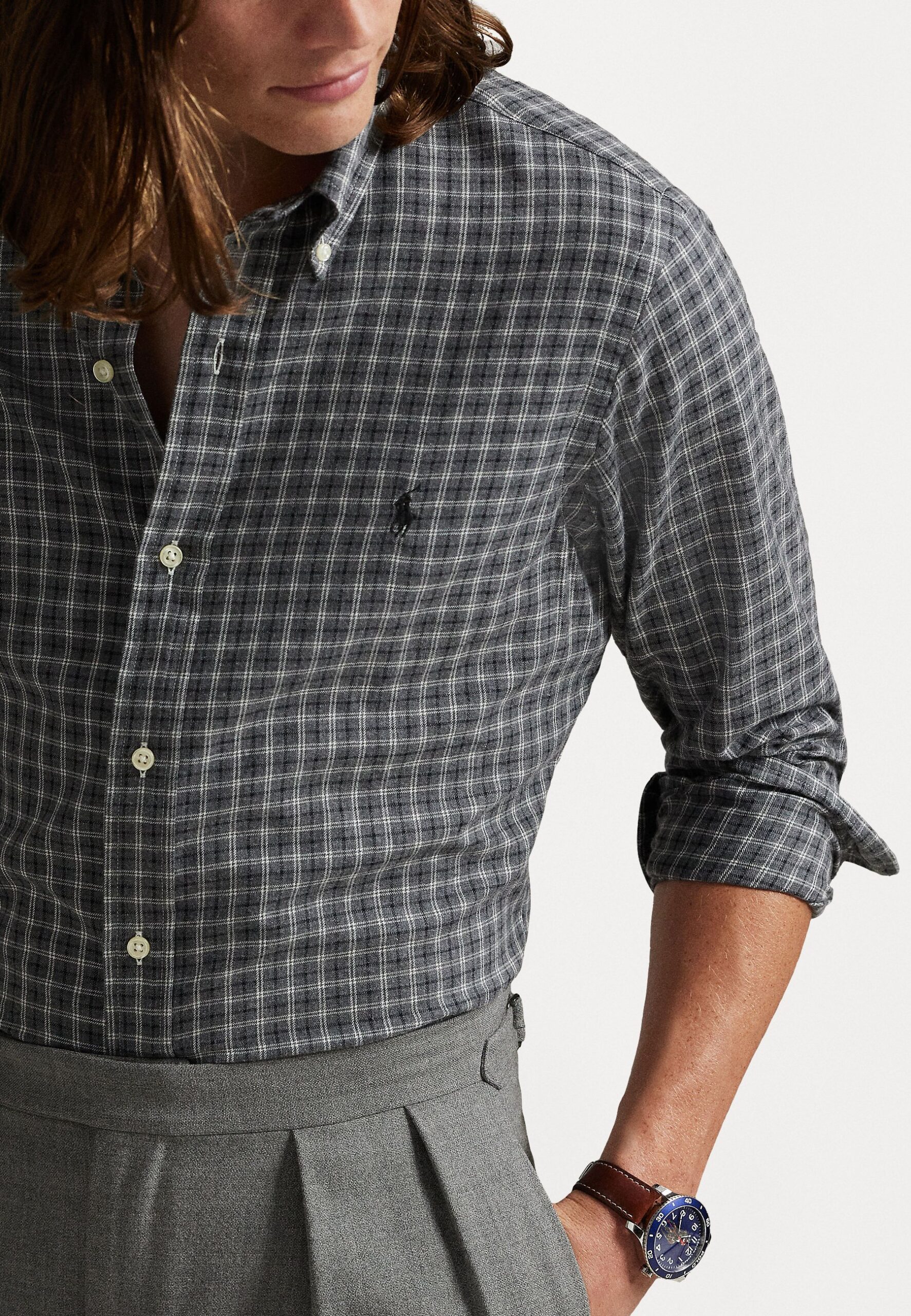 CUSTOM FIT PLAID TWILL SHIRT – Shirt – grey heather multi