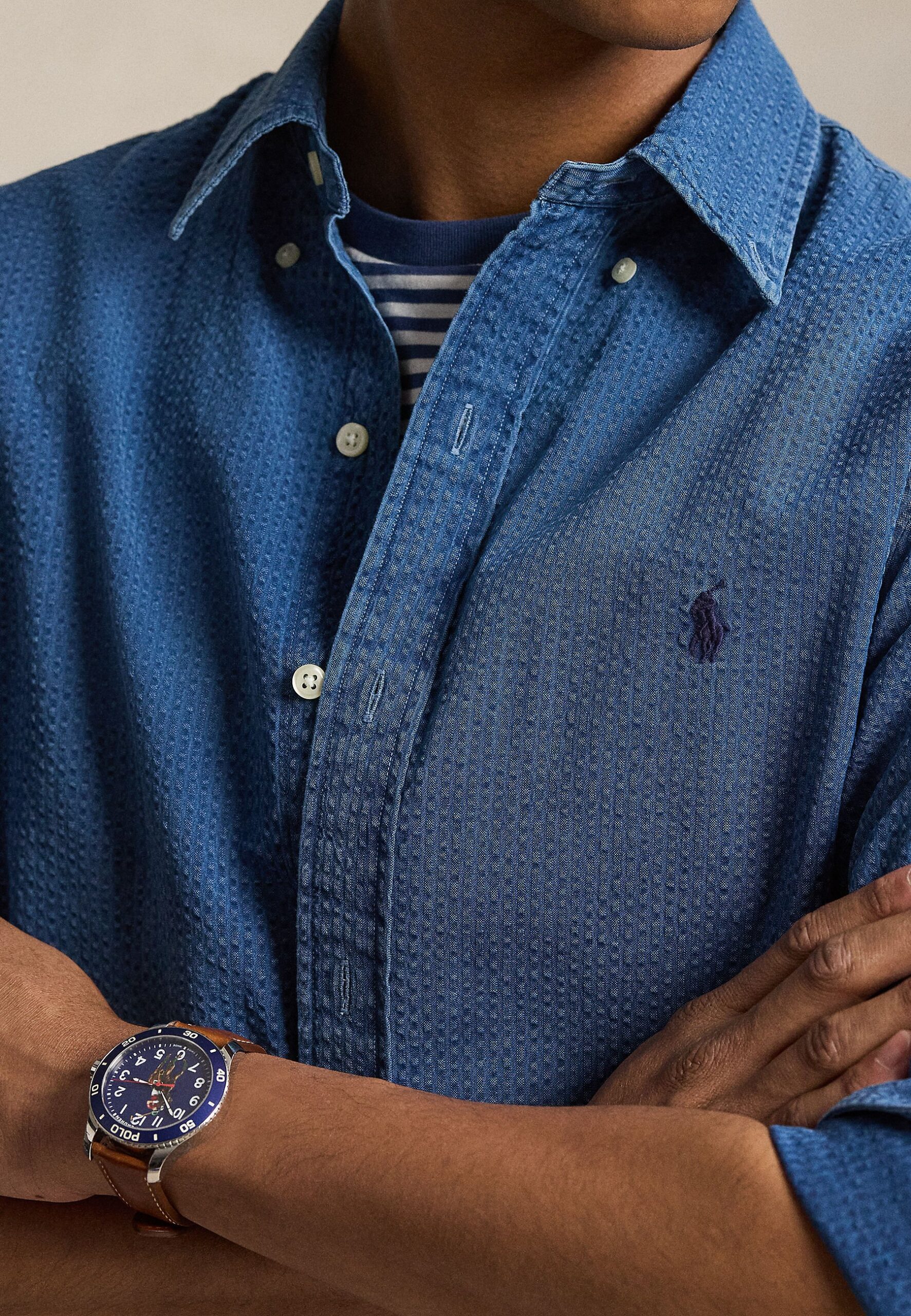 CUSTOM FIT SEERSUCKER SHIRT – Shirt – dark indigo