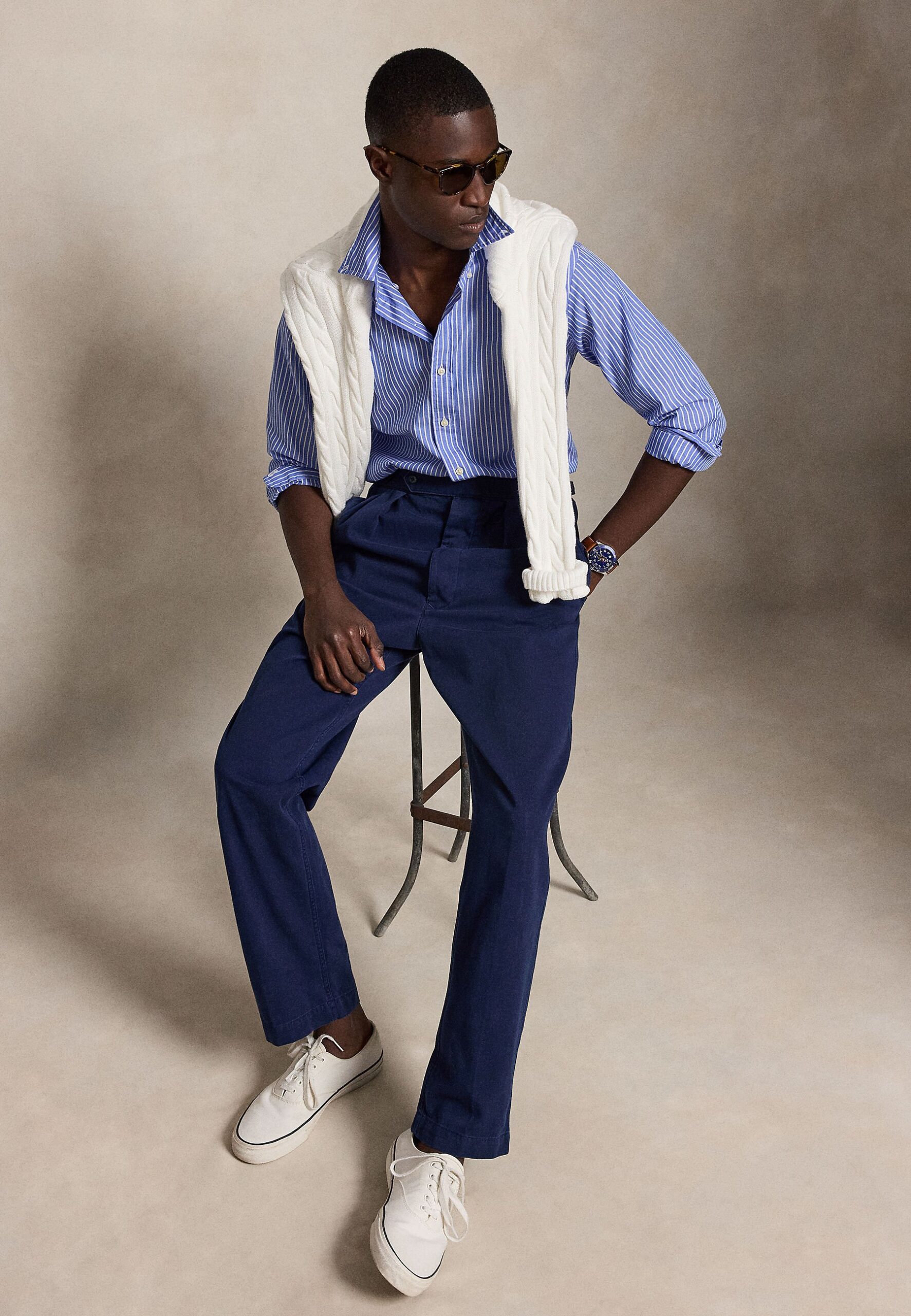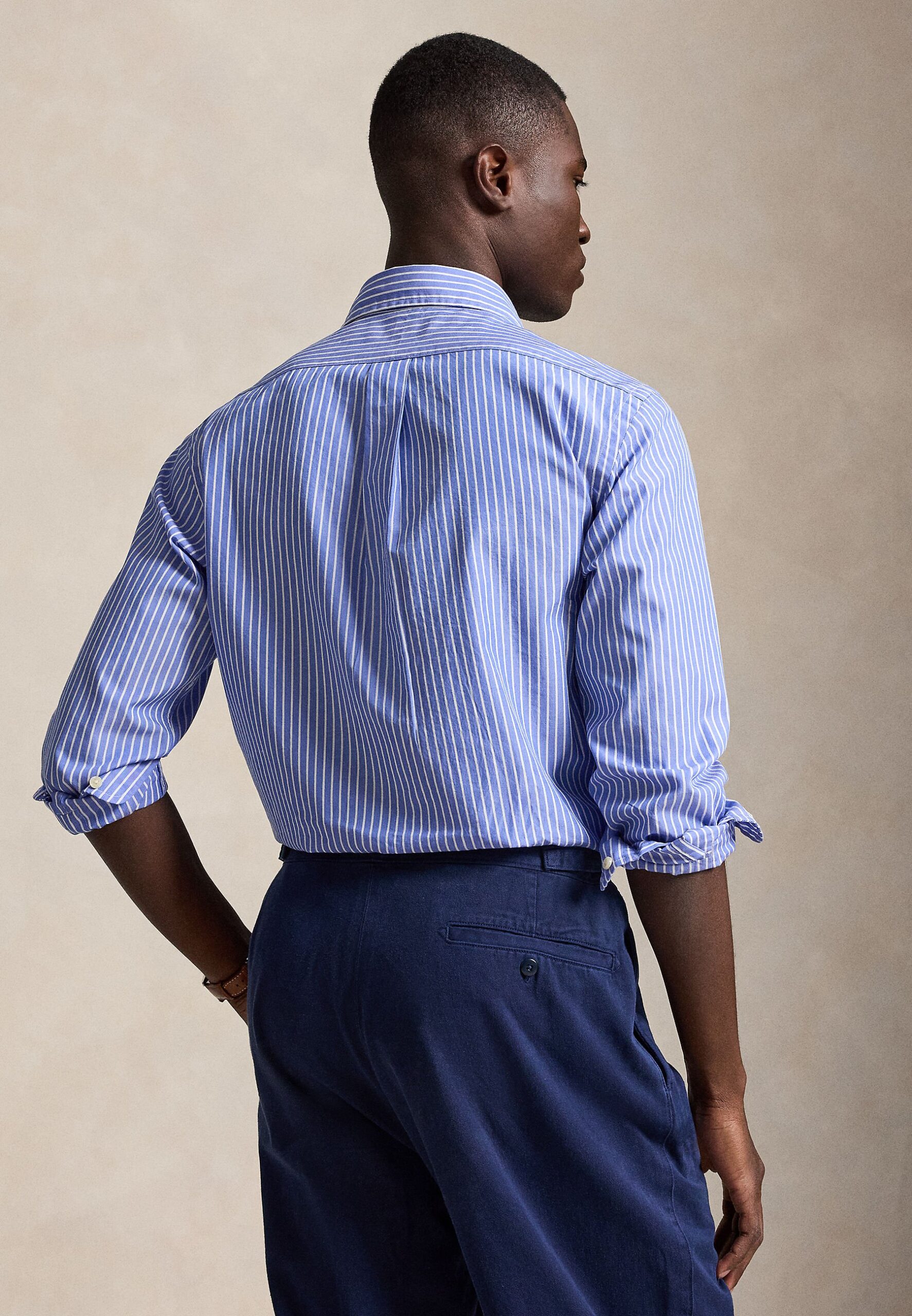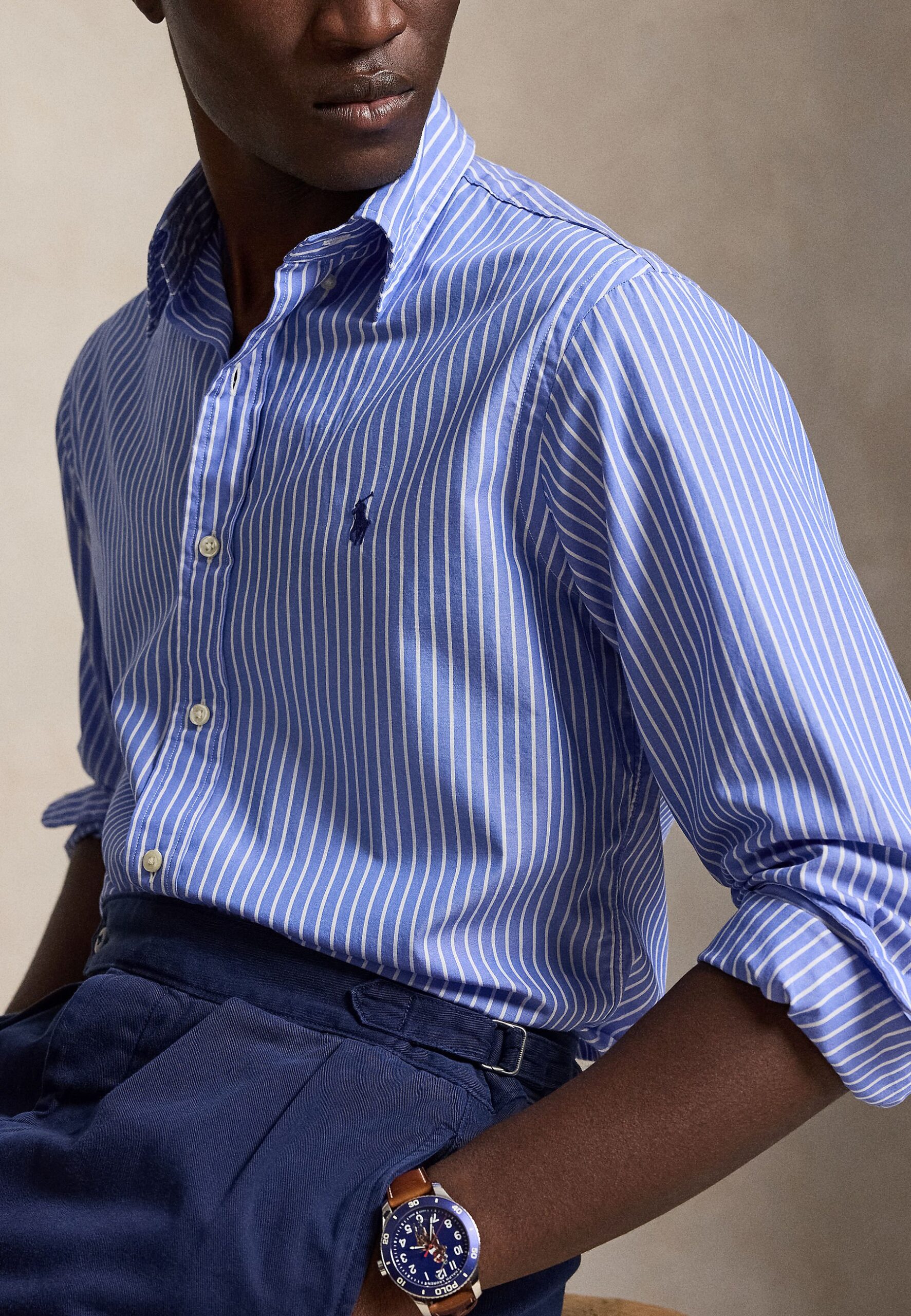 CUSTOM FIT STRIPED BROADCLOTH SHIRT – Shirt – med blue/white