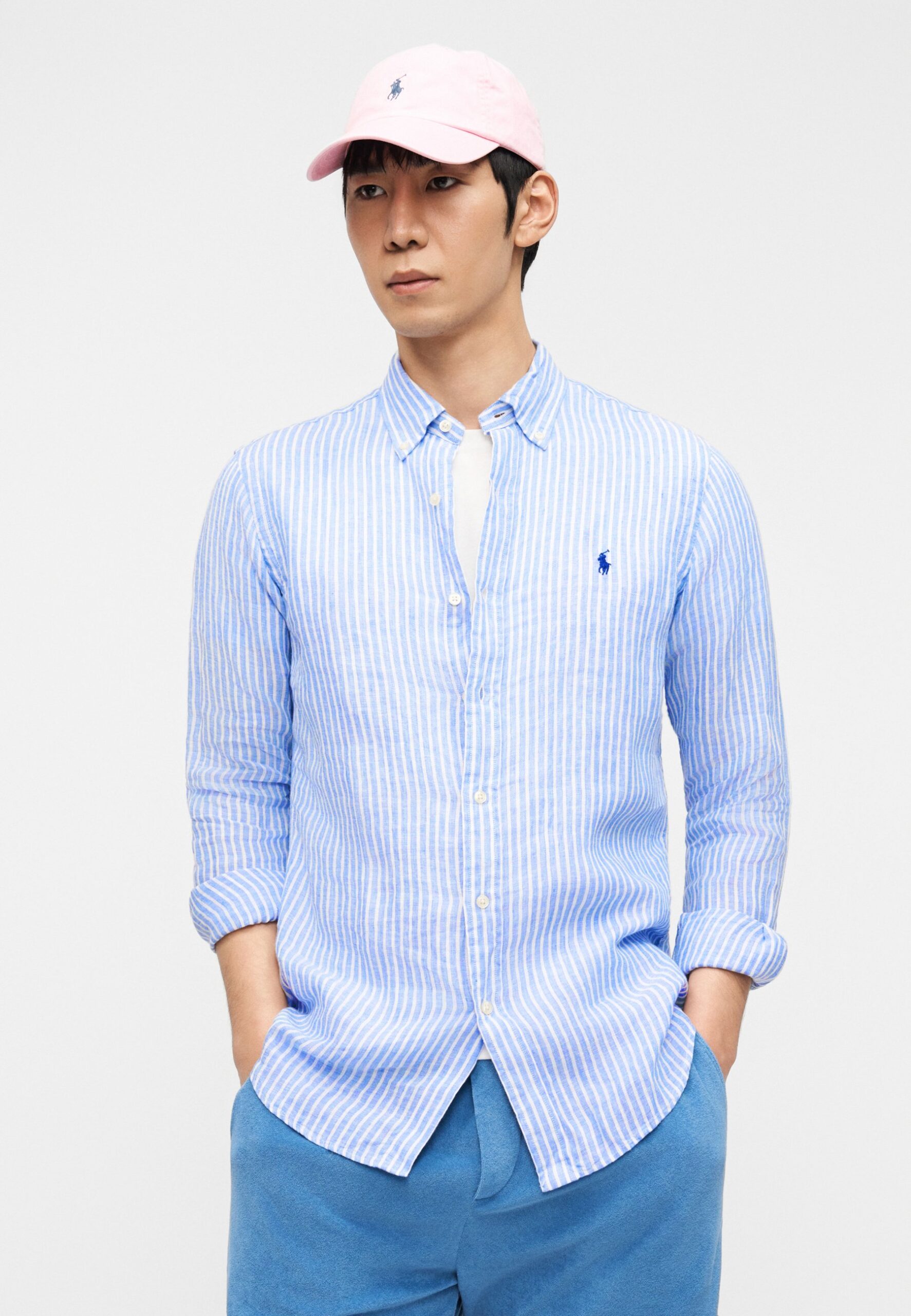 CUSTOM FIT STRIPED LINEN SHIRT – Shirt – blue/white