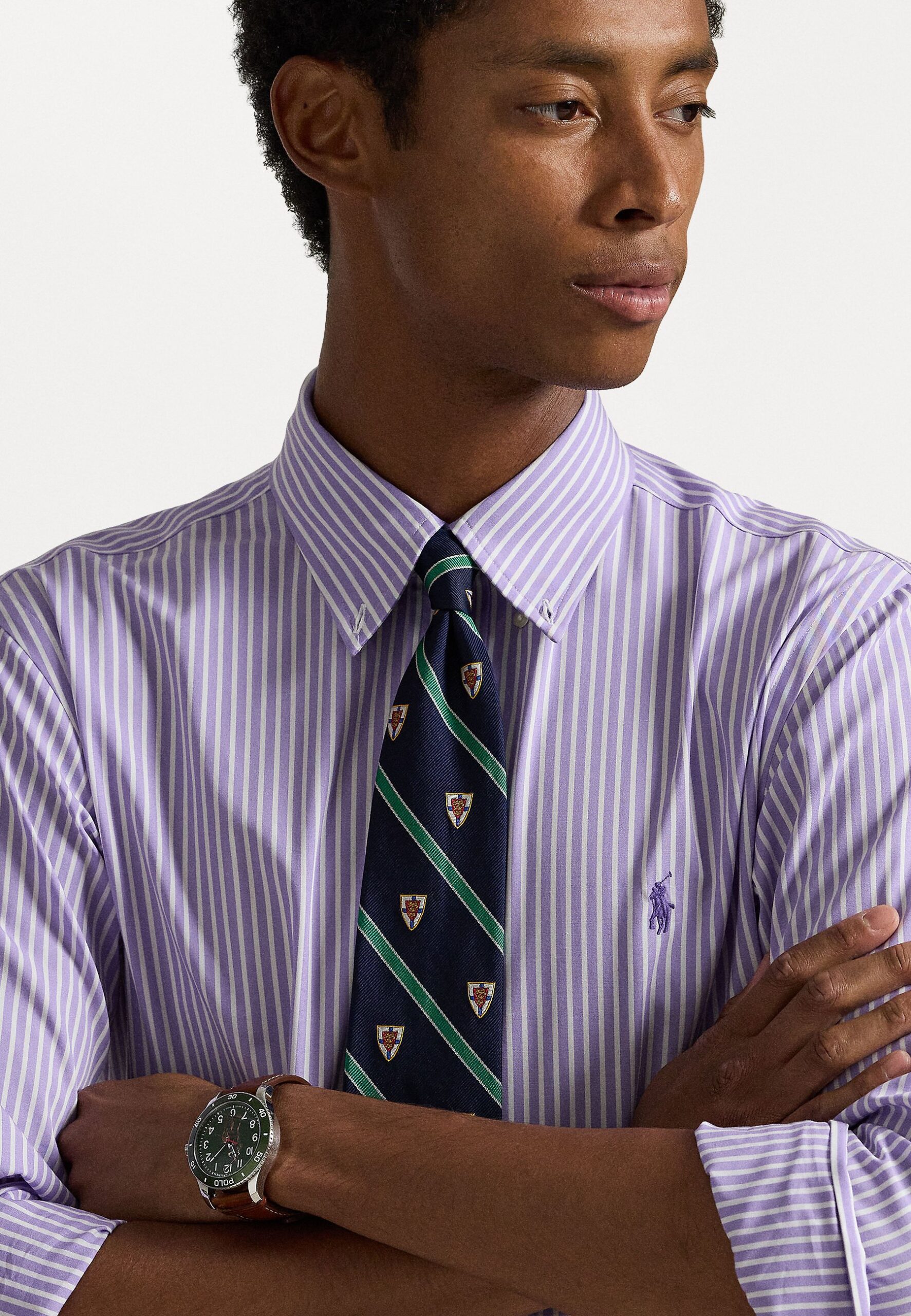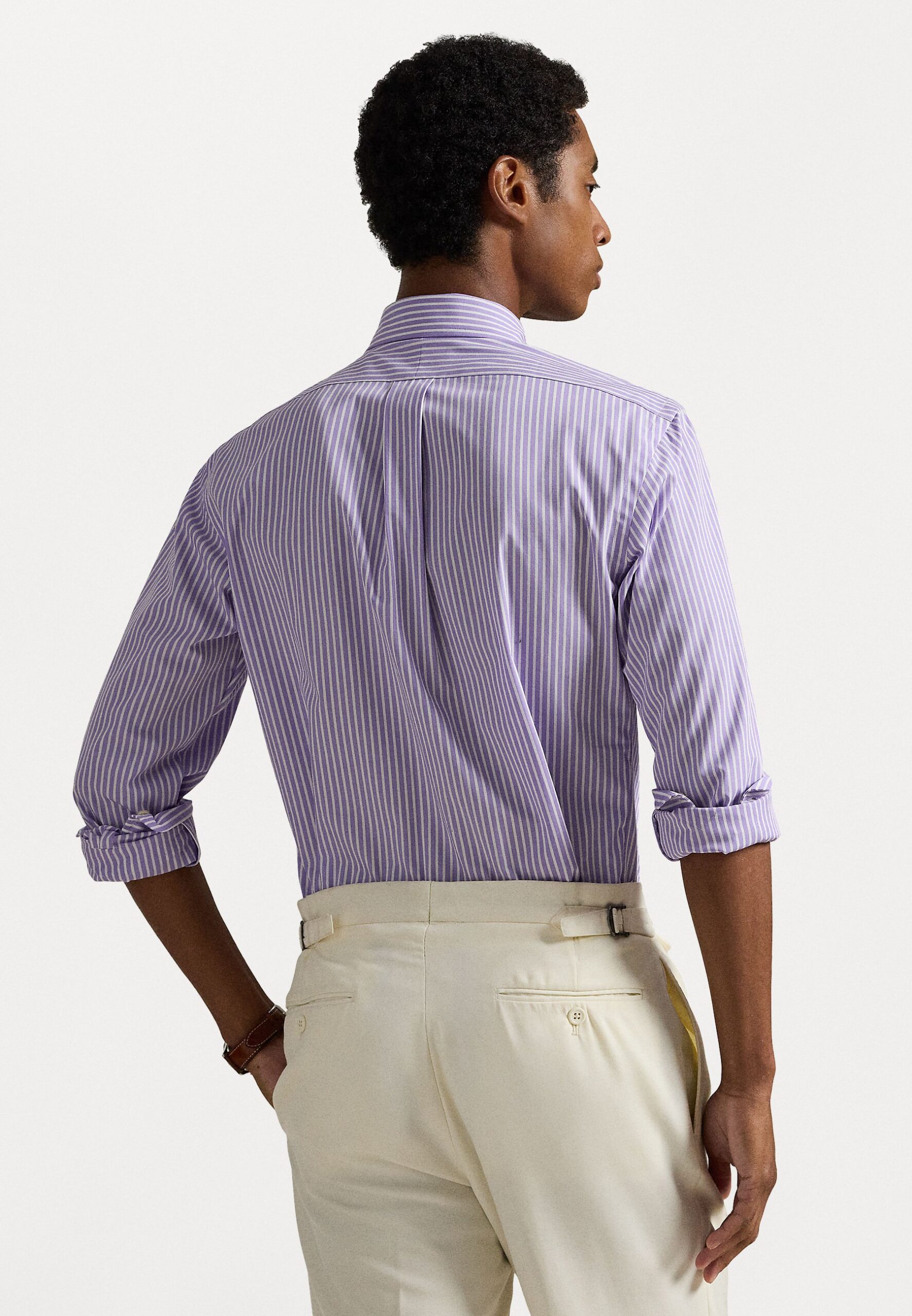 CUSTOM FIT STRIPED STRETCH POPLIN SHIRT – Shirt – light lilac/white