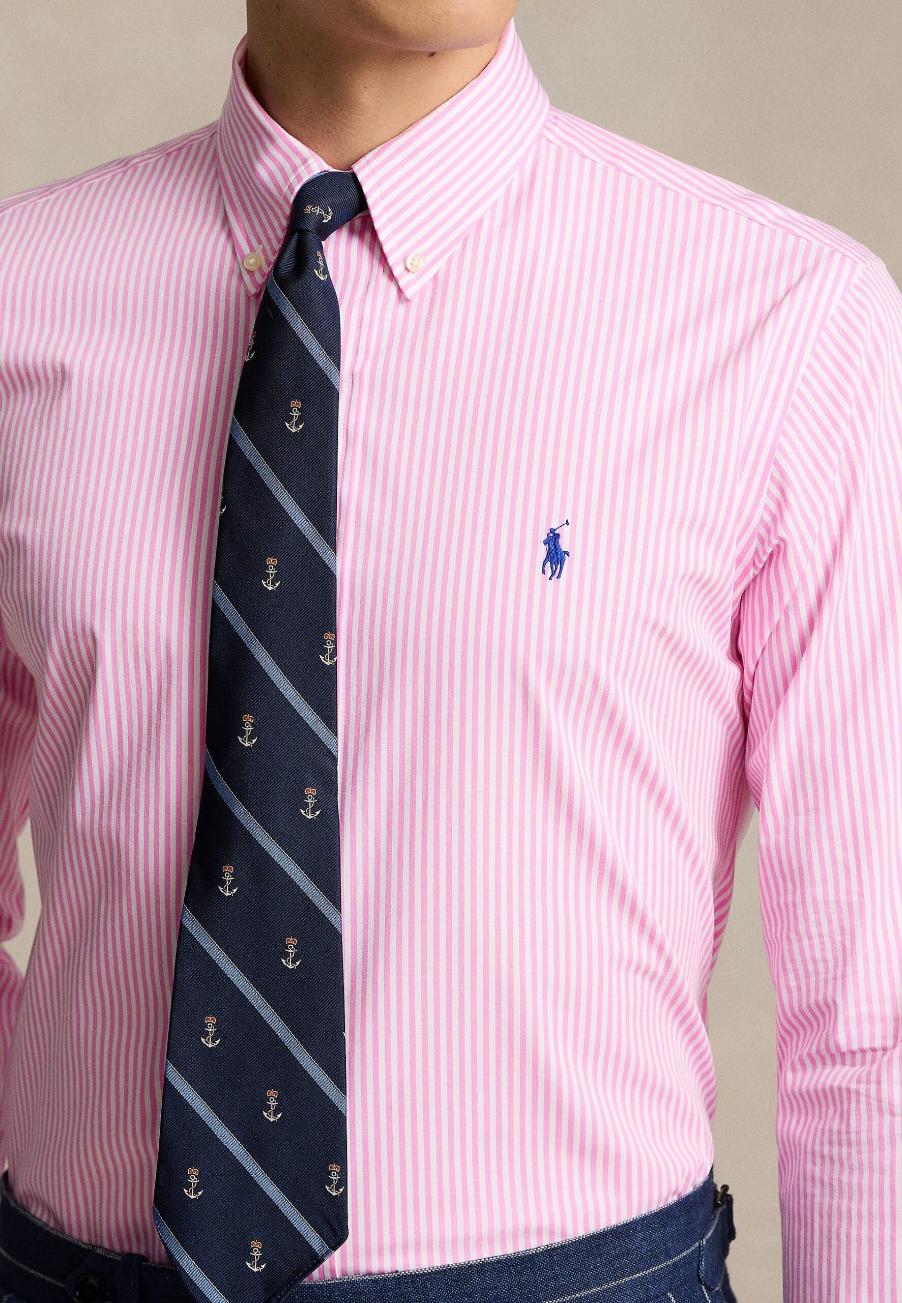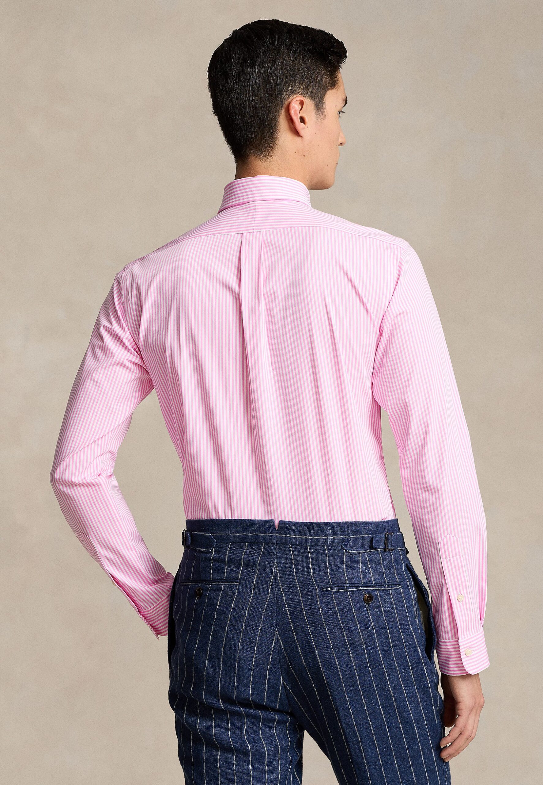 CUSTOM FIT STRIPED STRETCH POPLIN SHIRT – Shirt – pink/white