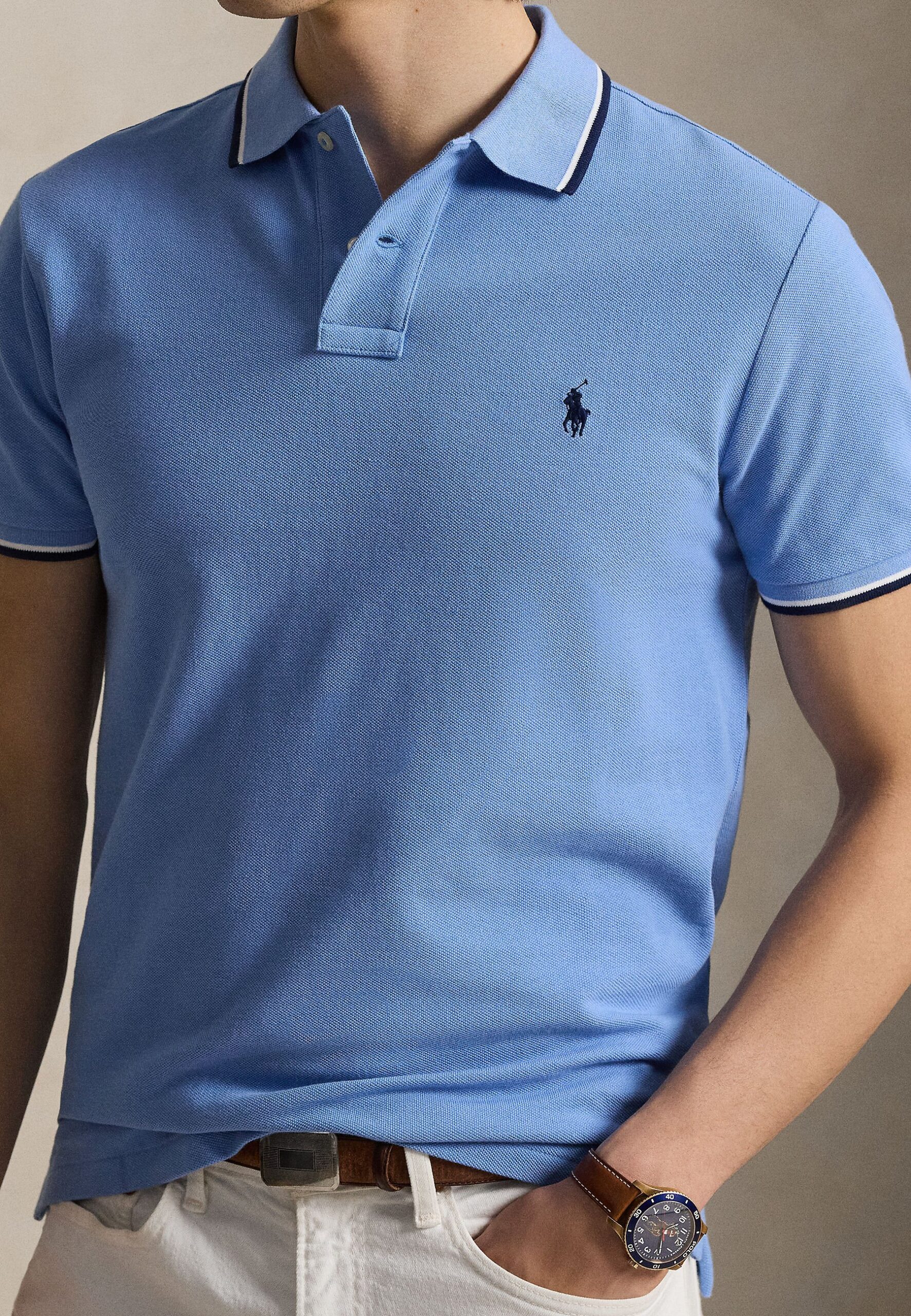 CUSTOM SLIM FIT MESH POLO SHIRT – Polo shirt – bristol blue