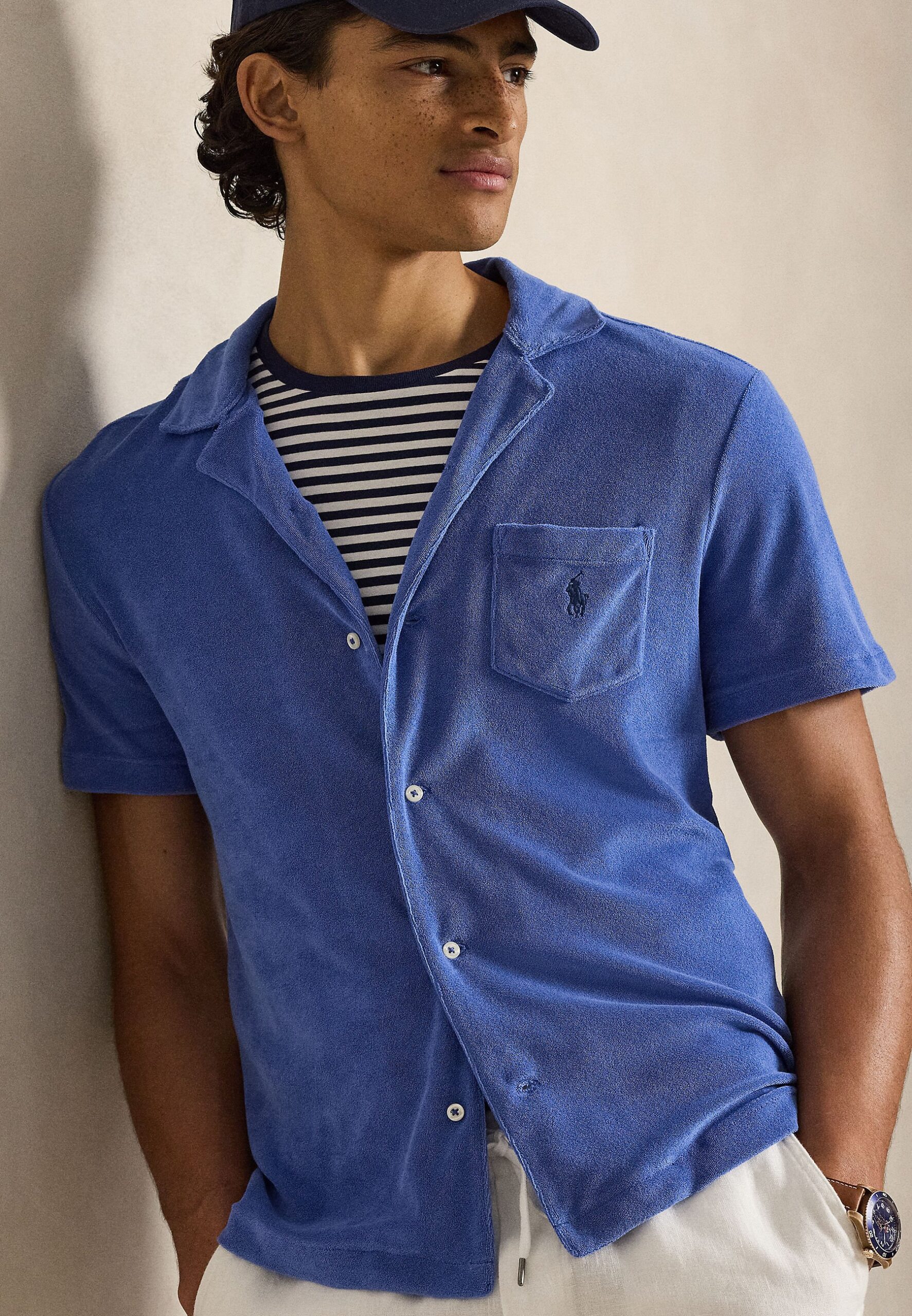CUSTOM SLIM FIT TERRY CAMP SHIRT – Shirt – modern royal