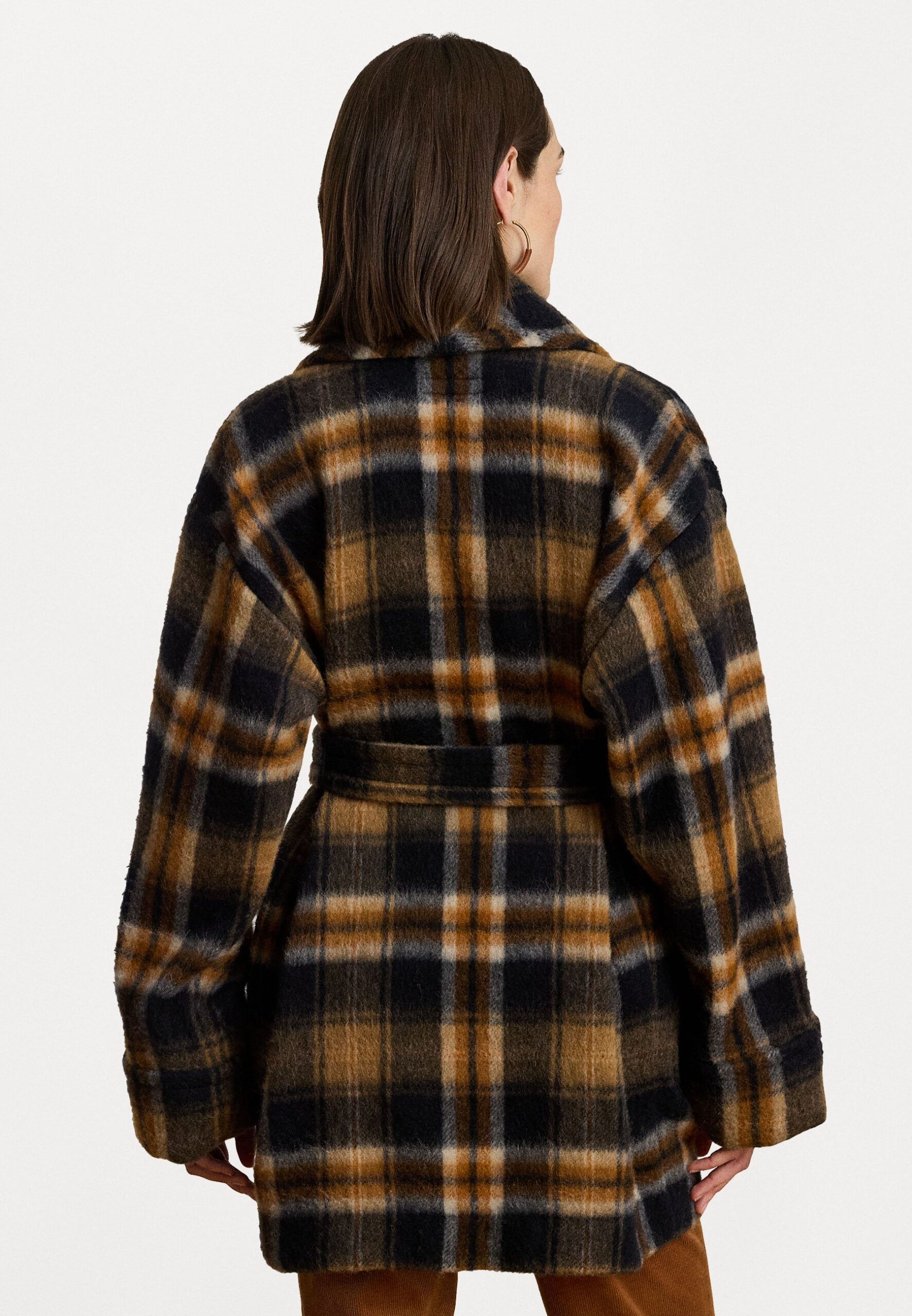 DARDA PLAID WOOL BLEND SHAWL COLLAR WRAP COAT – Classic coat – navy/cinnamon multi