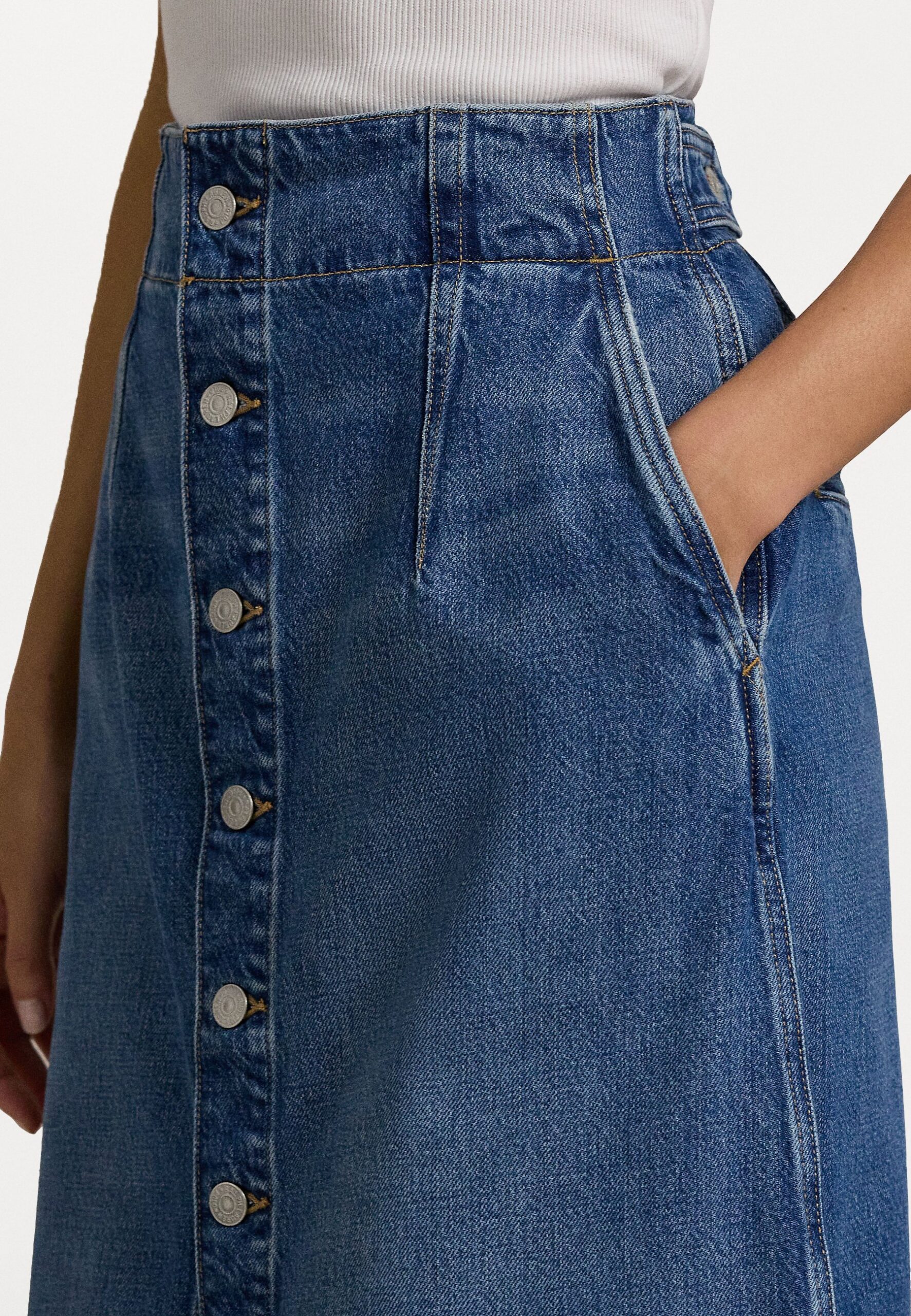 DENIM A LINE MIDI SKIRT – Denim skirt – colel wash