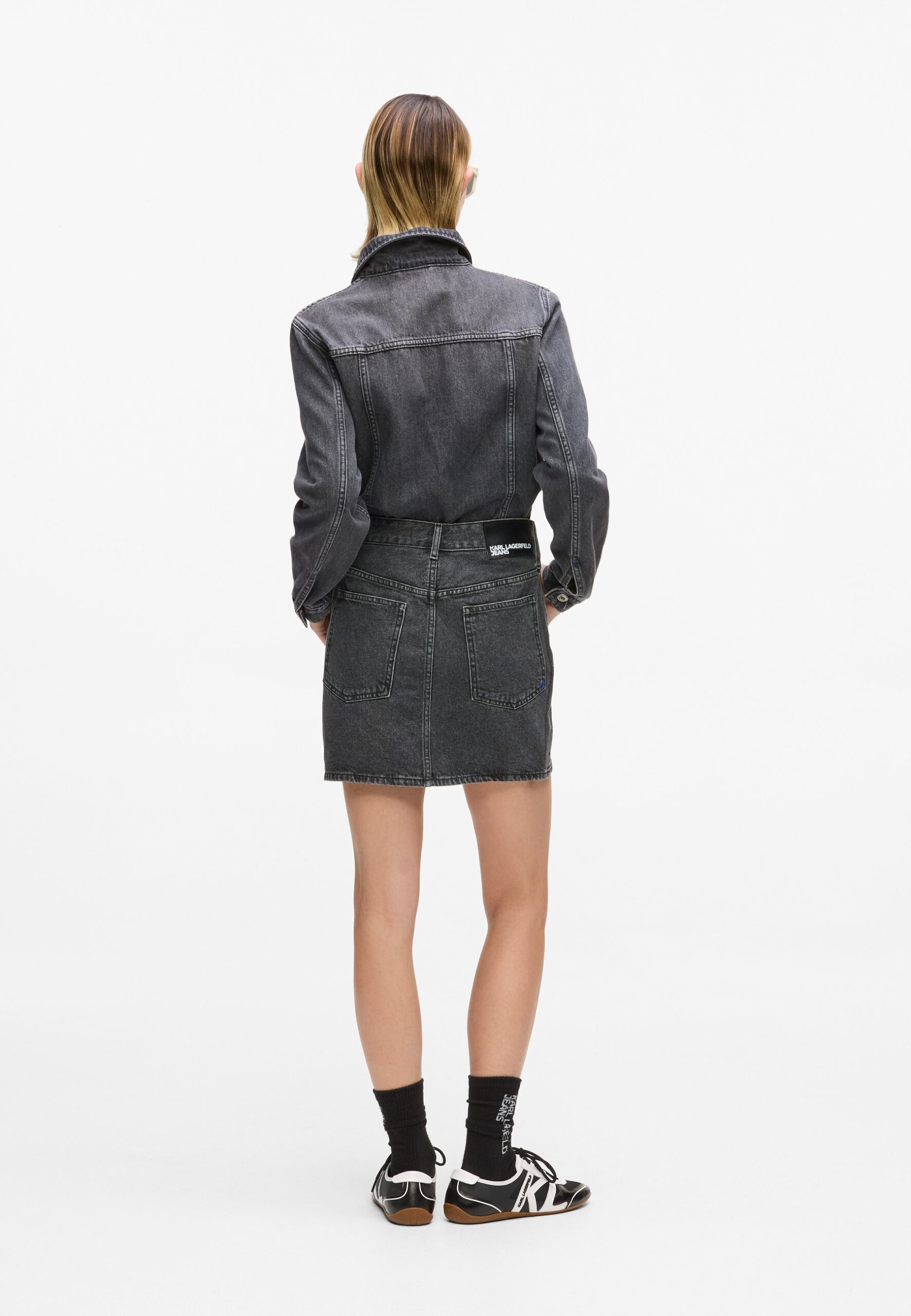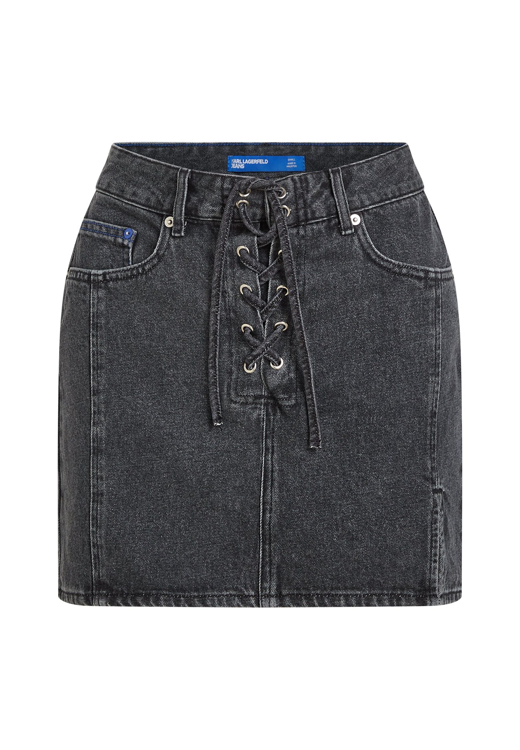 DENIM LACE-UP MINI – Denim skirt – washed black