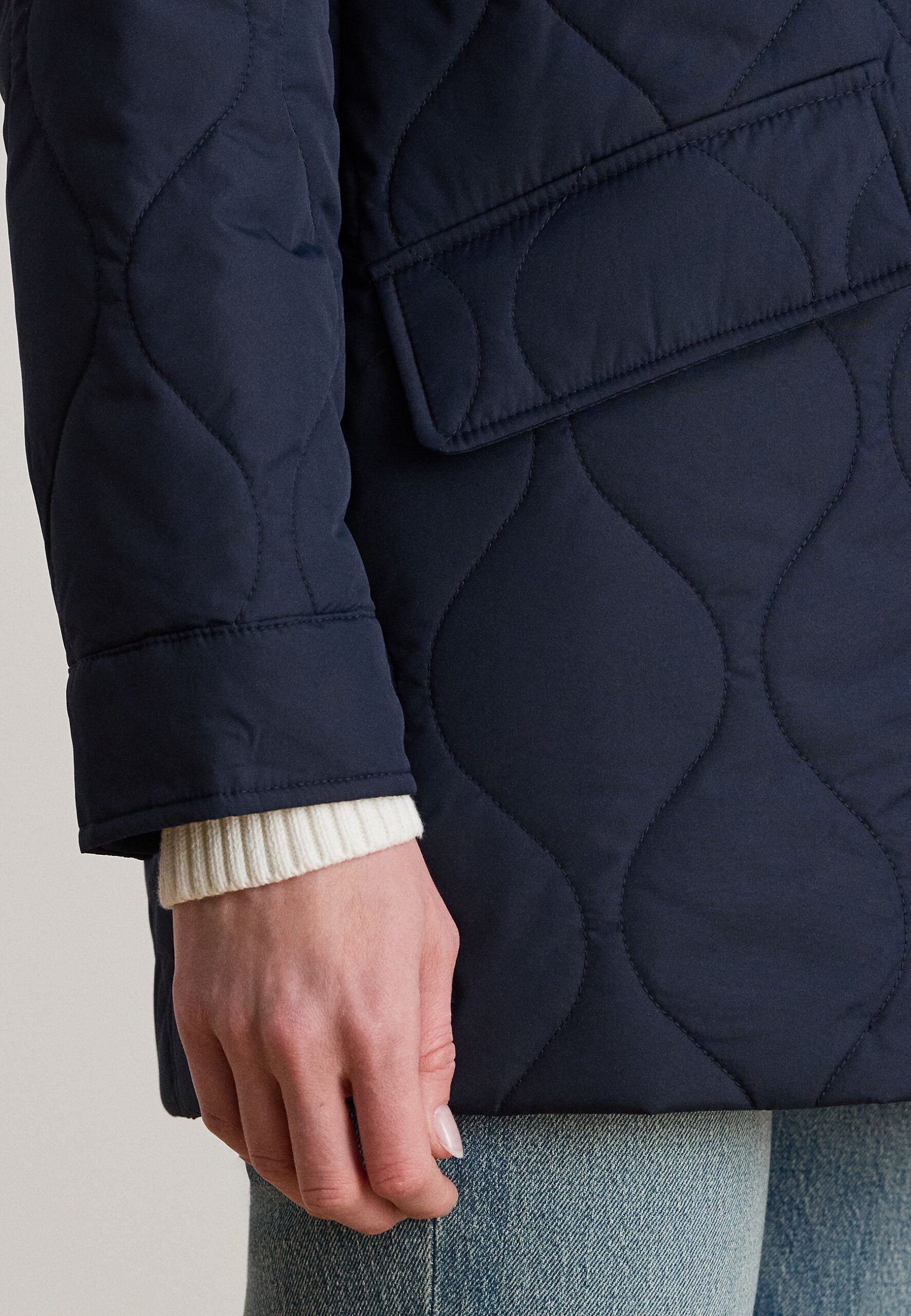 DENIM-TRIM ONION-QUILTED BARN JACKET – Winter jacket – dark navy