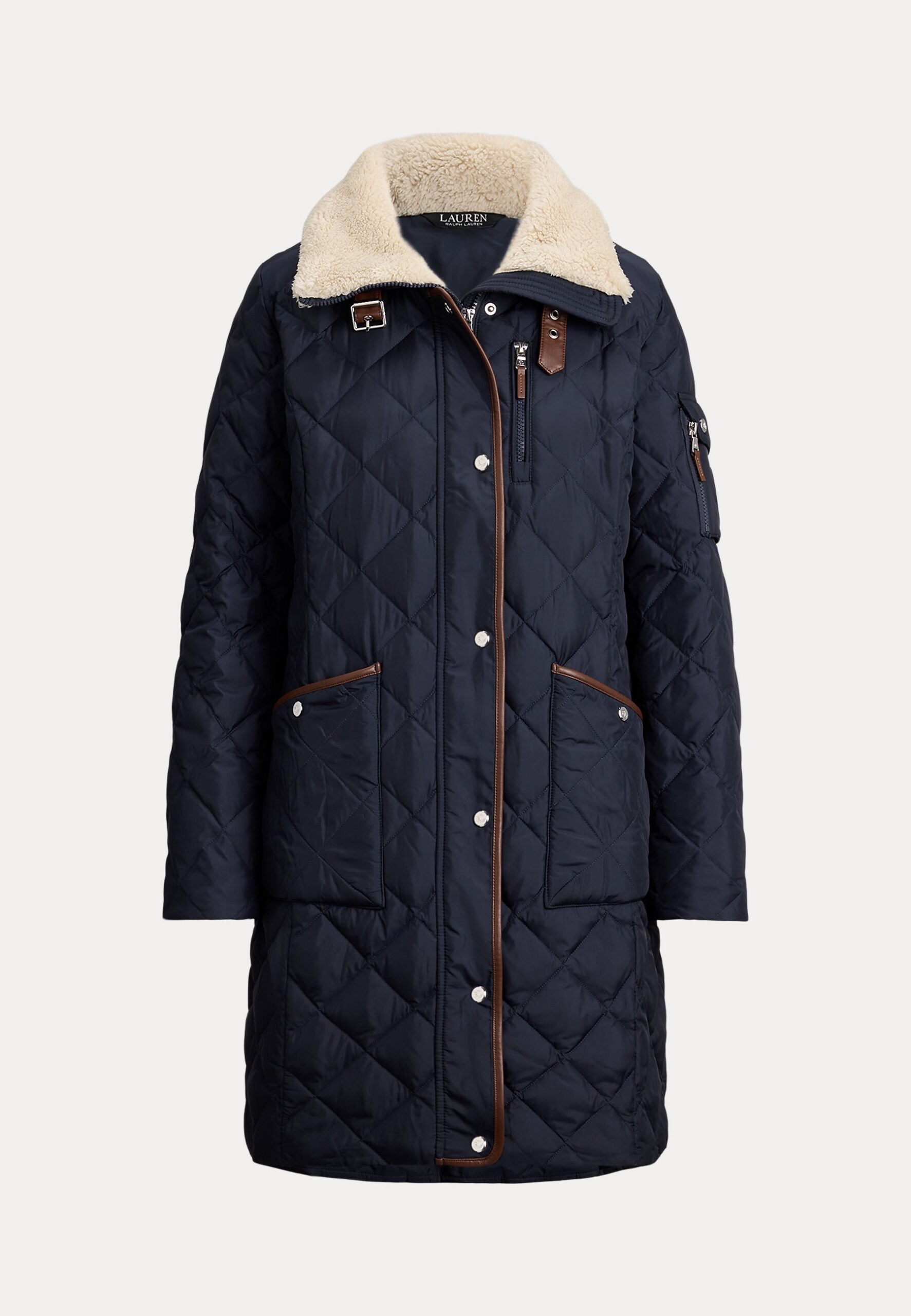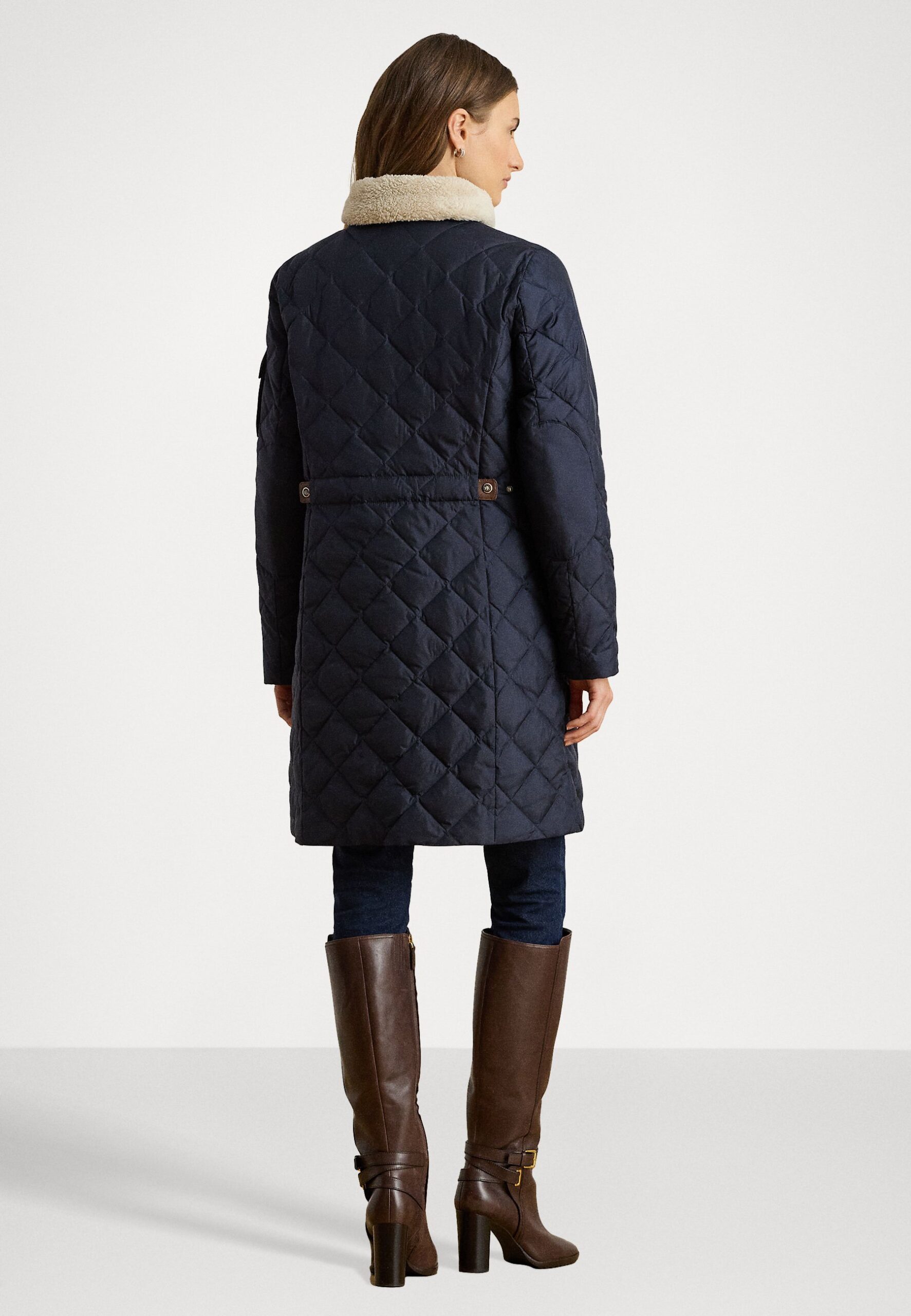 DIAMOND-QUILTED FUNNELNECK DOWN COAT – Down coat – dark navy