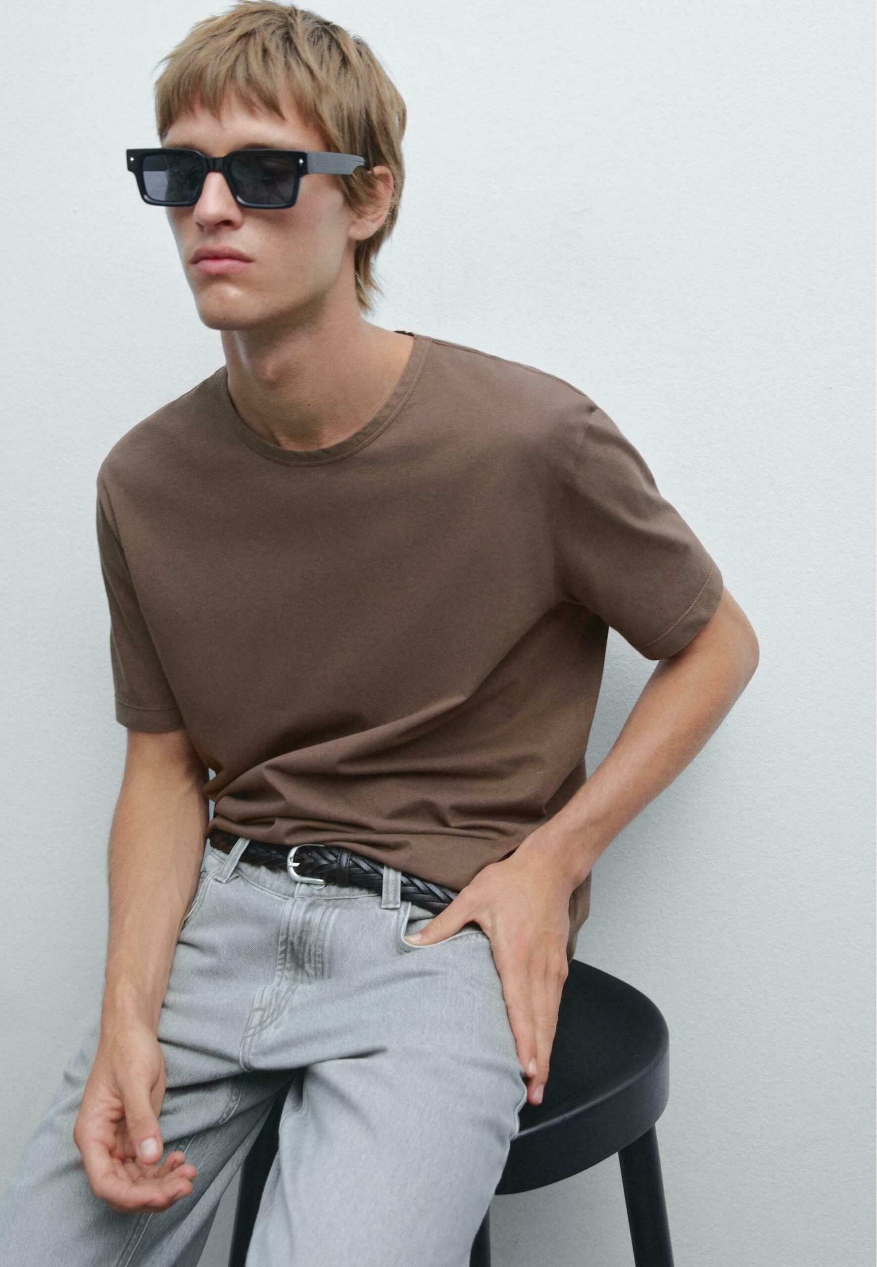 DISTRESSED-EFFECT SHORT SLEEVE – Basic T-shirt – brown