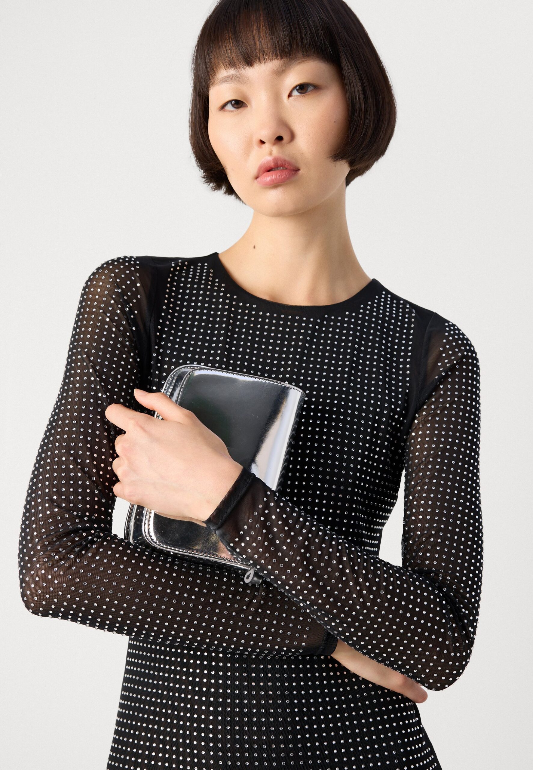 DOME STUDS LONG SLEEVE DRESS – Day dress – black silver