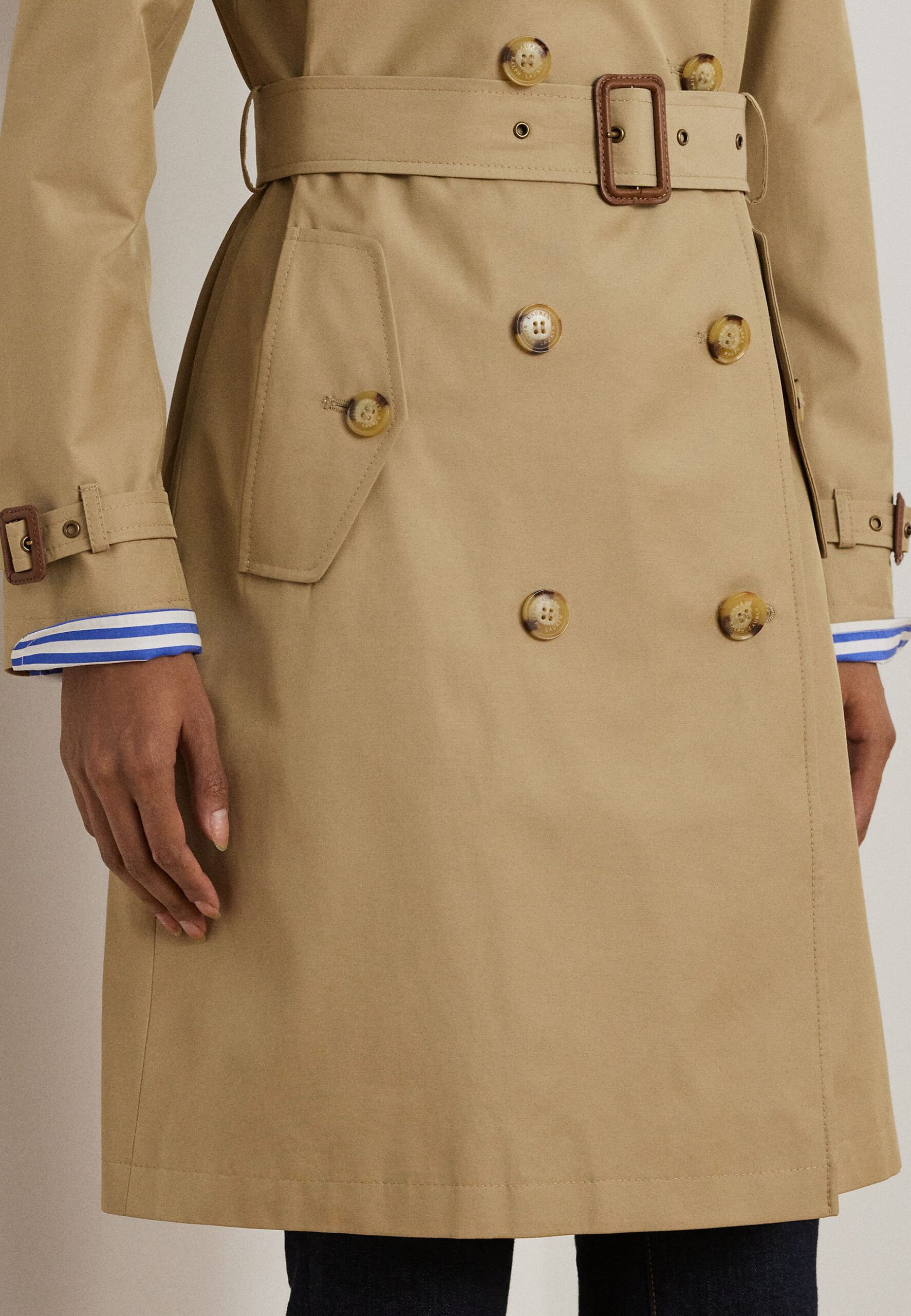DOUBLE BREASTED COTTON BLEND TRENCH COAT – Trenchcoat – birch tan