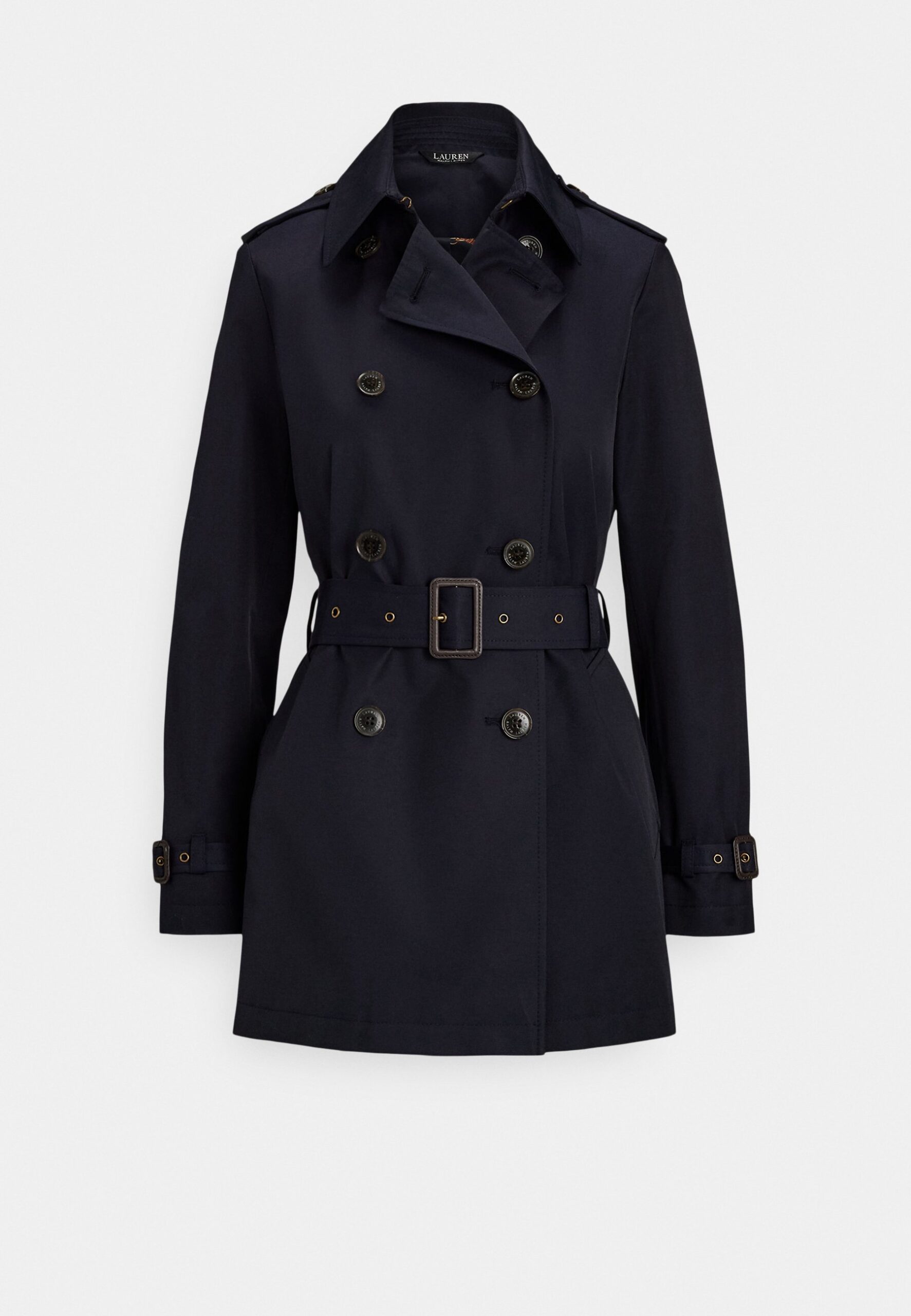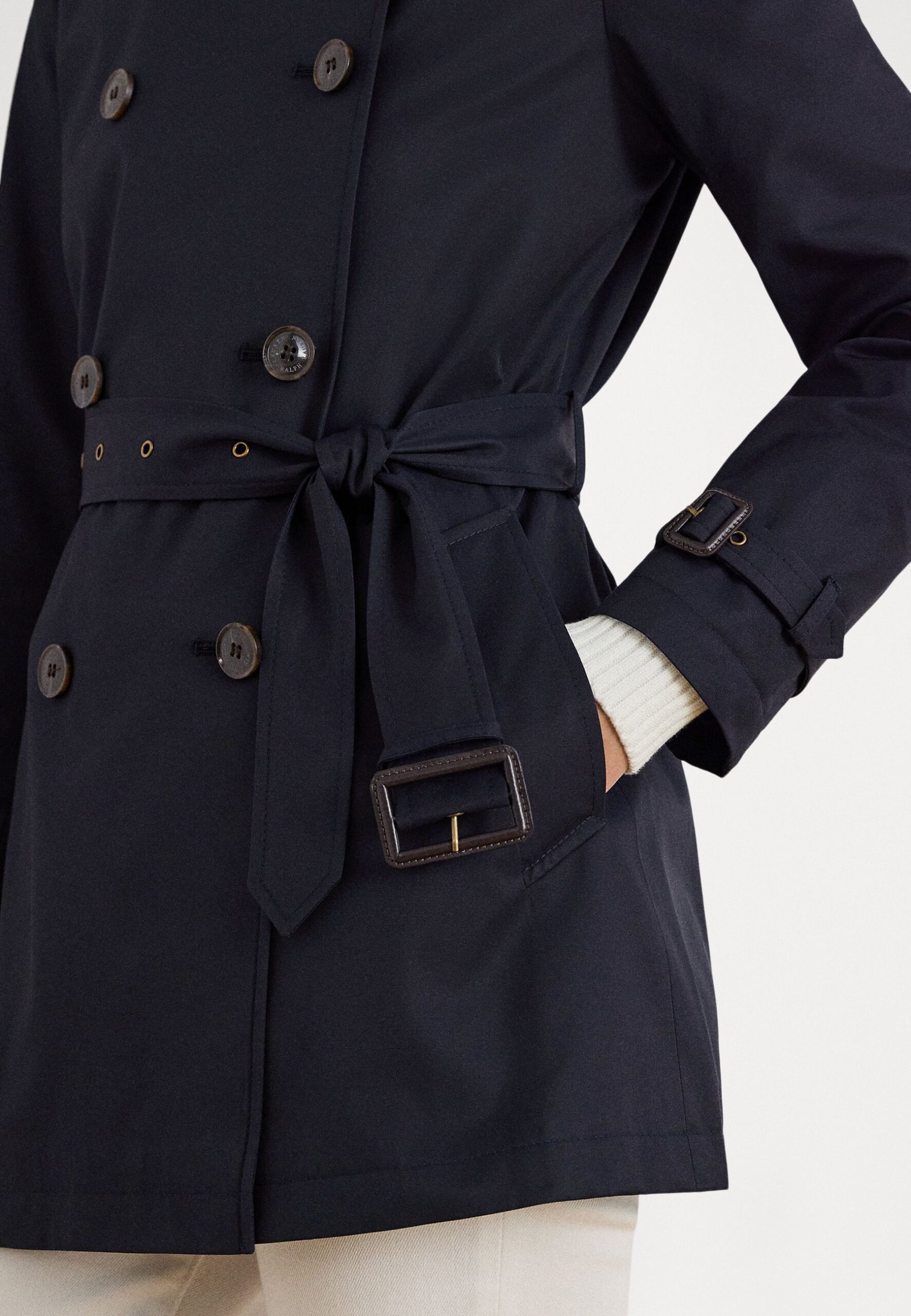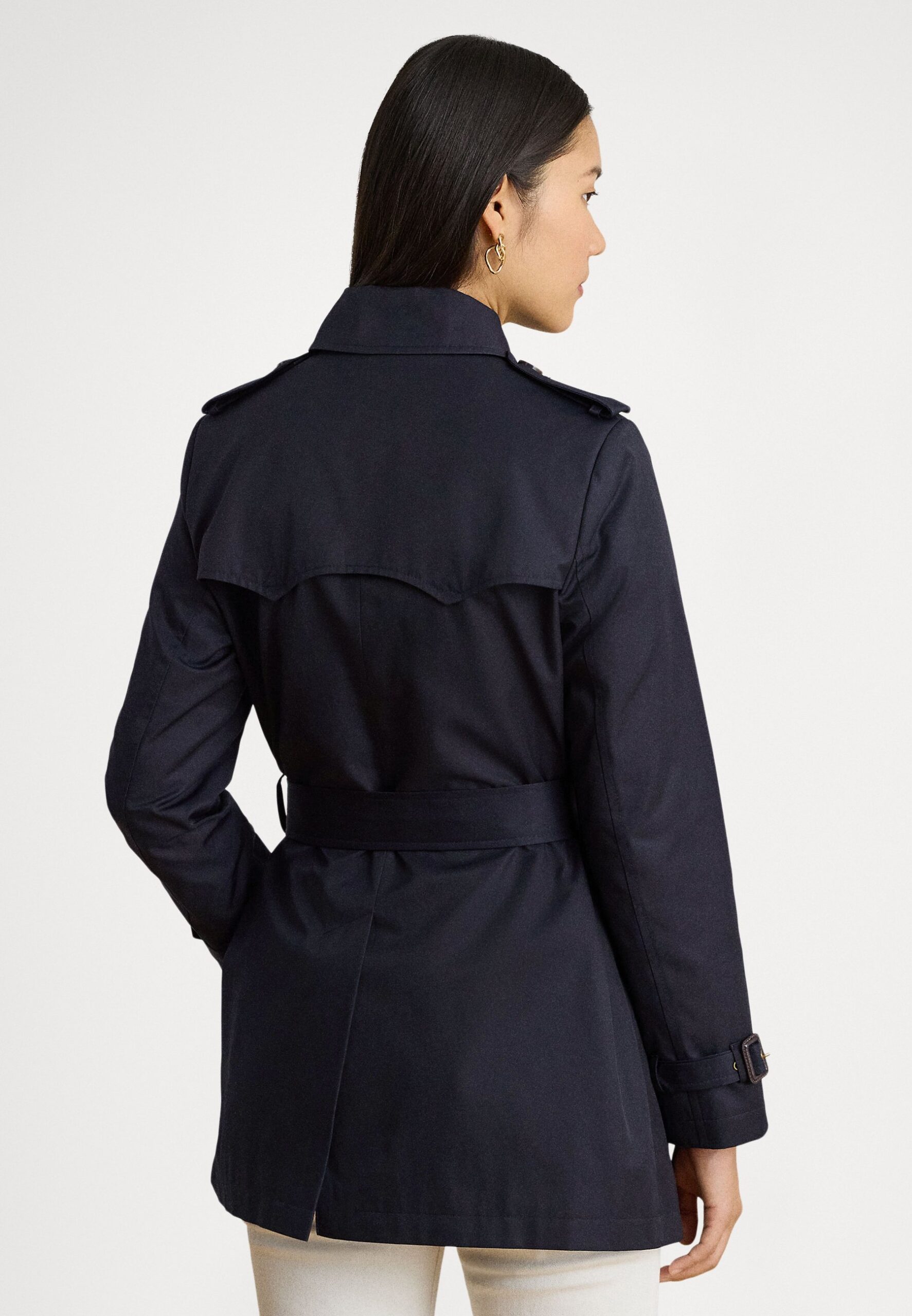 DOUBLE BREASTED COTTON BLEND TRENCH COAT – Trenchcoat – dark navy