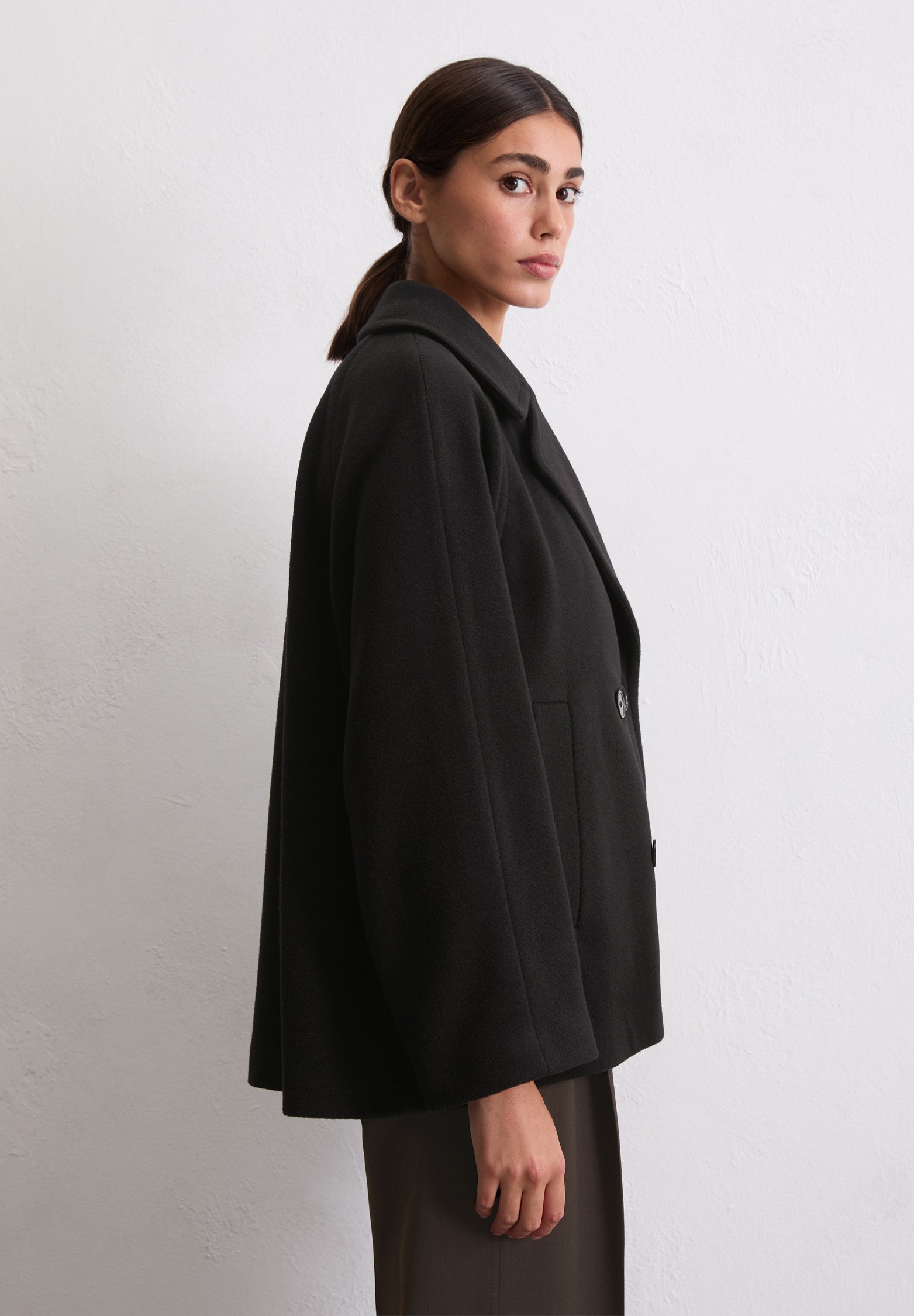DOUBLE BREASTED WELT POCKETS LAPEL COLLAR – Summer jacket – black