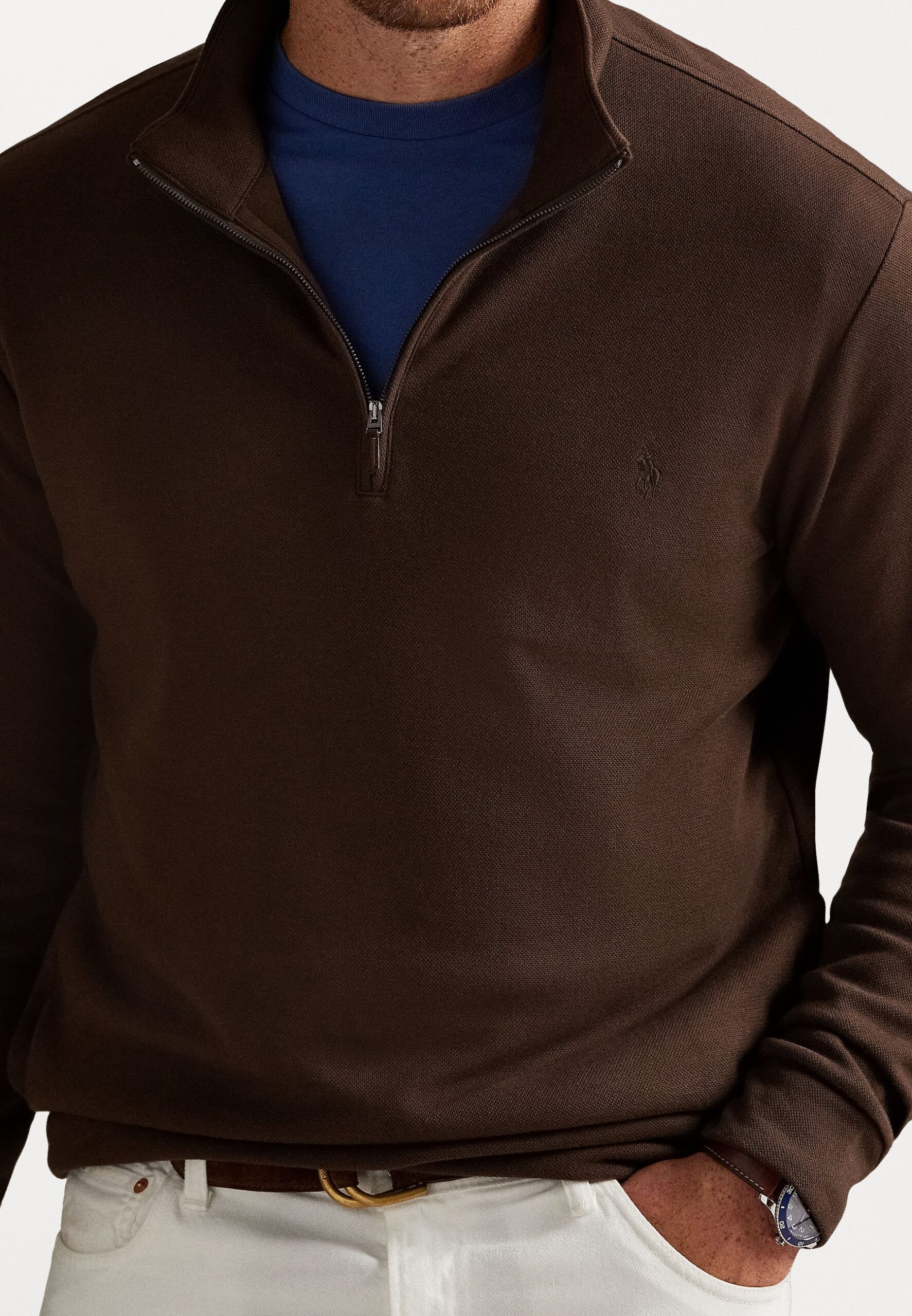 DOUBLE-KNIT QUARTER-ZIP PULLOVER – Sweatshirt – nutmeg brown