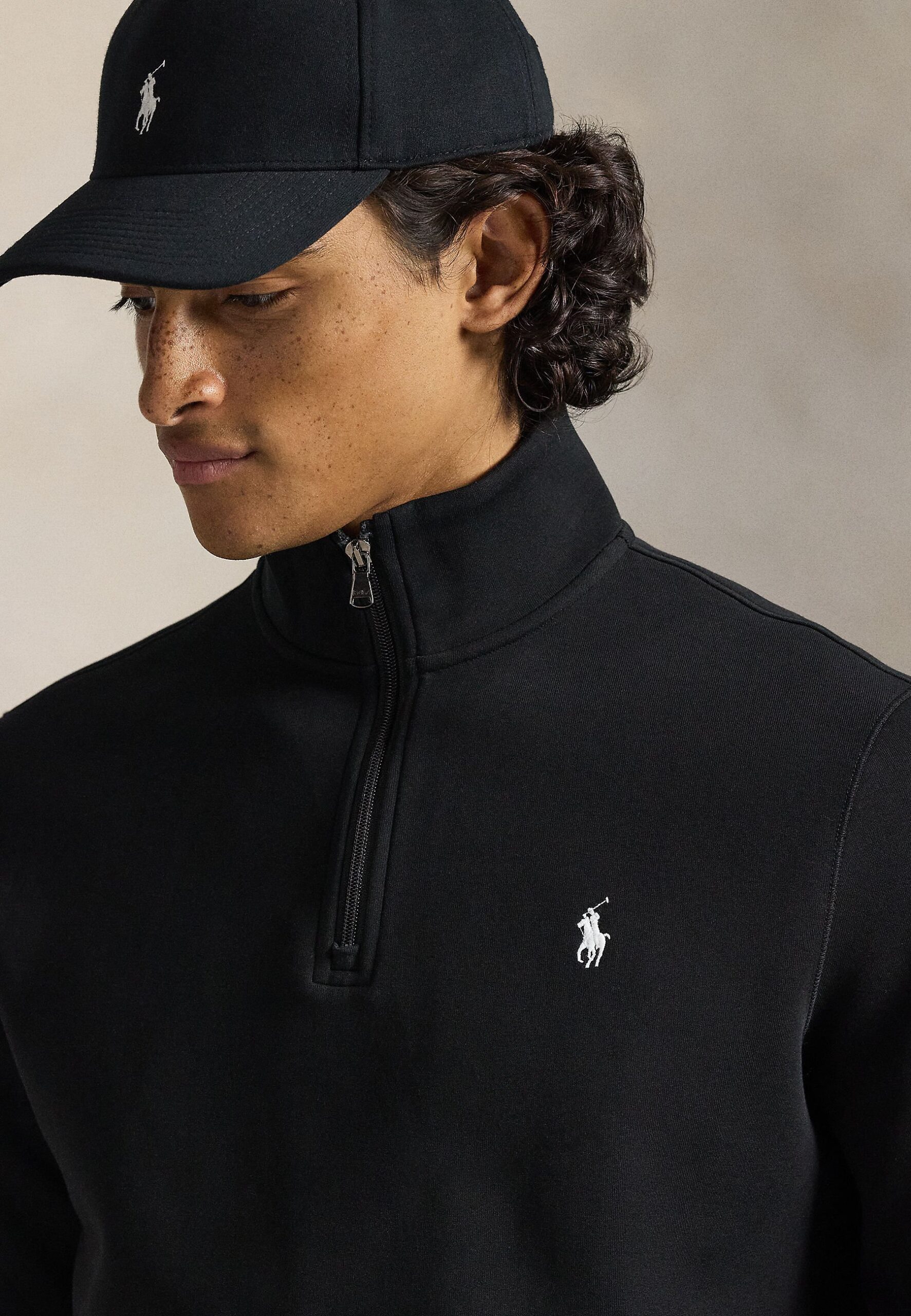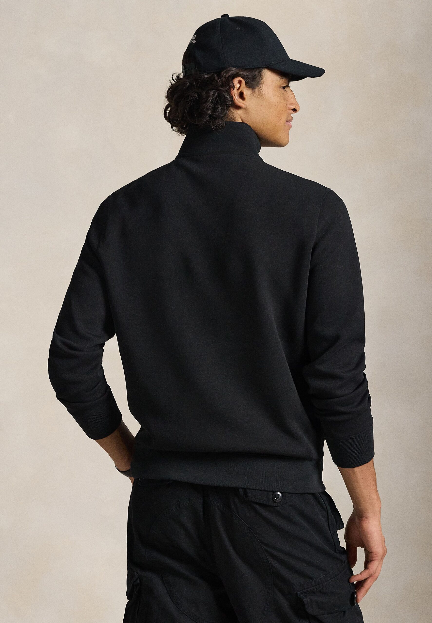 DOUBLE-KNIT QUARTER-ZIP PULLOVER – Sweatshirt – polo black