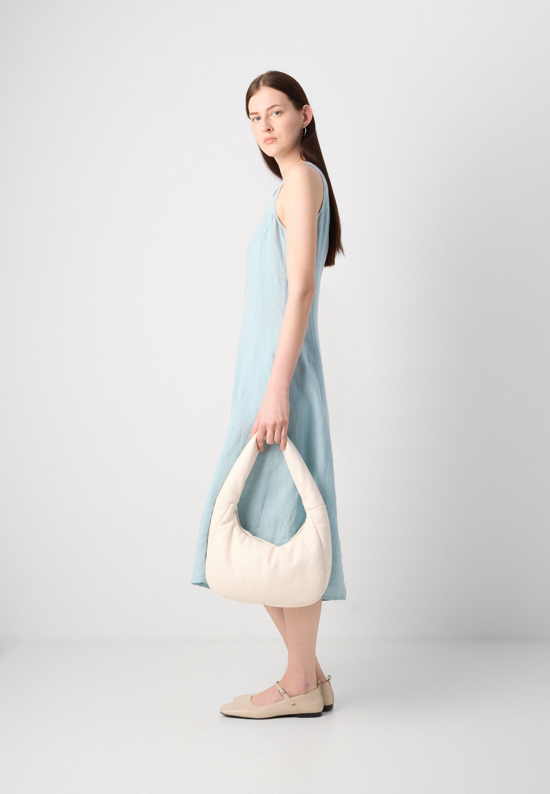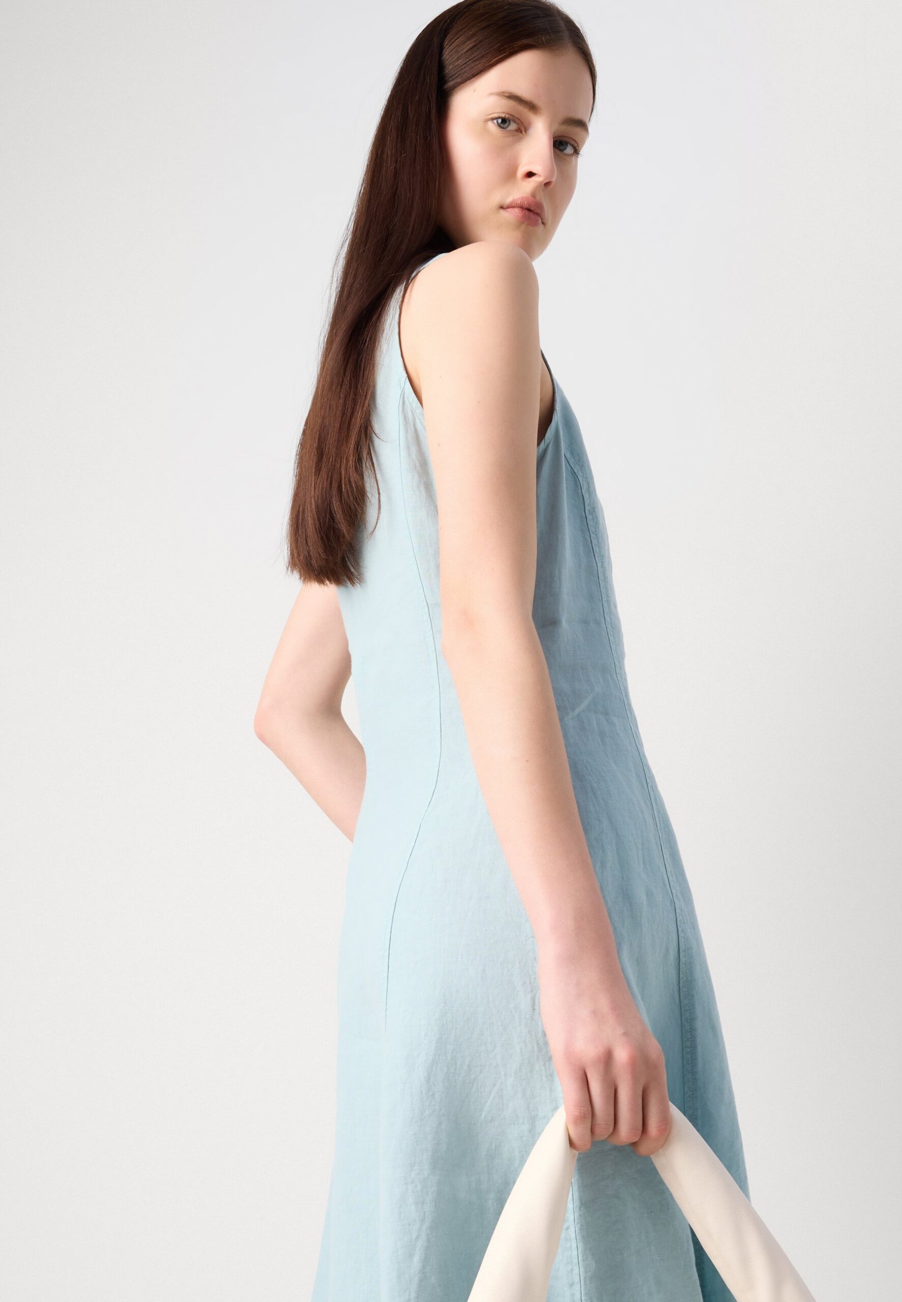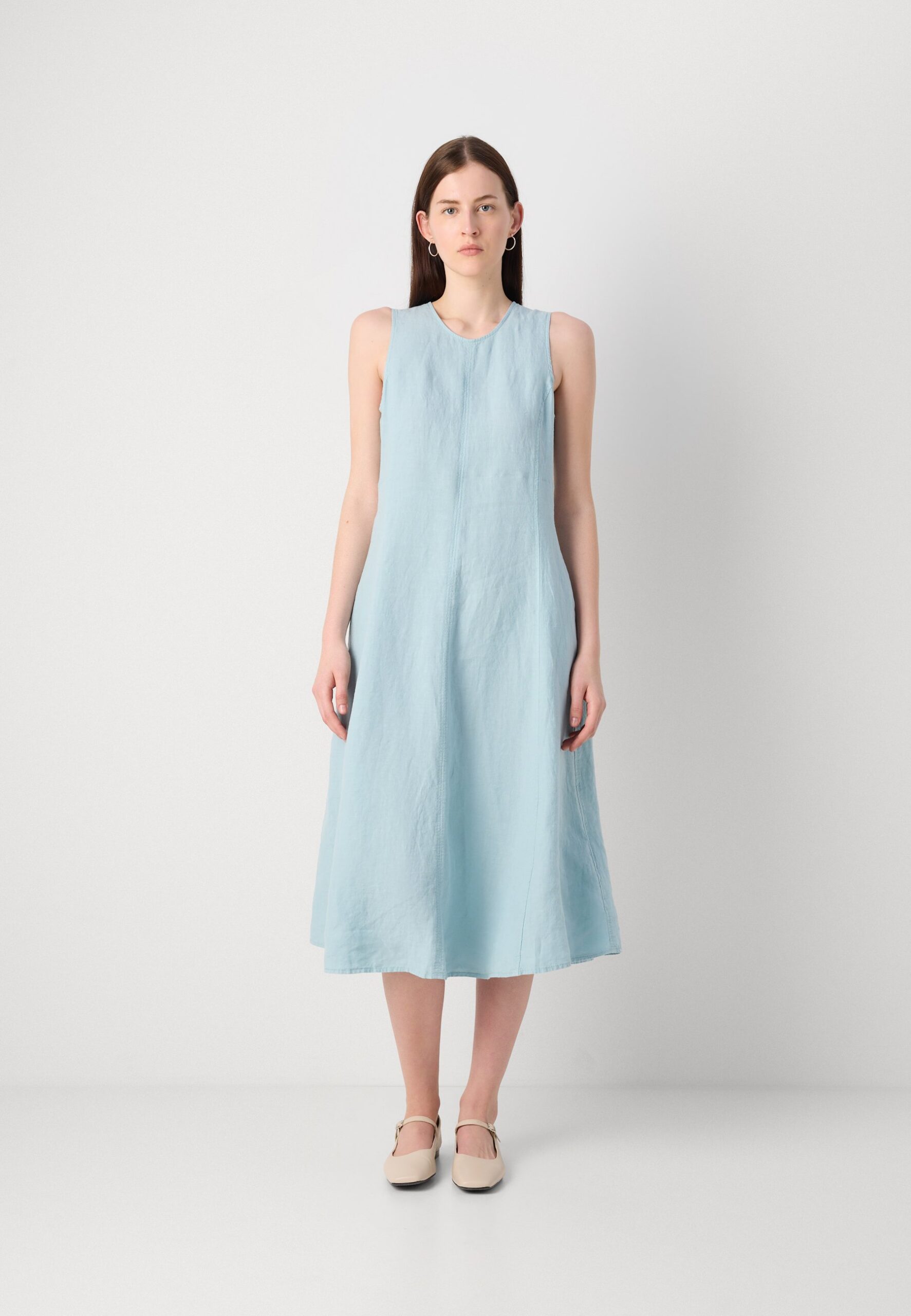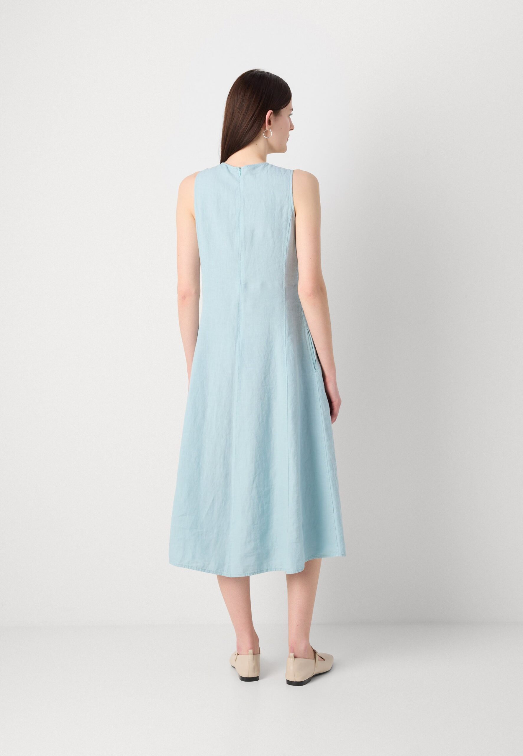 DRESS FEMININE SHAPE MIDI LENGTH CUTLINES – Day dress – pure teal