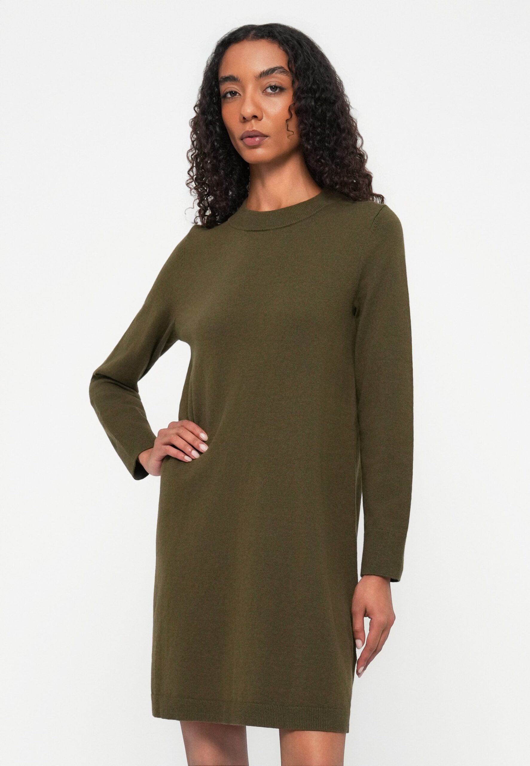 DRESS LONGSLEEVE CREW NECK – Jumper dress – dark green melange