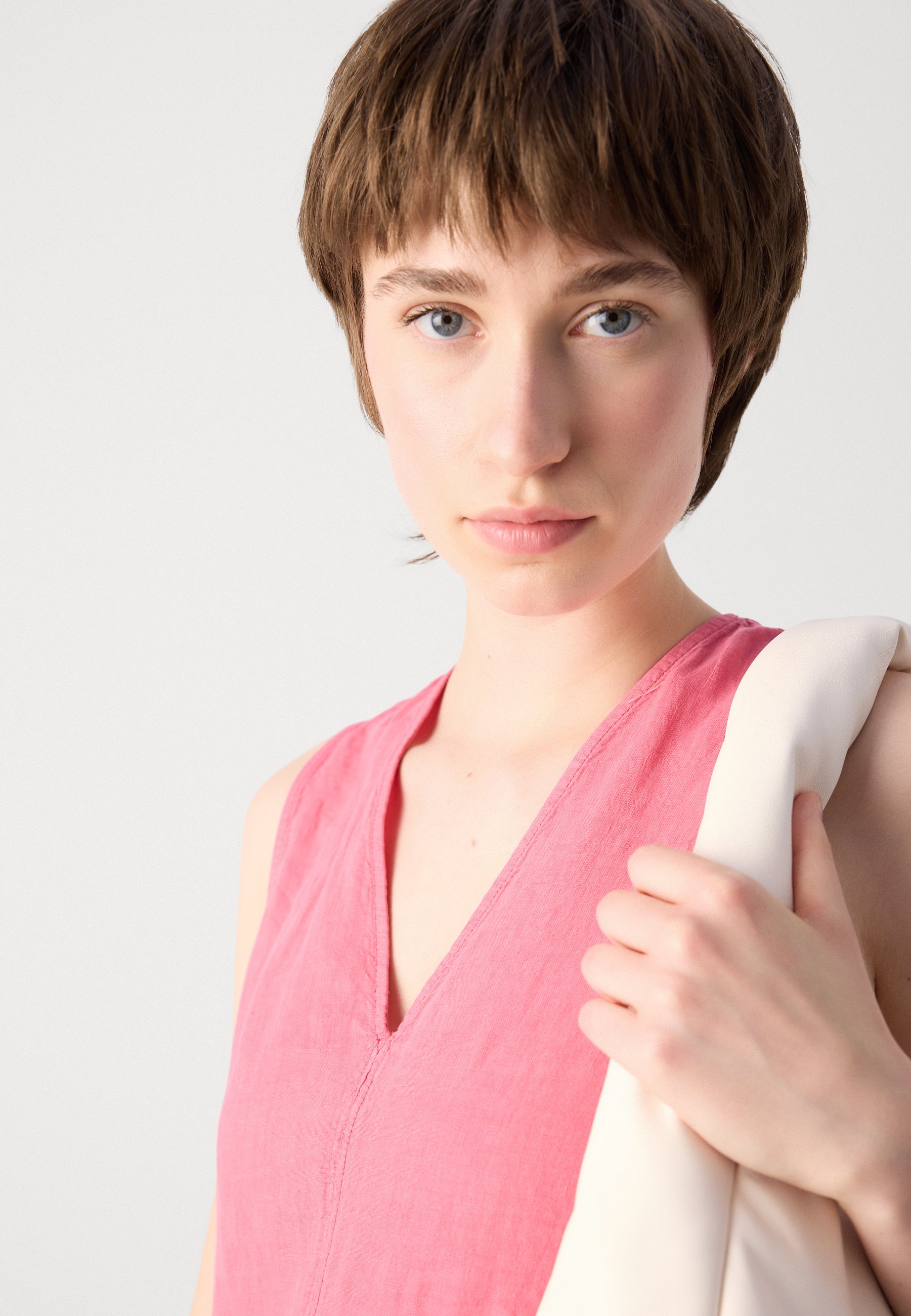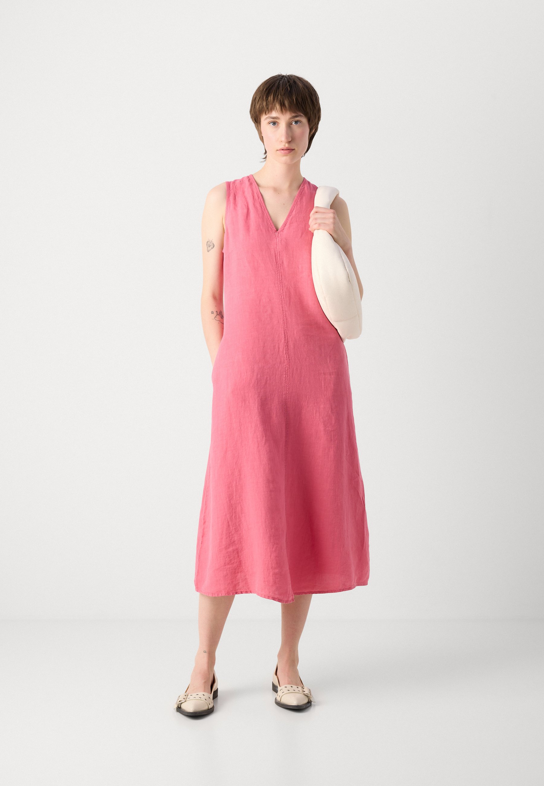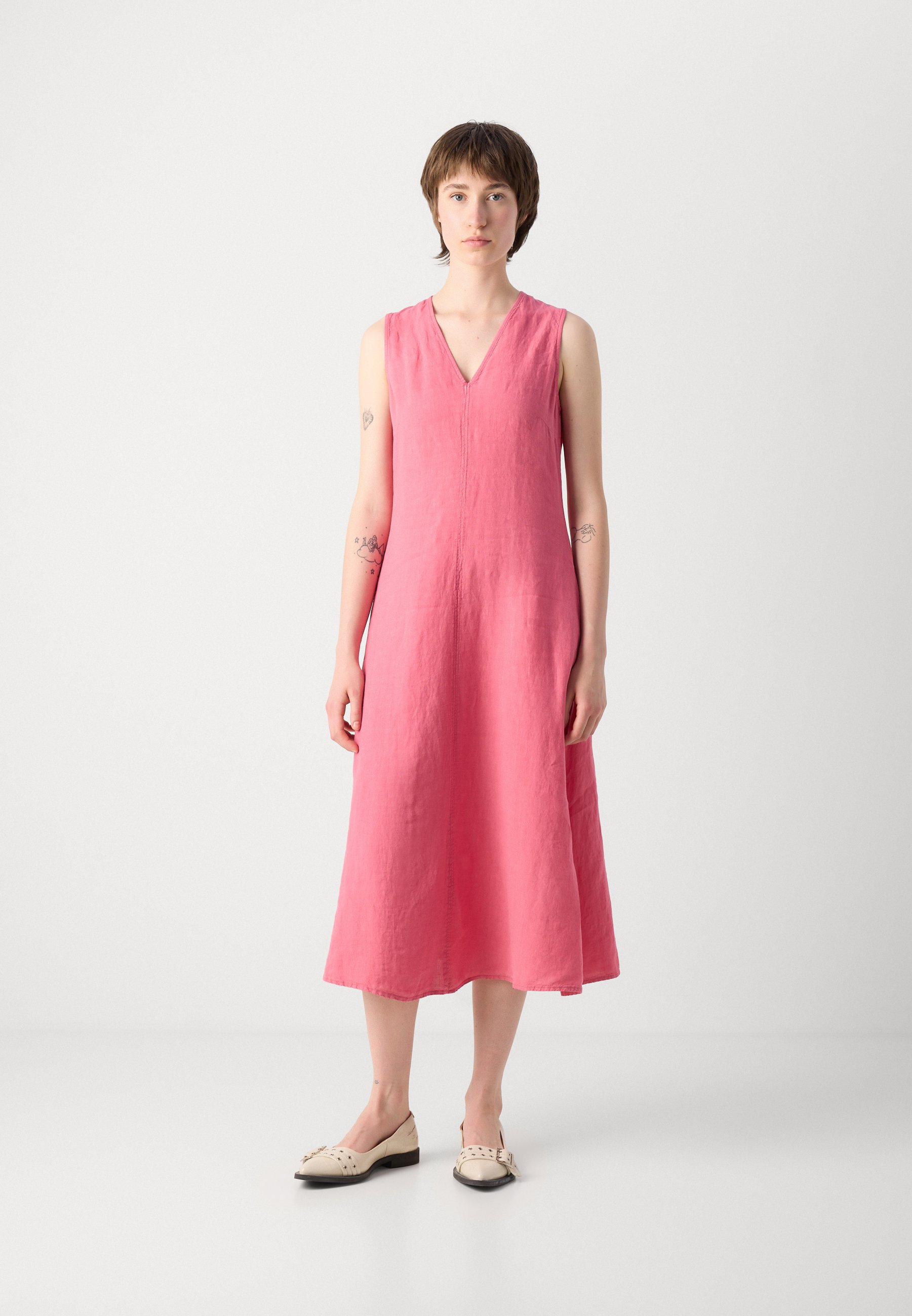 DRESS SLEEVELESS V NECK FIT AND FLARE SHAPE CUTLINES – Day dress – blushed pink