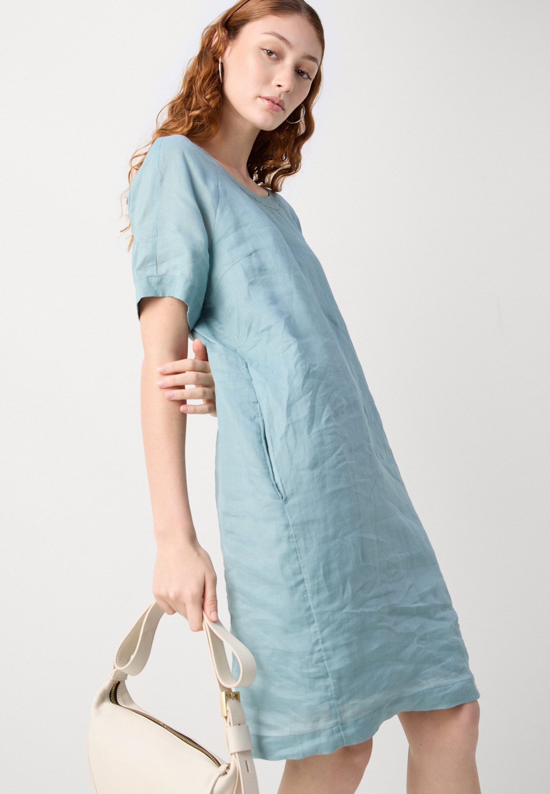 DRESS SPORTIV STYLE SLIGHTLY EGG SHAPED RAGLAN SLEEVE CONSTRUCTION POCKETS – Day dress – soft teal