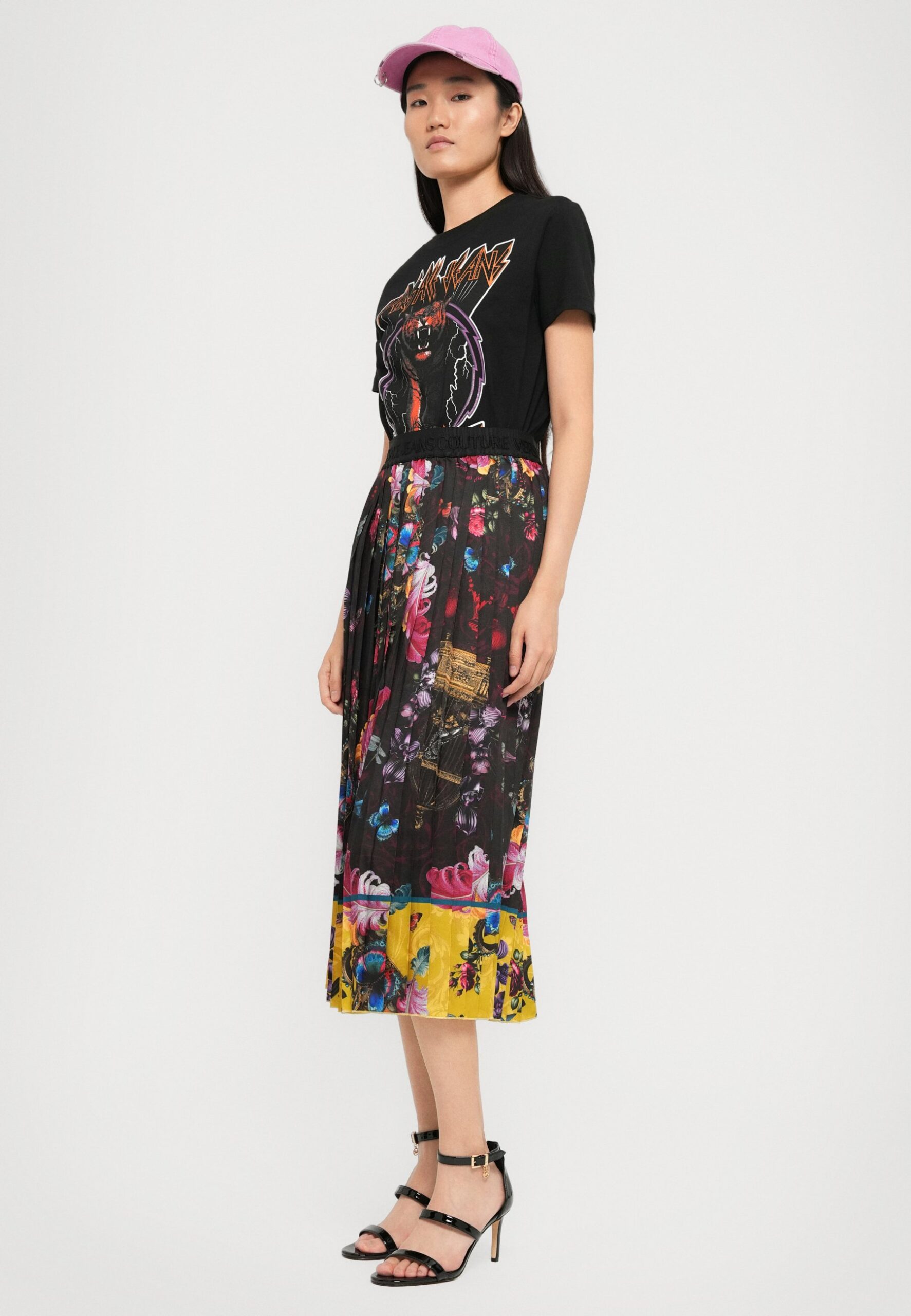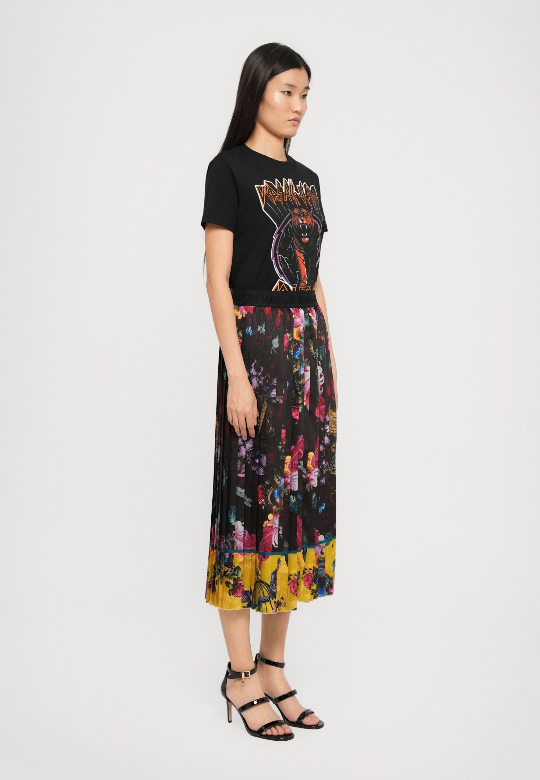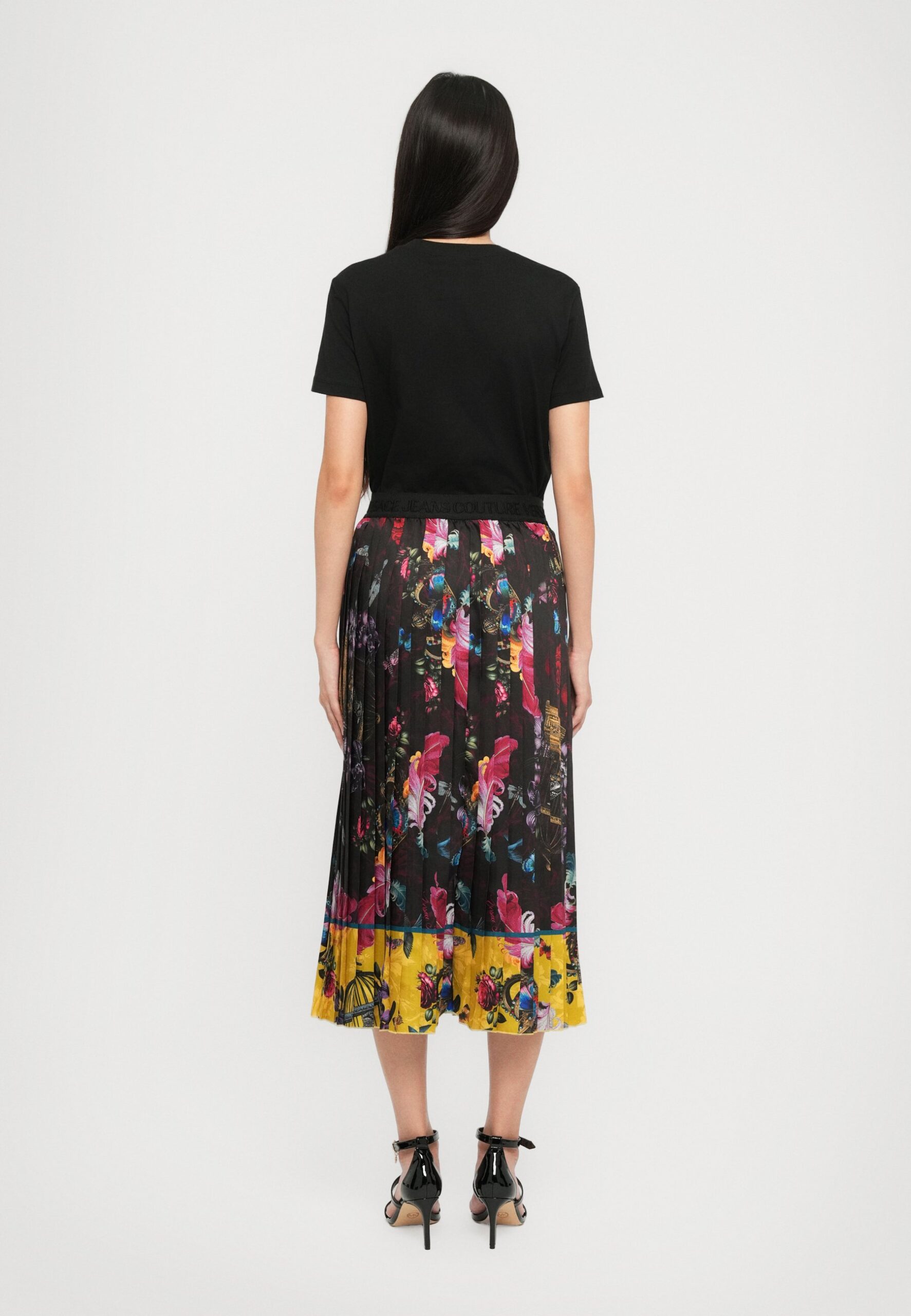ECO MIX BUCKLES – Pleated skirt – nero/chartreuse