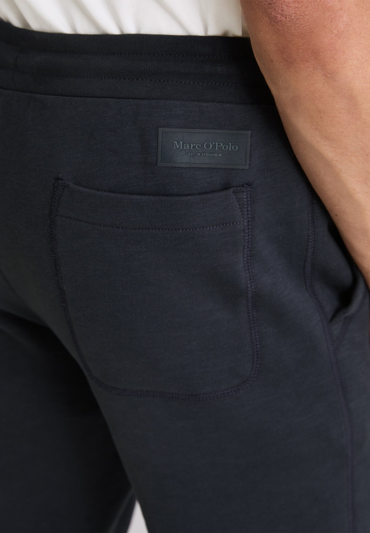 ELASTIC BOTTOM CUFFS FLATLOCK TOPSTITCHING BADGE – Tracksuit bottoms – dark navy