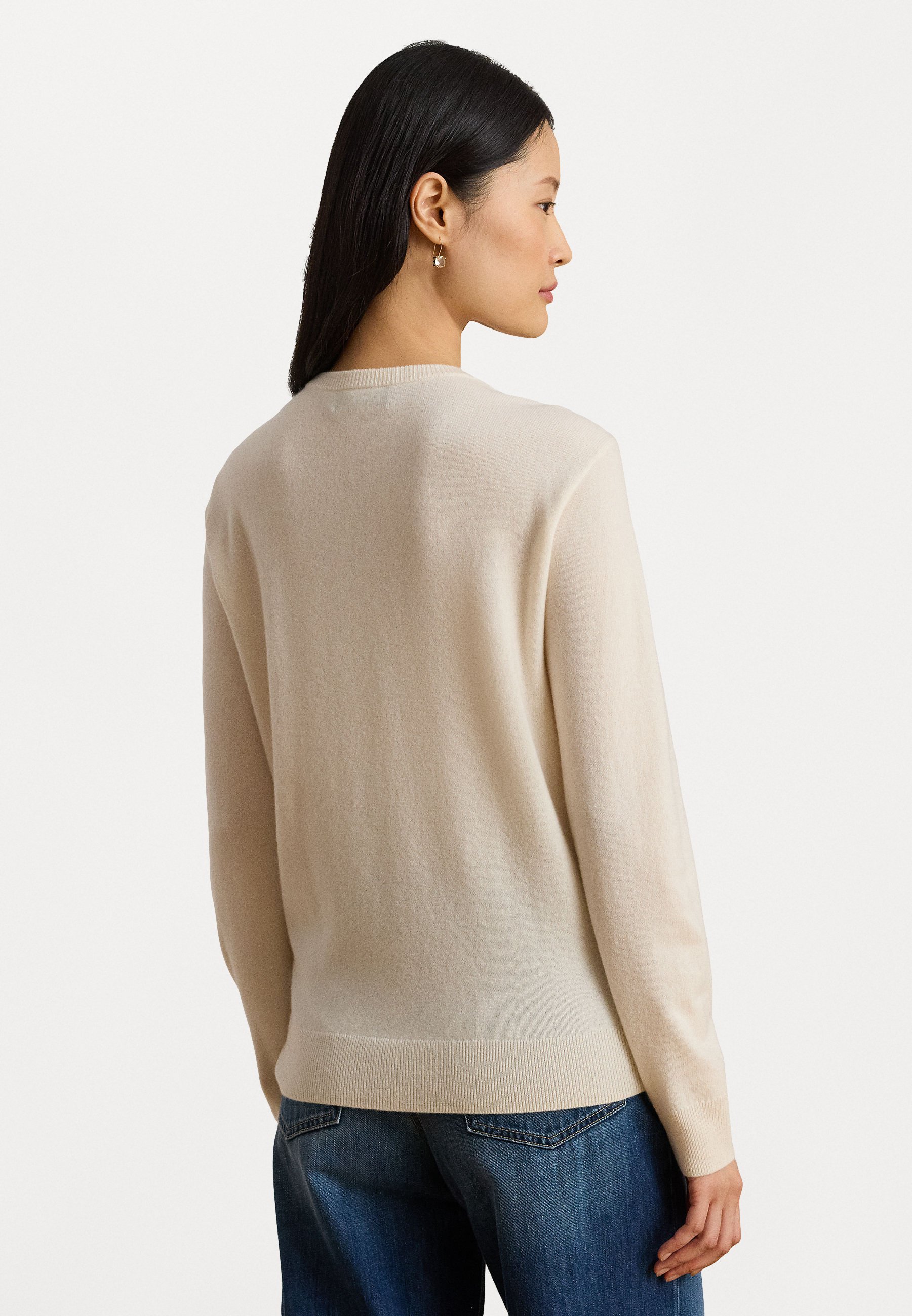 EMBROIDERED CASHMERE CREWNECK SWEATER – Jumper – mascarpone cream