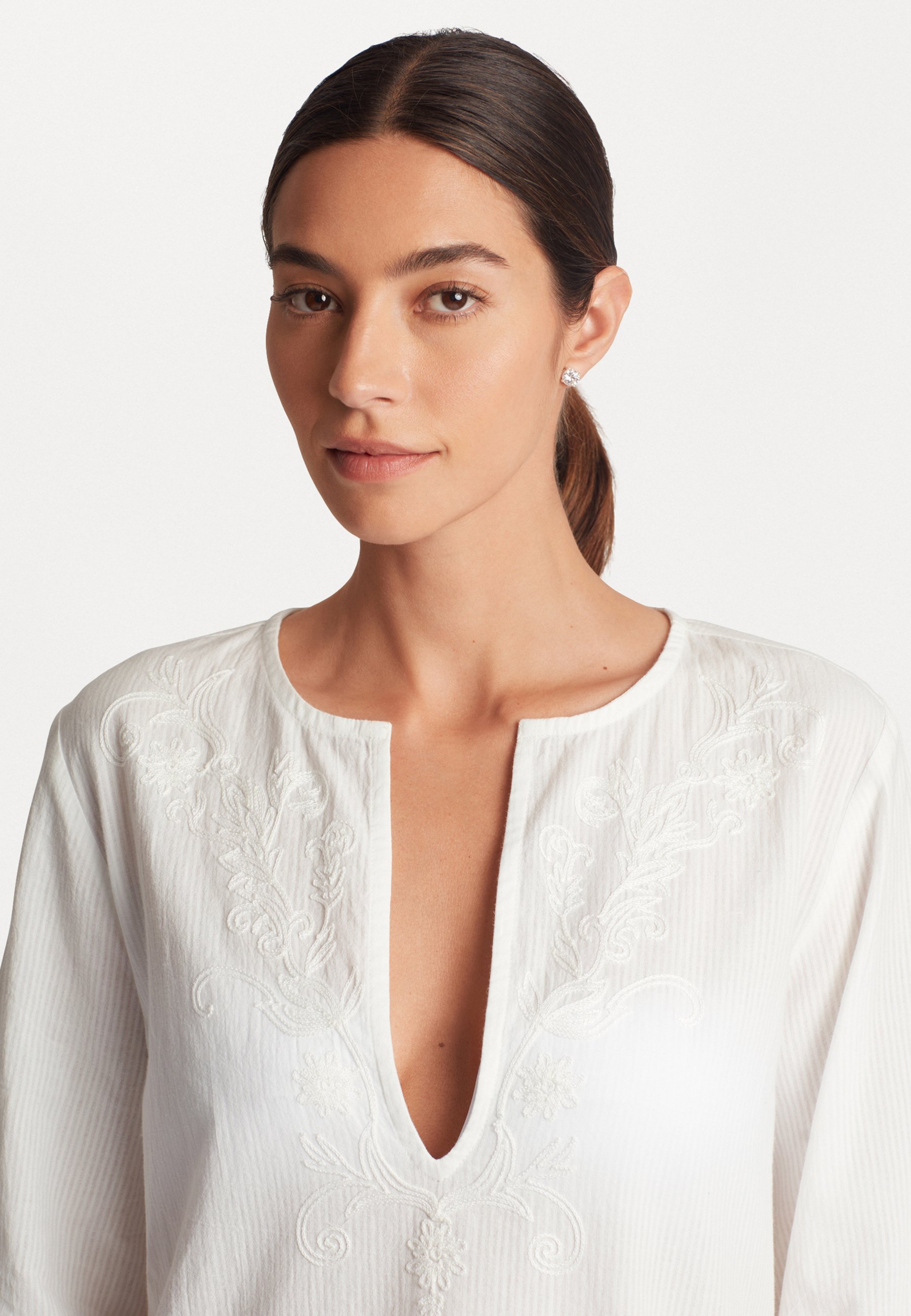 EMBROIDERED CHAINSTITCH TUNIC – Beach accessory – white
