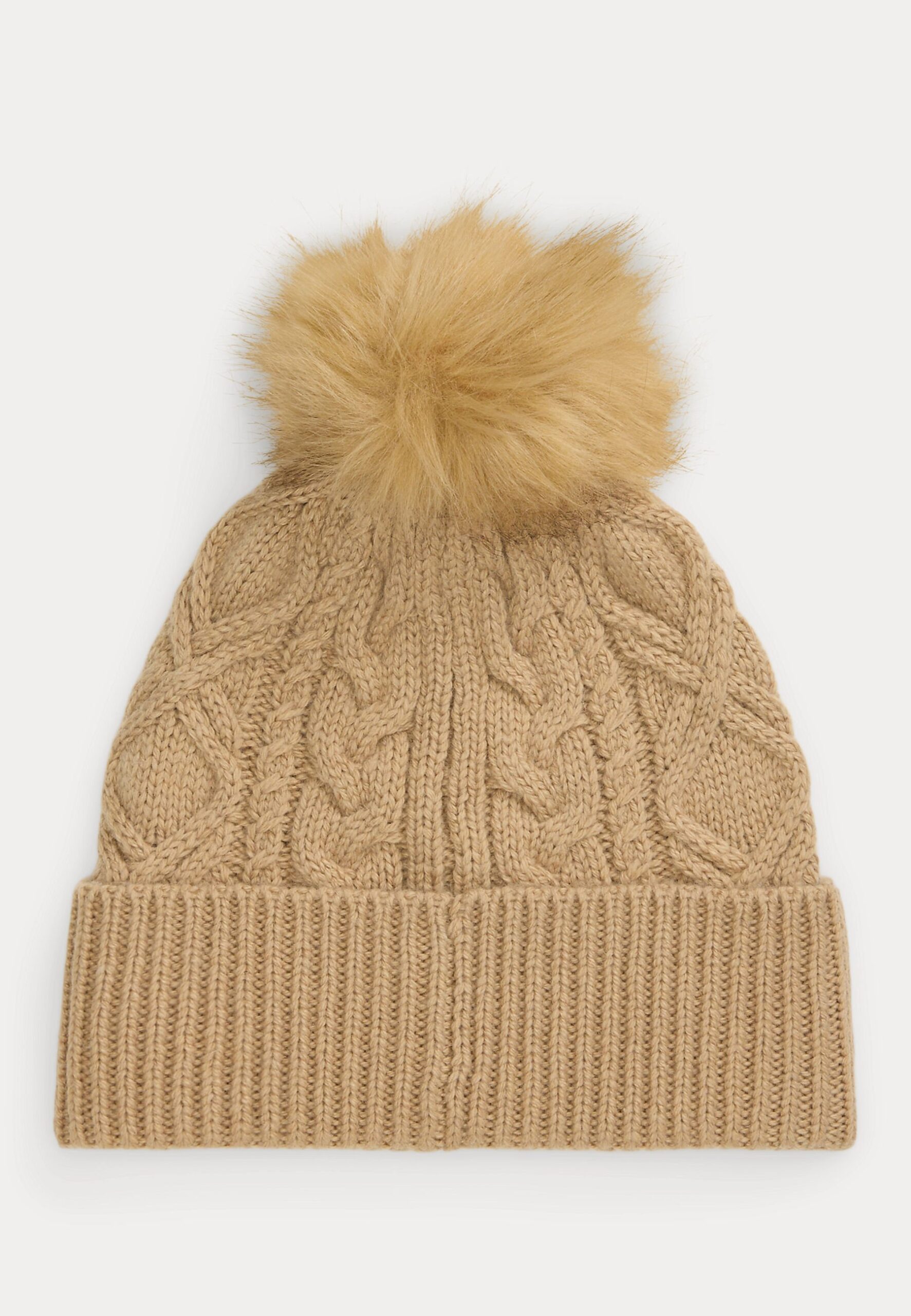 EMBROIDERED POM POM CABLE KNIT BEANIE – Beanie – birch tan