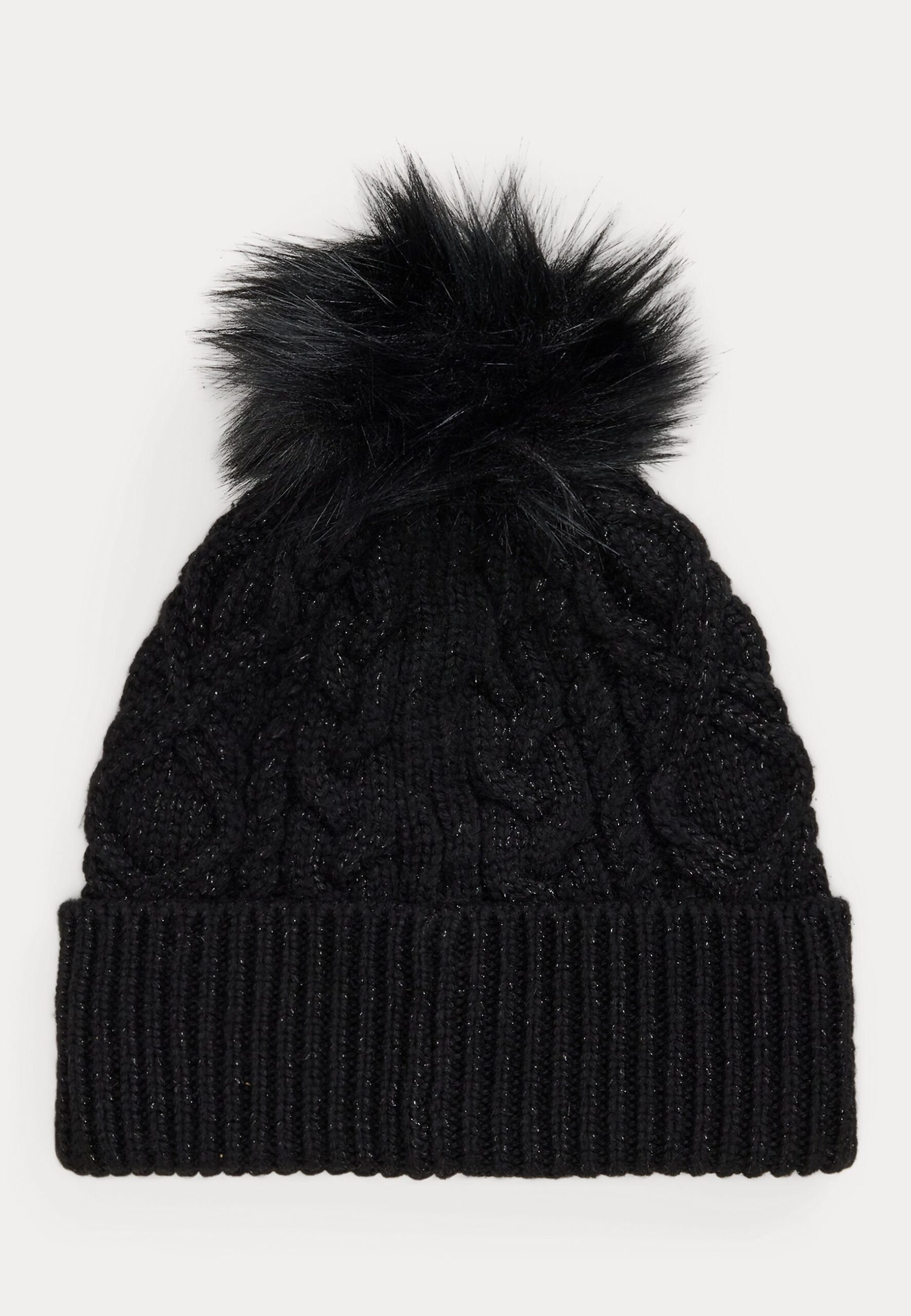 EMBROIDERED POM-POM CABLE-KNIT BEANIE – Beanie – black/black