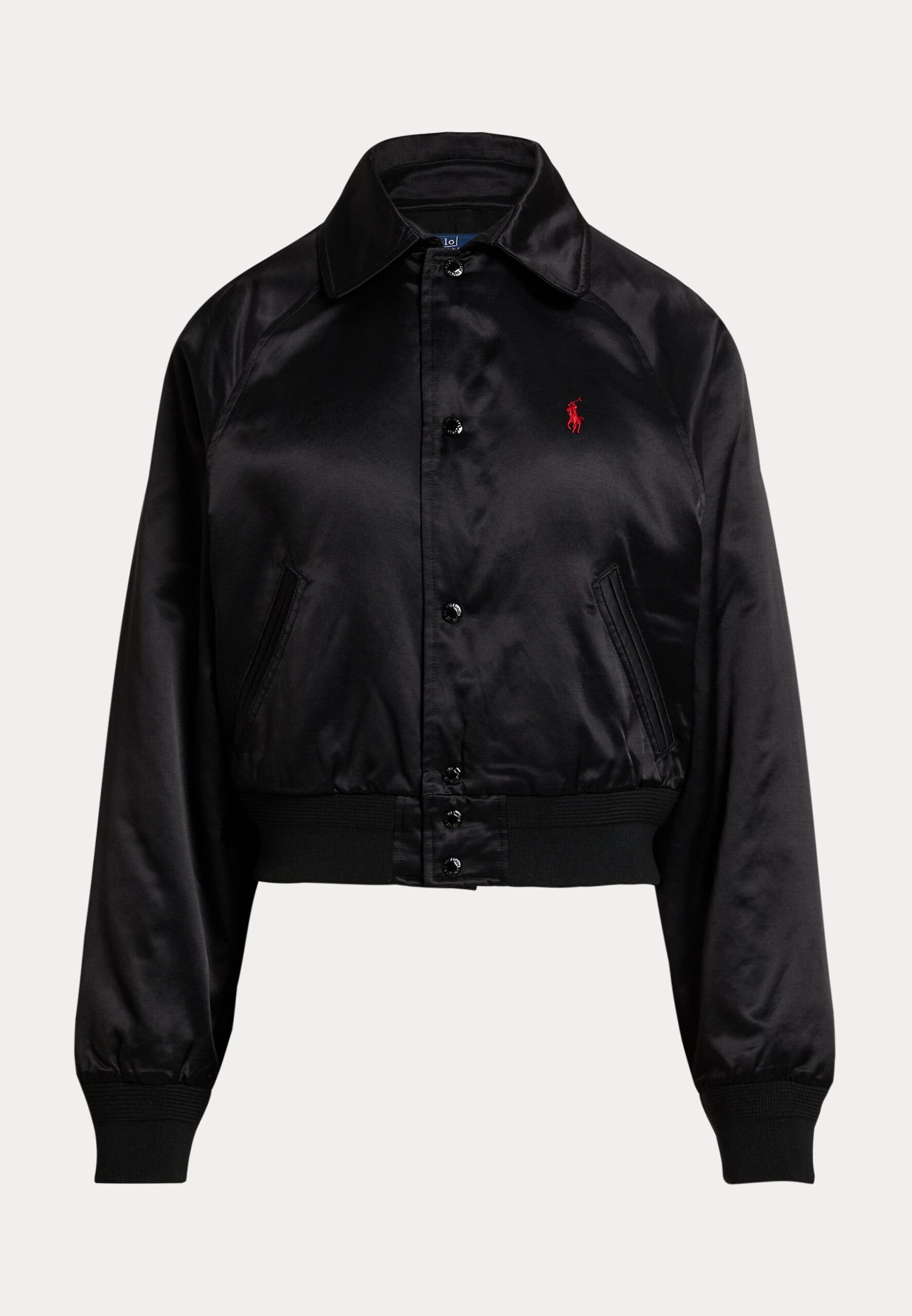 EMBROIDERED SATIN POLO PLAYER JACKET – Bomber Jacket – black