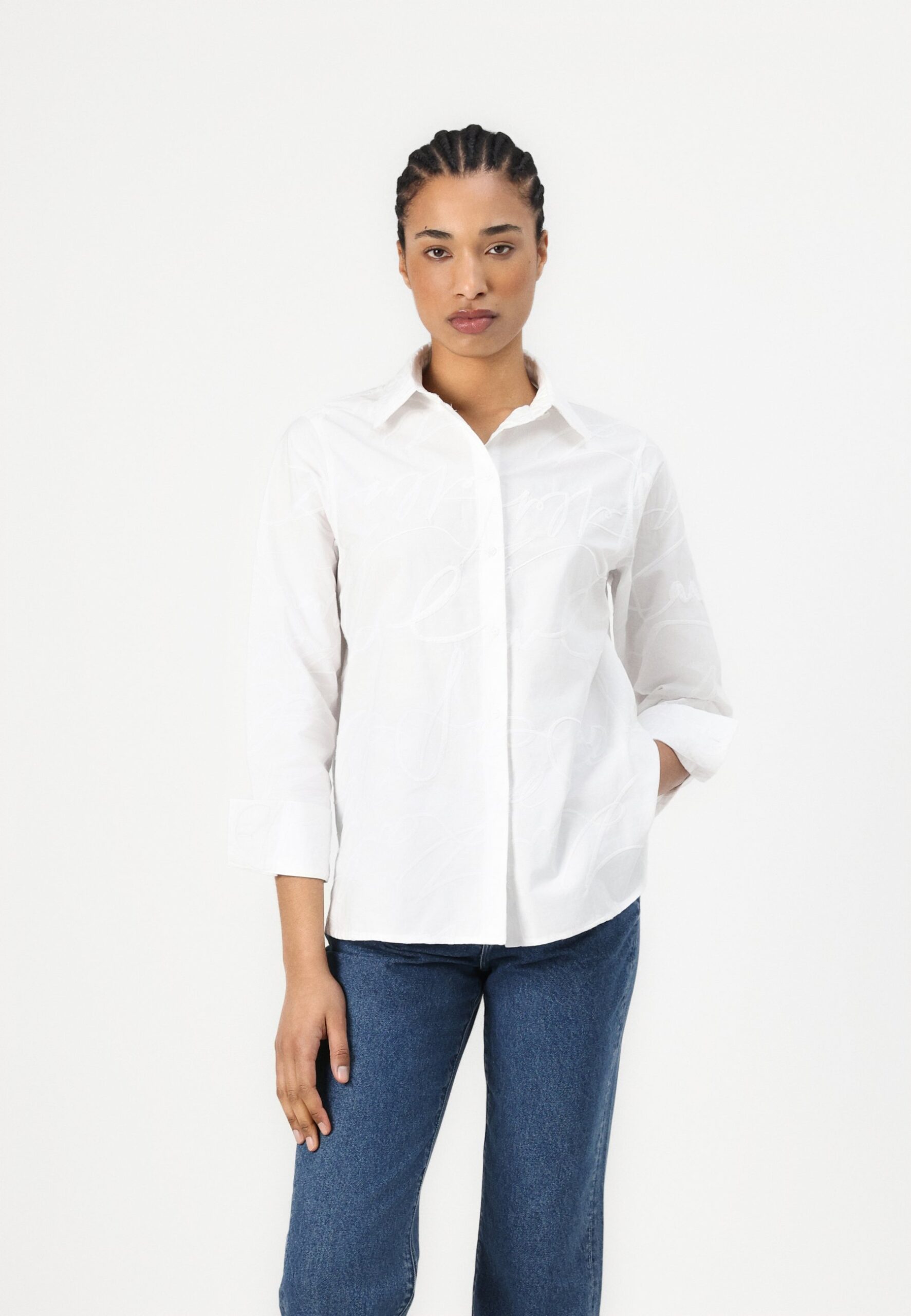 EMBROIDERY SHIRT – Button-down blouse – white