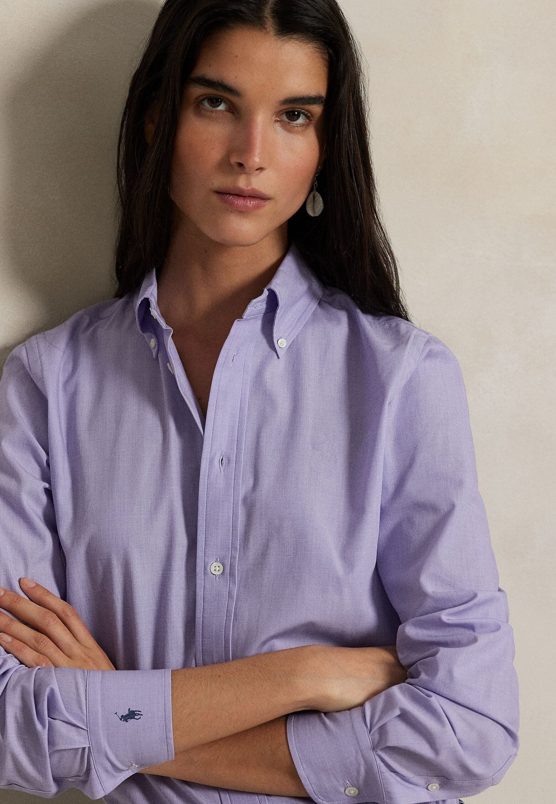 END-ON-END STRETCH SLIM FIT COTTON SHIRT – Button-down blouse – medium purple