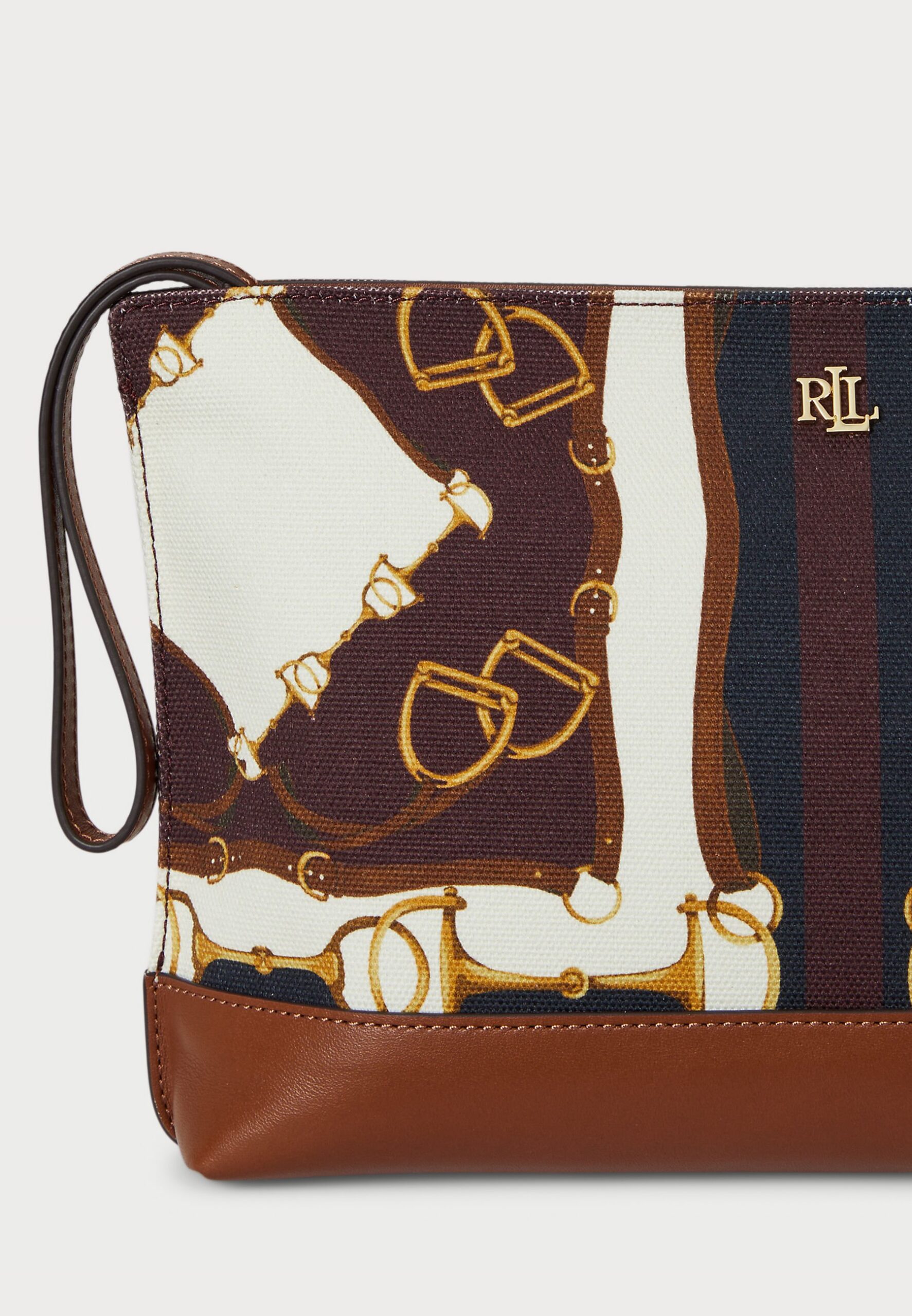 EQUESTRIAN-PRINT CANVAS LARGE POUCH – Wash bag – equestrian scarf print/lrn tan