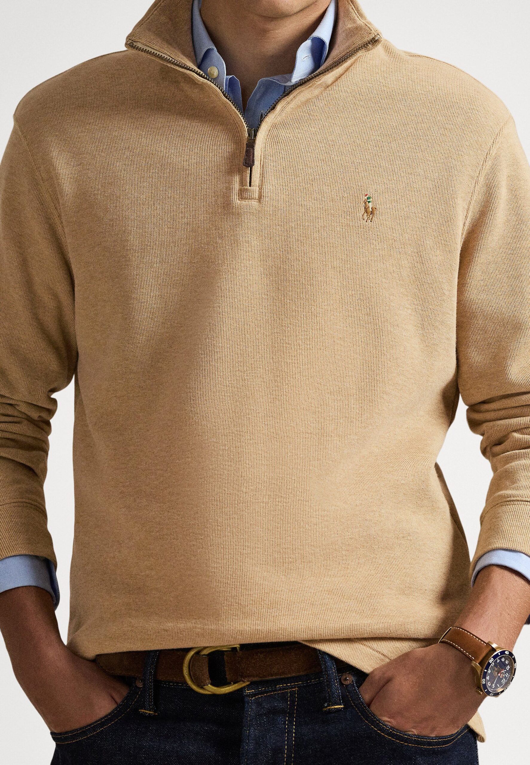 ESTATE-RIB QUARTER-ZIP PULLOVER – Jumper – classic camel heather