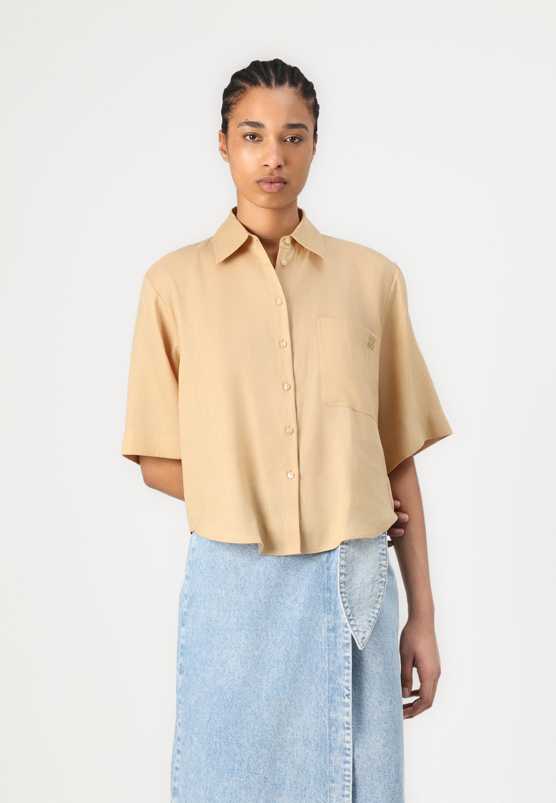 EVONA – Button-down blouse – open beige