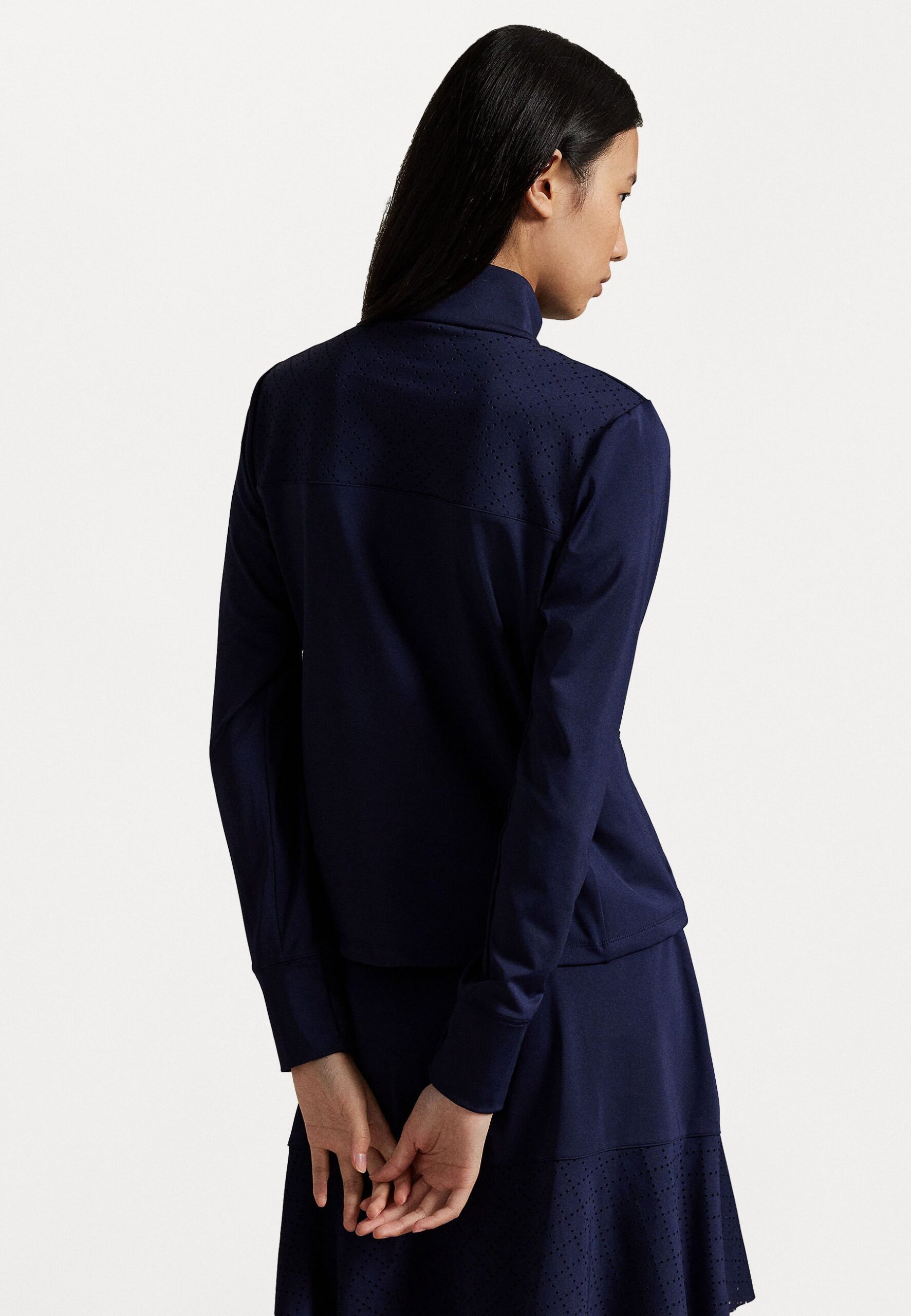EYELET-PANEL INTERLOCK QUARTER-ZIP – Long sleeved top – refined navy