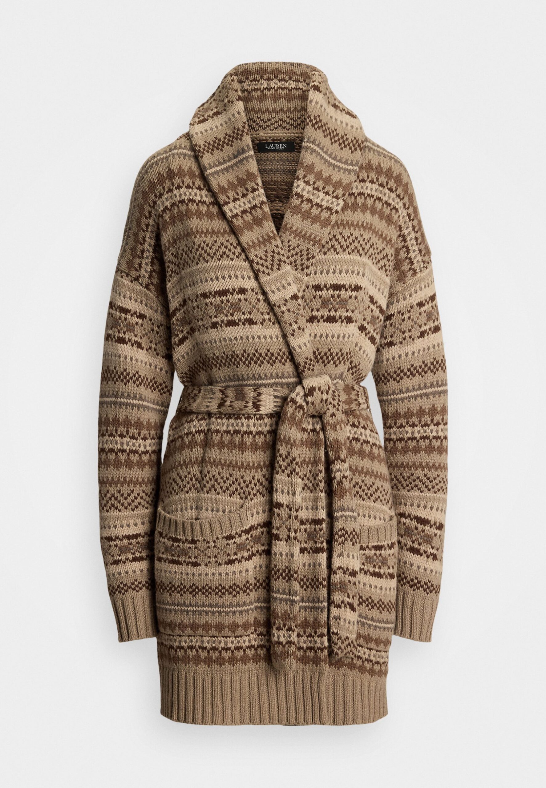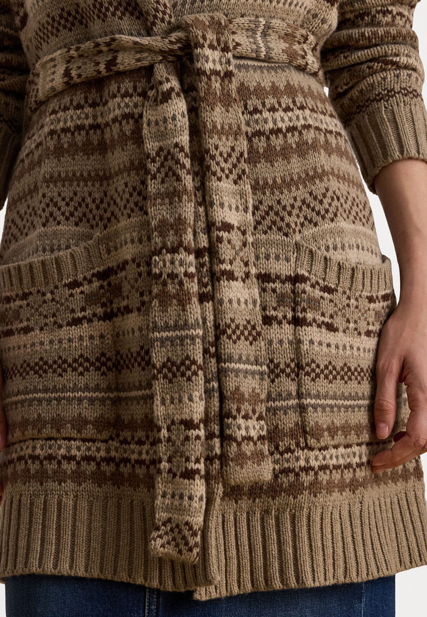FAIR ISLE BELTED WOOL-BLEND CARDIGAN – Cardigan – Brown
