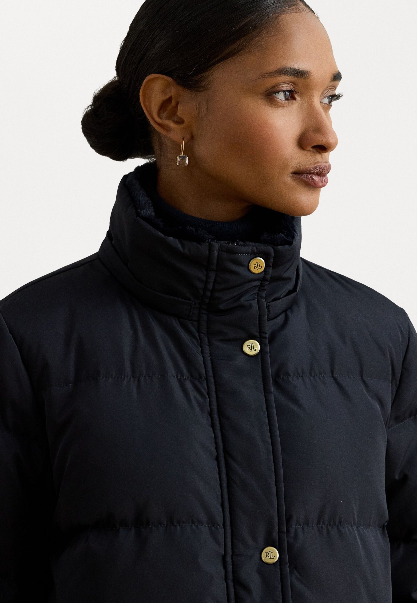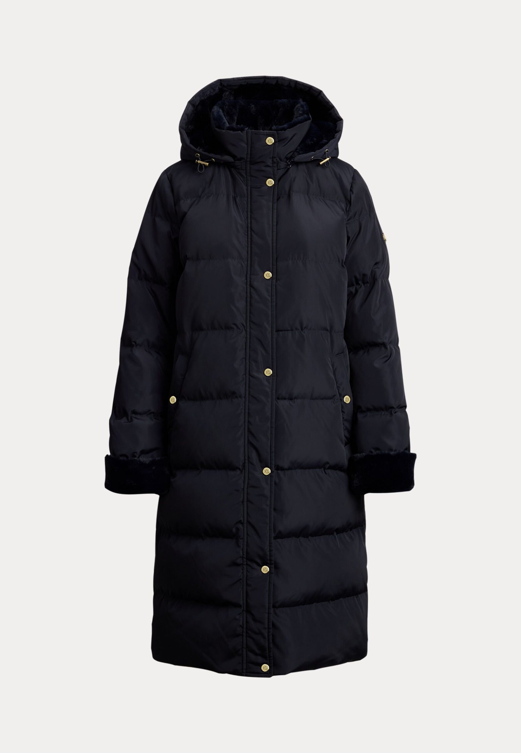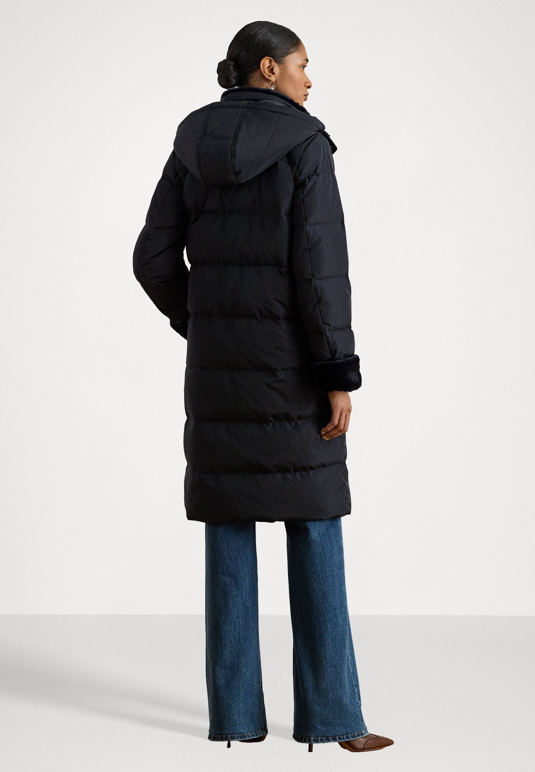 FAUX-FUR-TRIM HOODED DOWN COAT – Down coat – dark navy