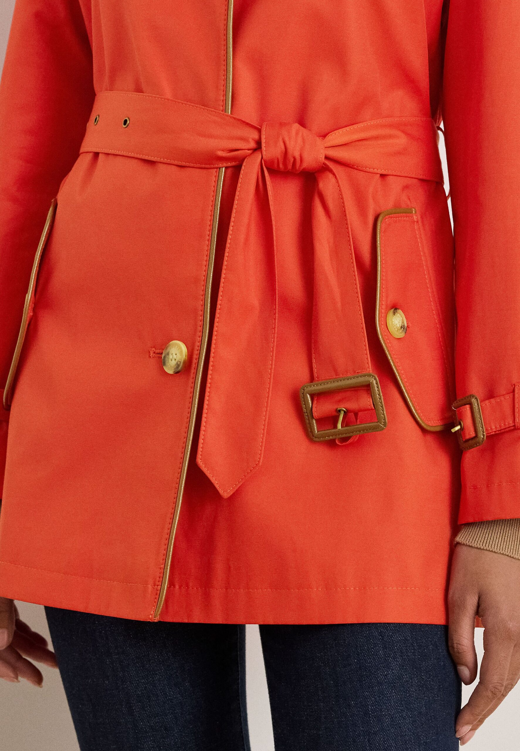 FAUX LEATHER TRIM TRENCH COAT – Trenchcoat – vail orange