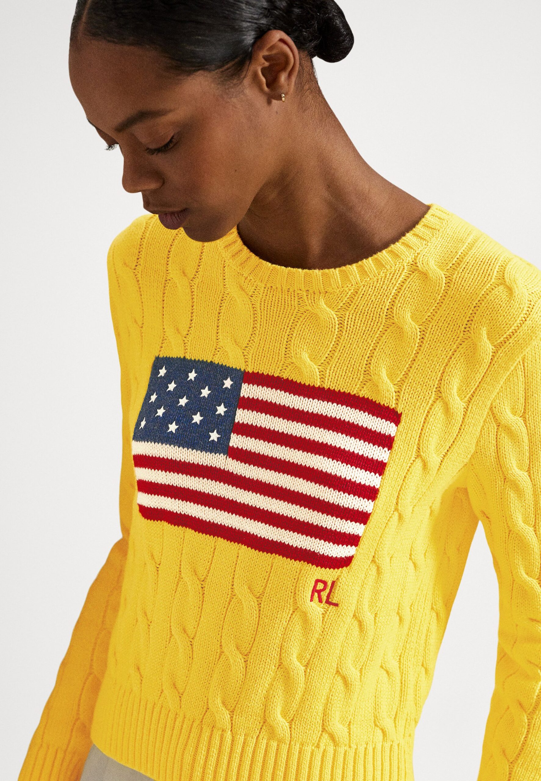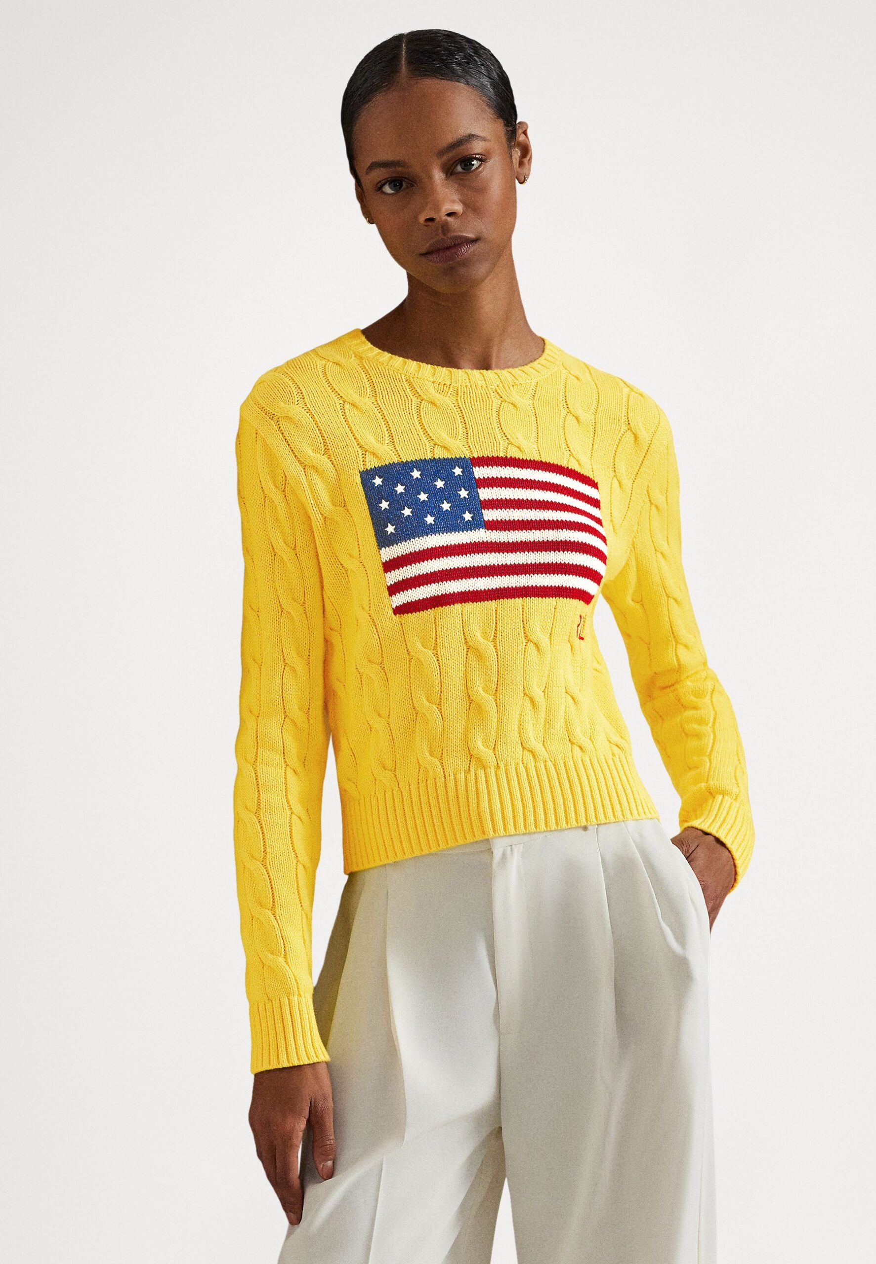 FLAG SHRUNKEN CABLE COTTON SWEATER – Jumper – lemon crush