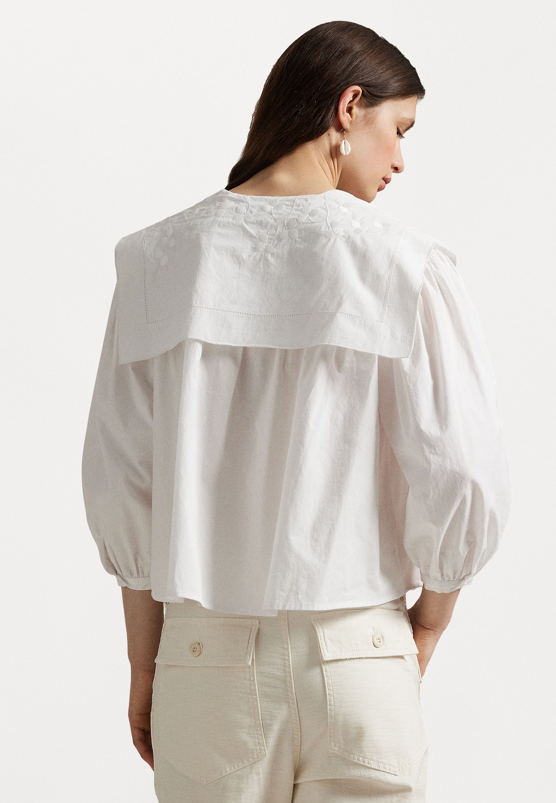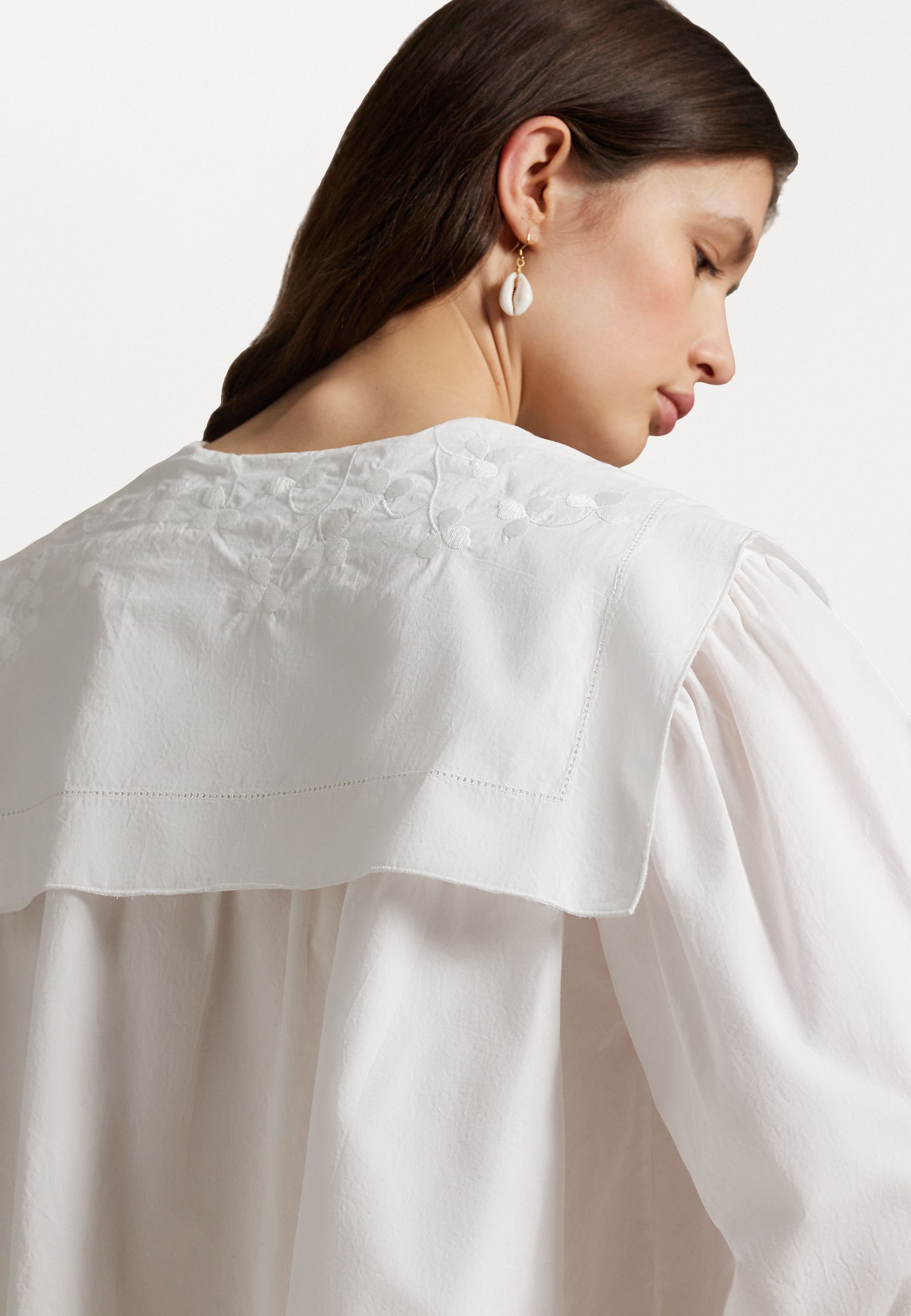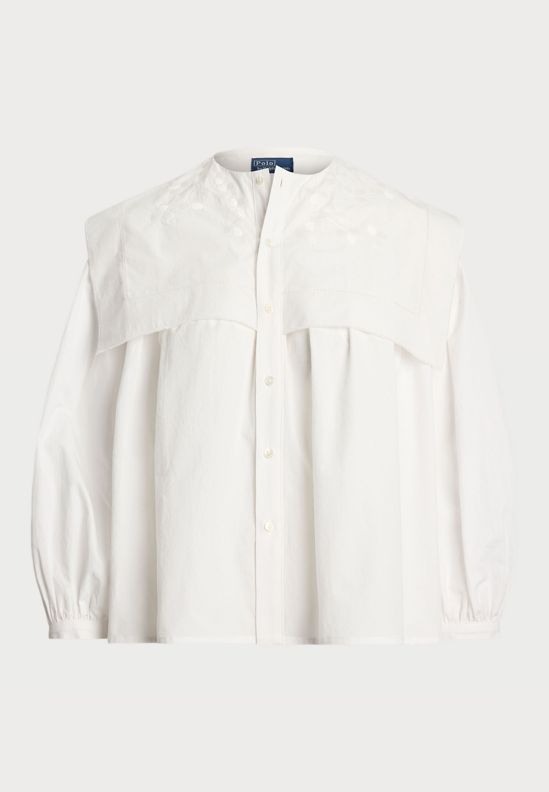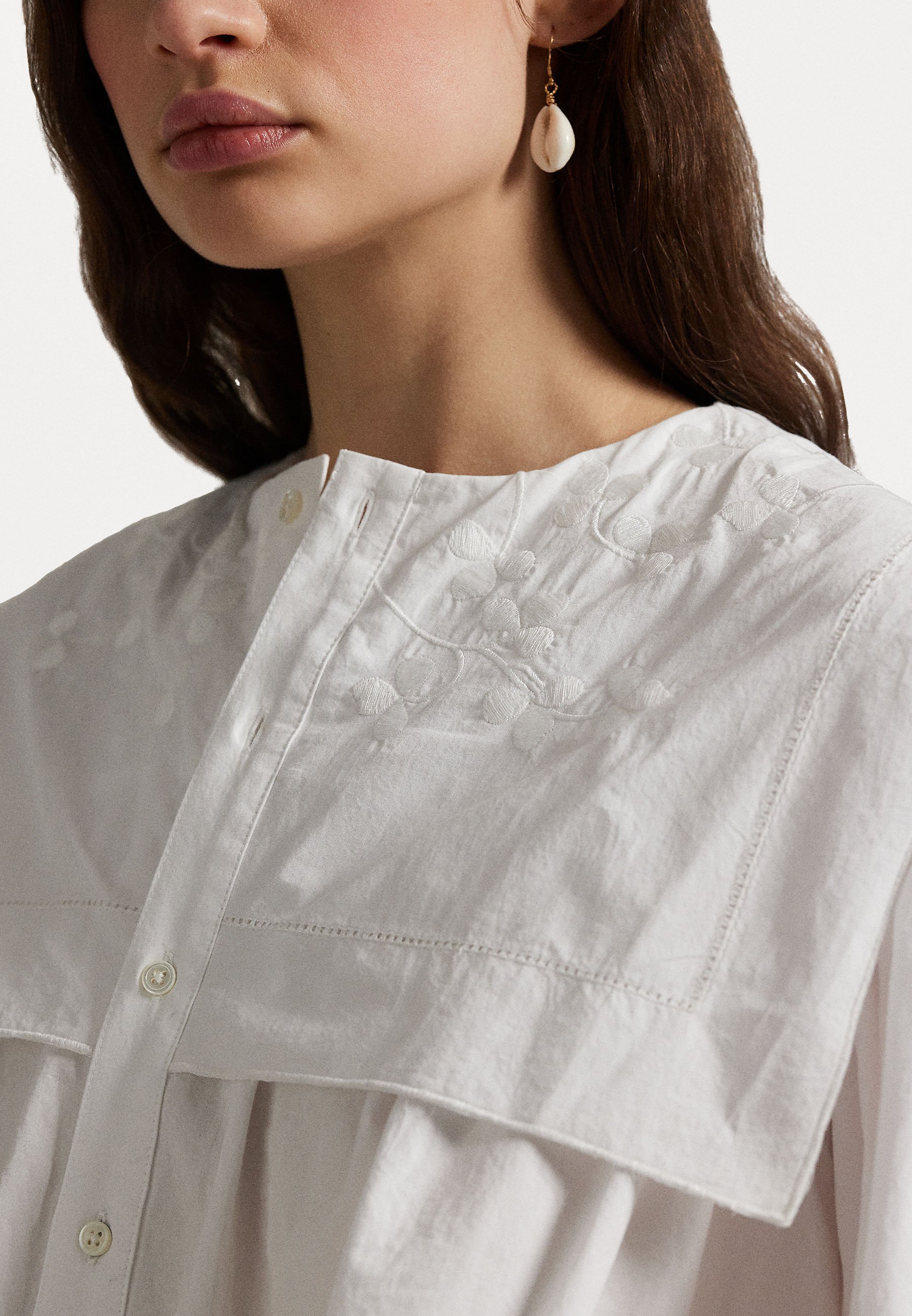 FLAPPED BIB COTTON POPLIN SHIRT – Button-down blouse – white