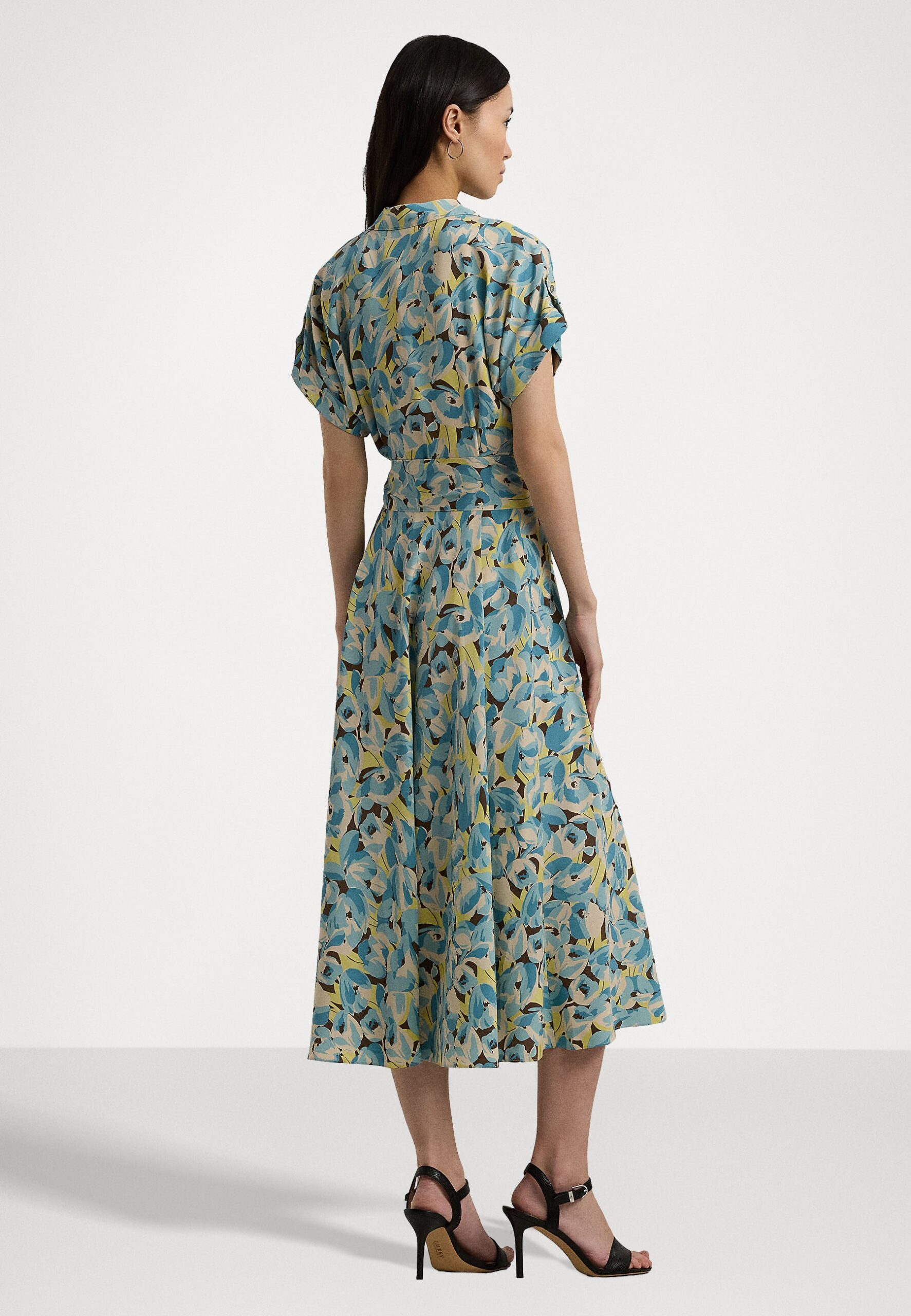 FLORAL BELTED CREPE DRESS – Day dress – cream multi