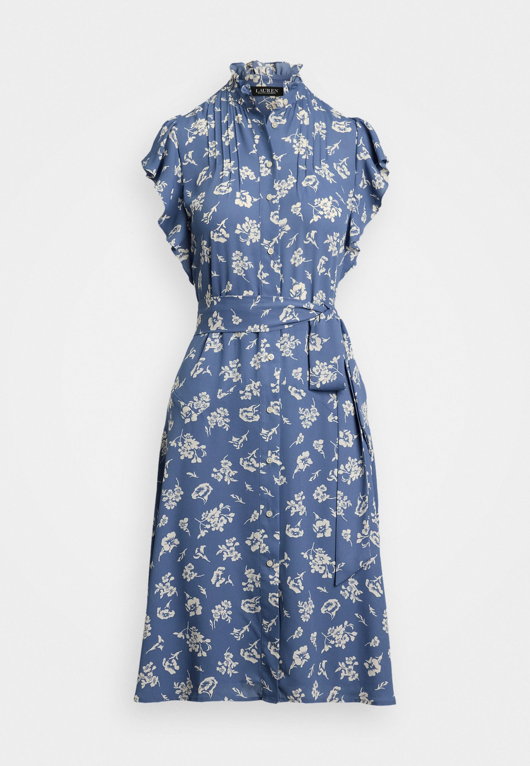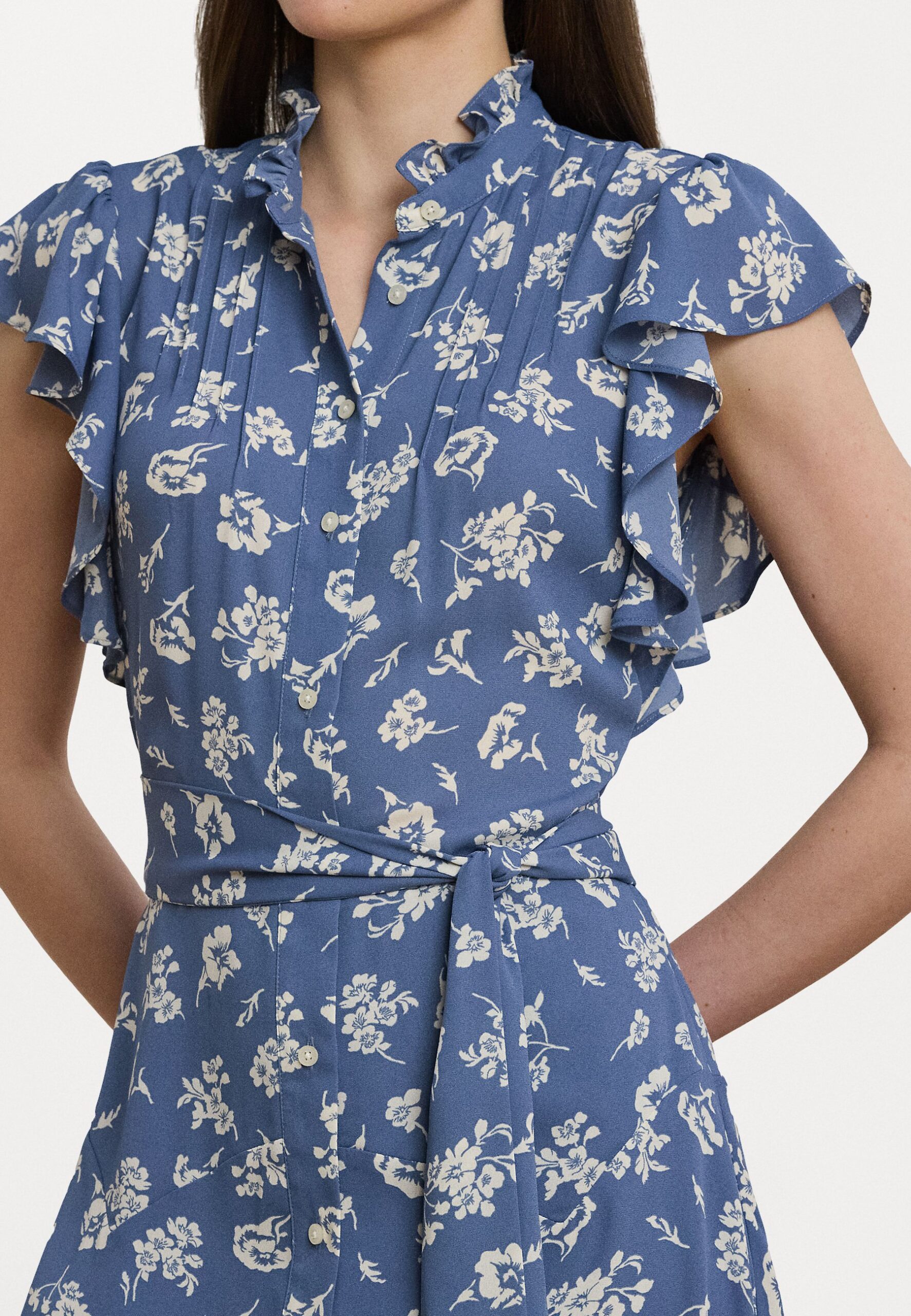 Floral Belted Georgette Shirtdress – Day dress – blue/white