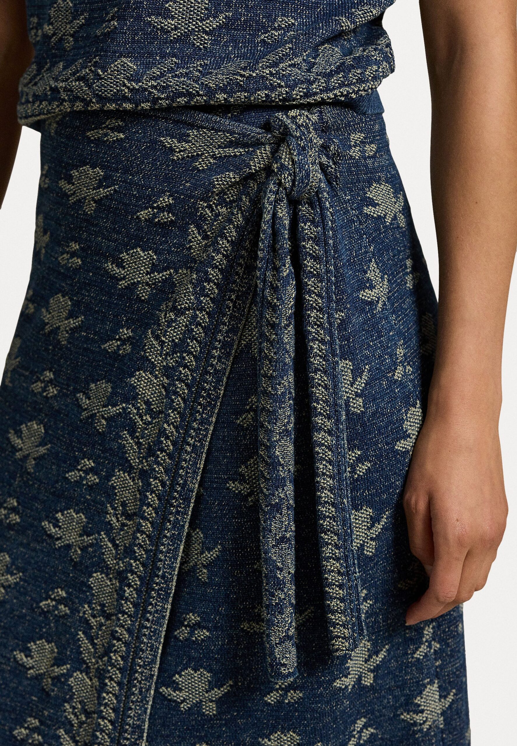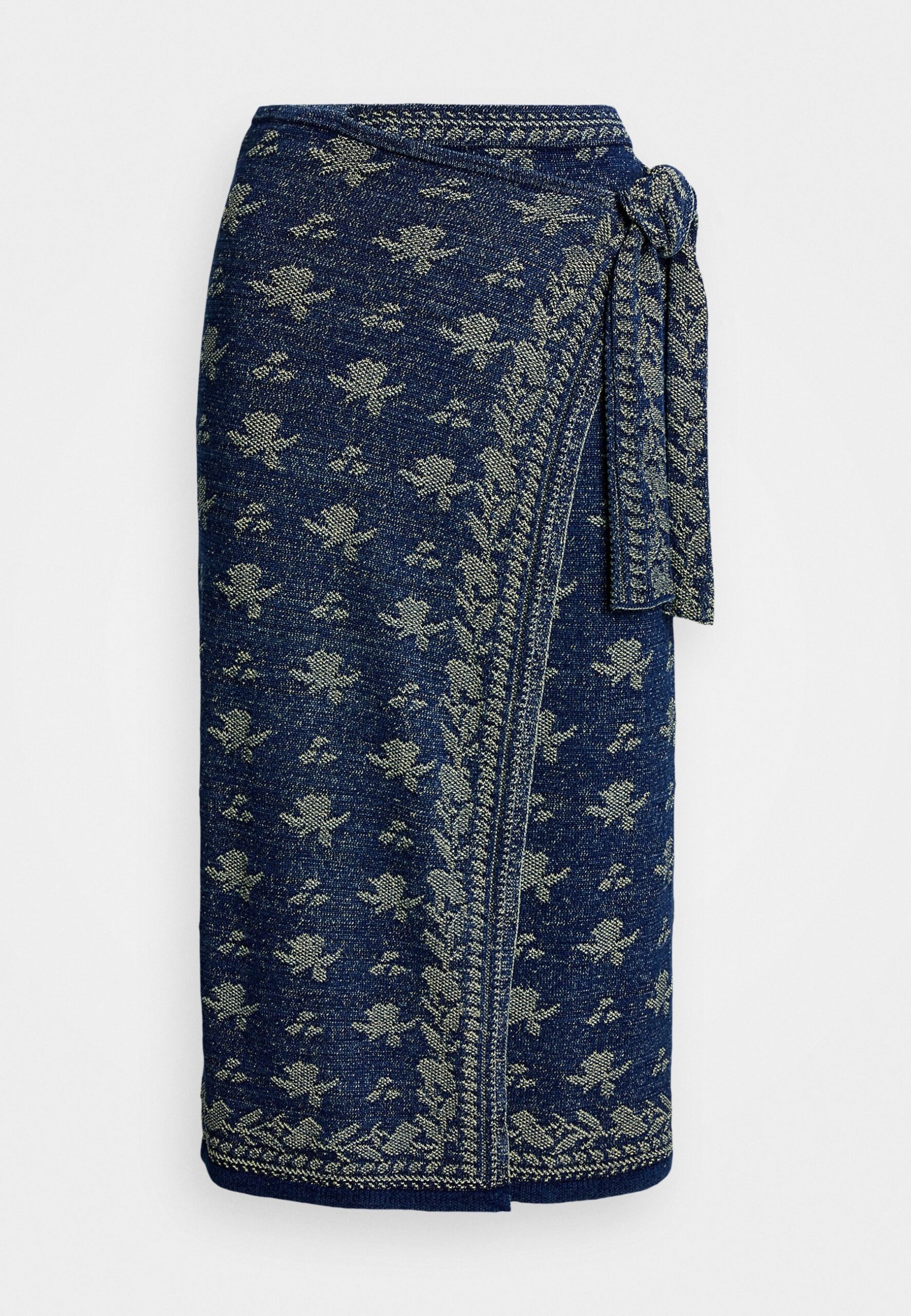FLORAL KNIT COTTON WRAP SKIRT – A-line skirt – dark indigo