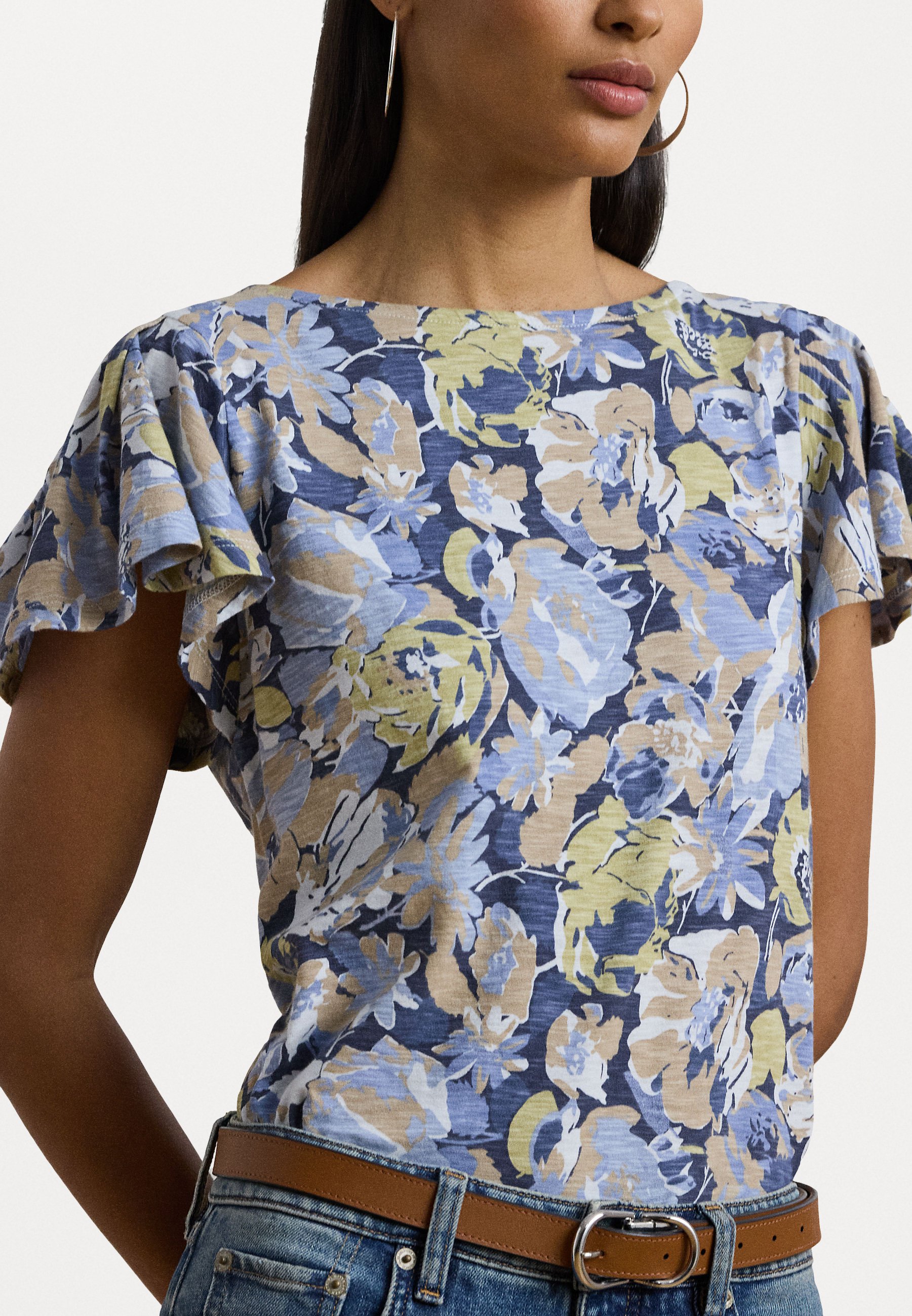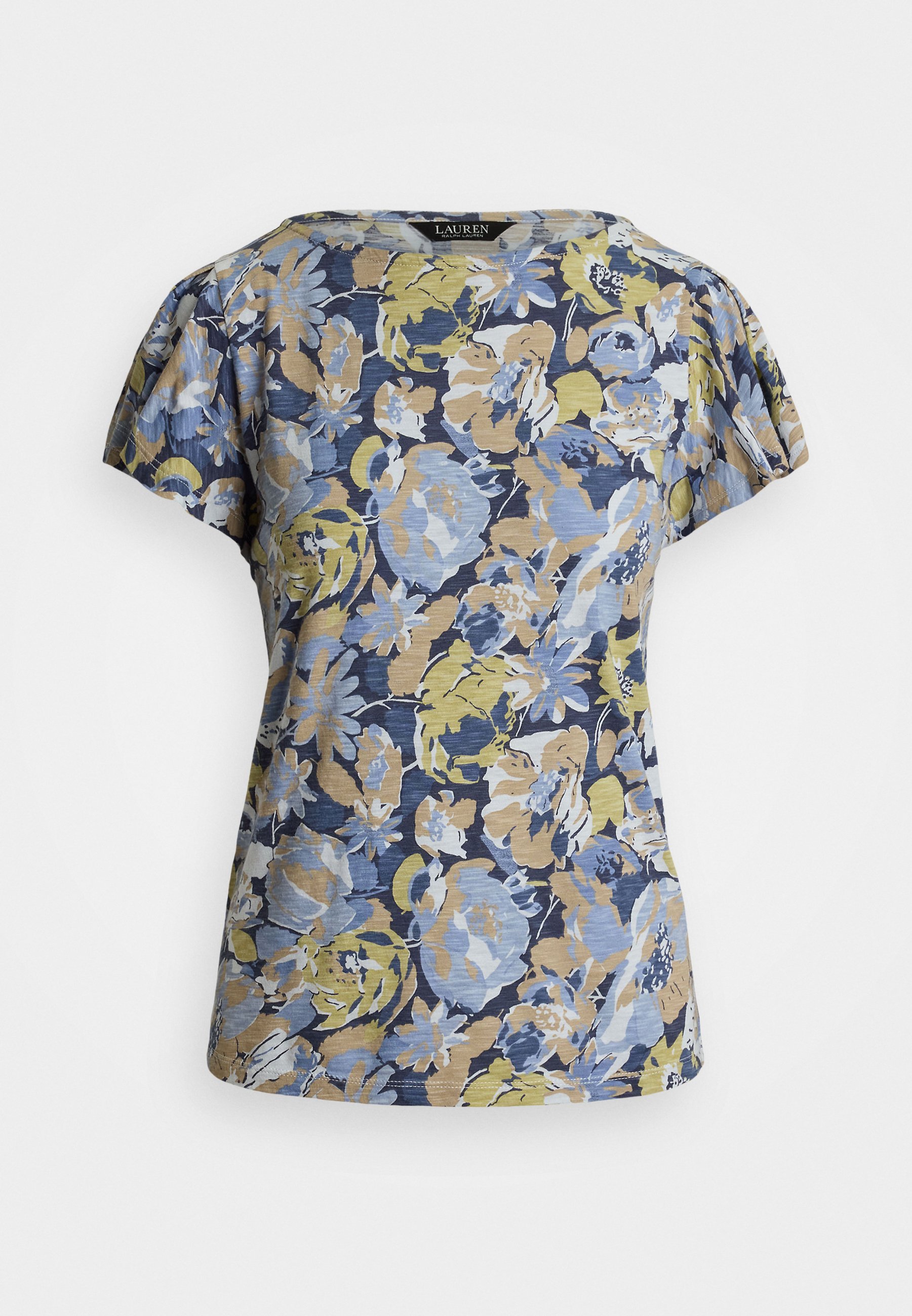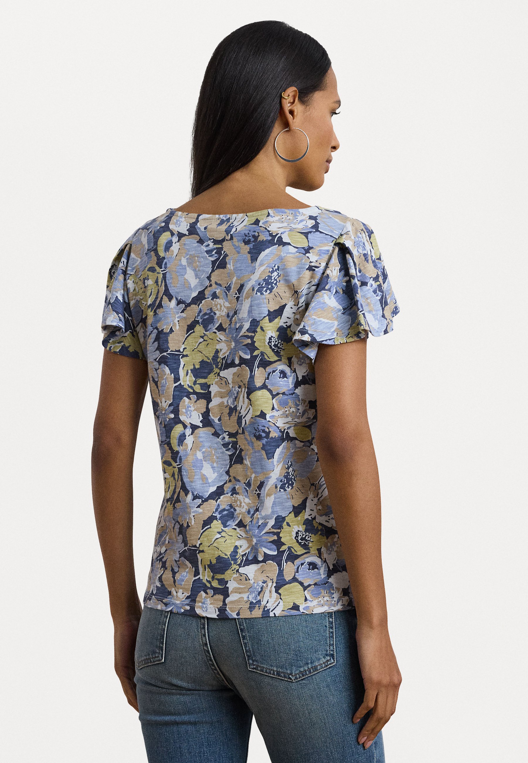 FLORAL SLUB JERSEY FLUTTER SLEEVE TOP – Print T-shirt – blue/multi-colored
