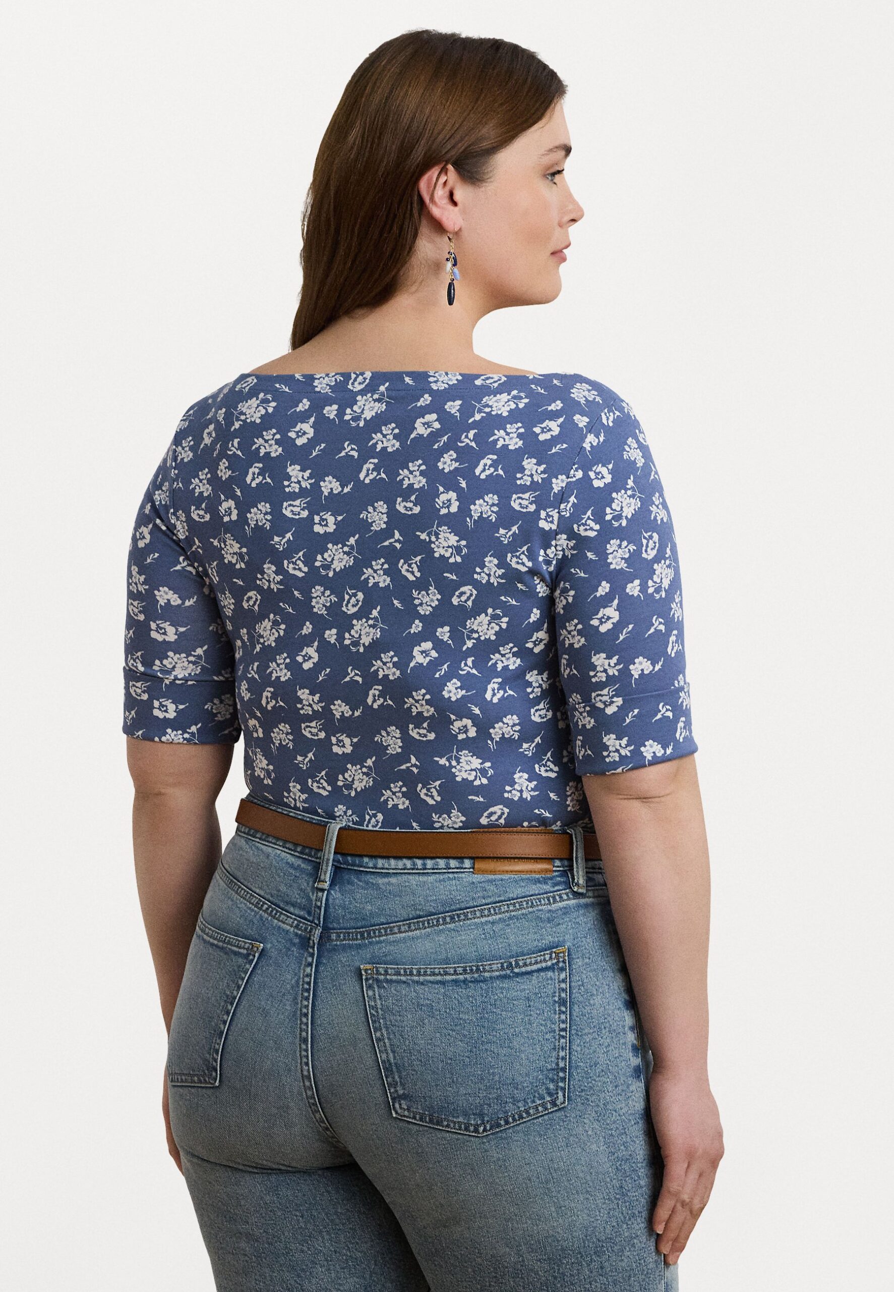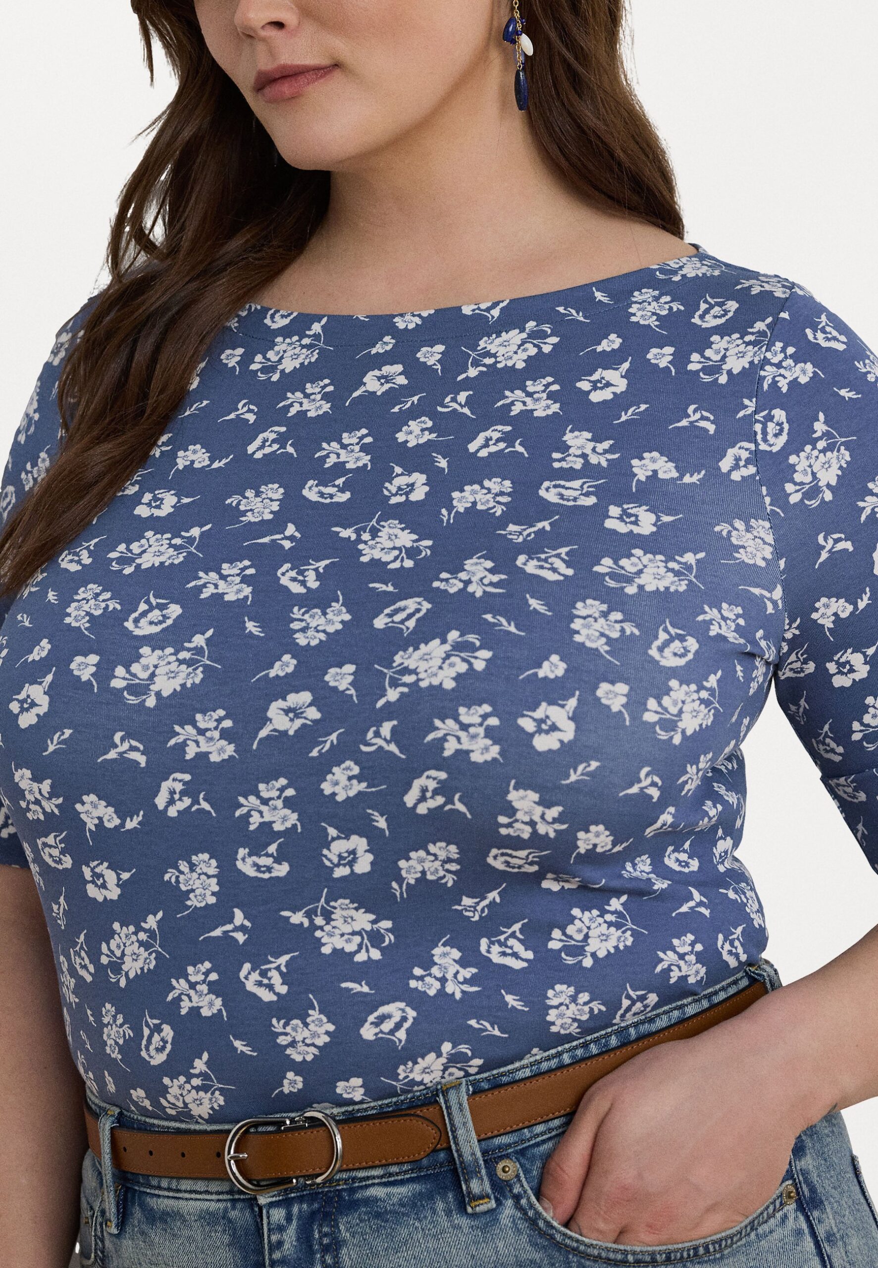 FLORAL STRETCH COTTON BOATNECK TEE – Print T-shirt – blue multi
